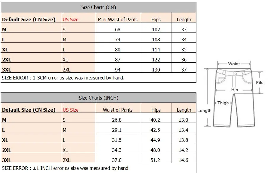 1.This Shorts Default Read size (tag size) is CN size , please choose size Based on our Size Chart !!!