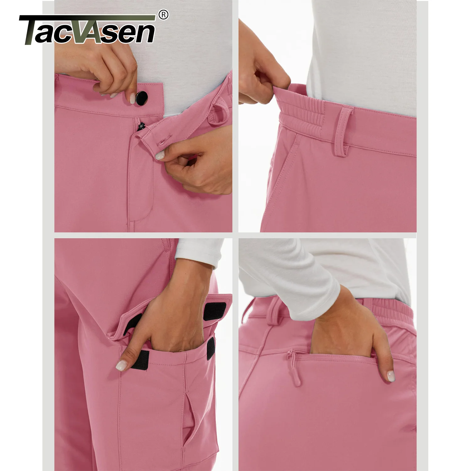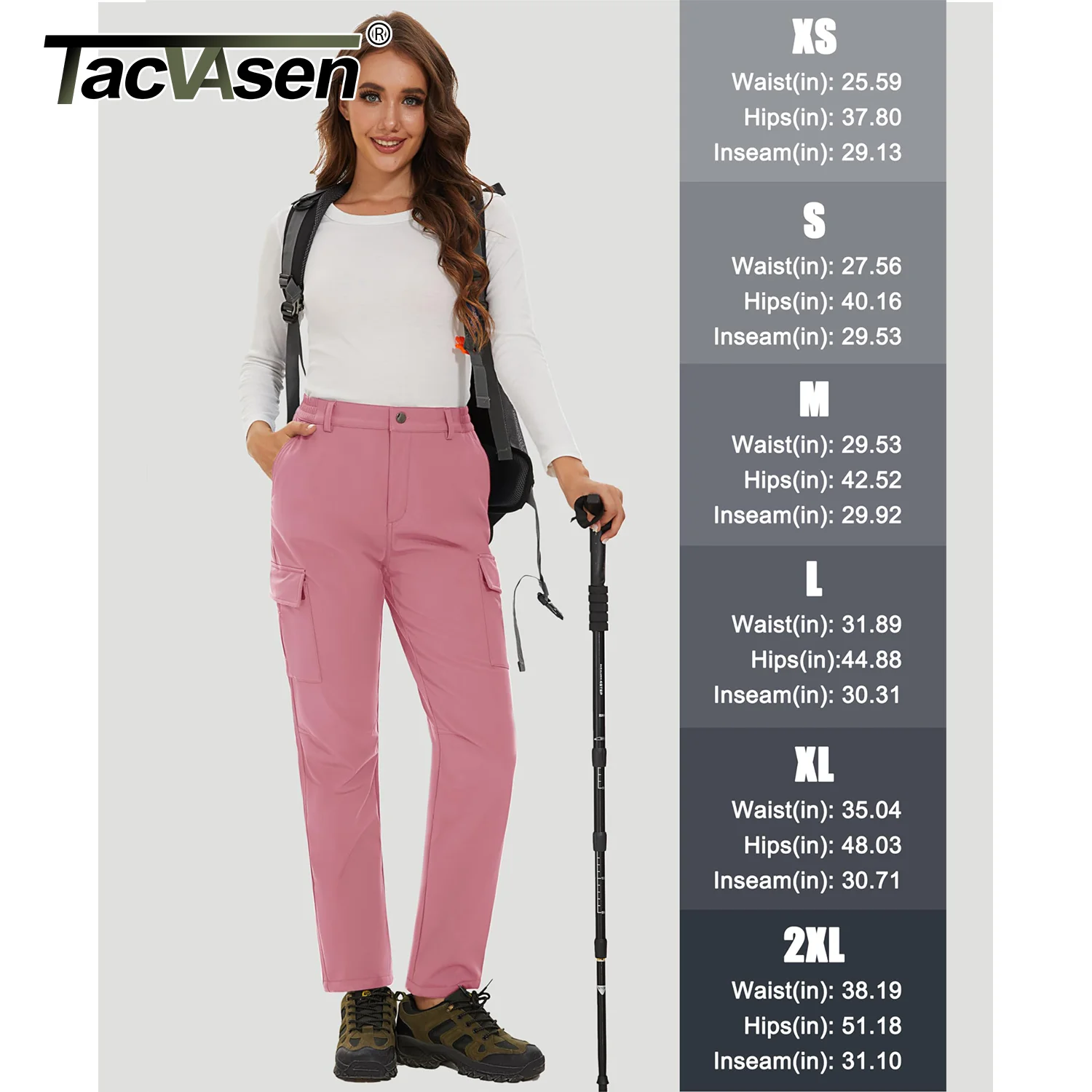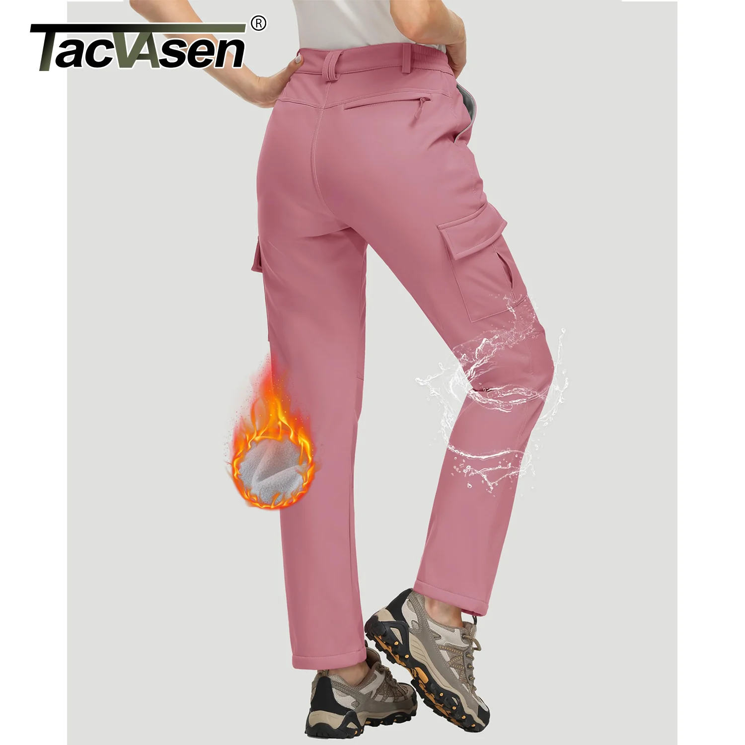 TACVASEN Winter Skiing Hiking Pants Womens Snowboard Cargo Pants Waterproof Windproof Multi-Pockets Fleece Lined Camping Trouser