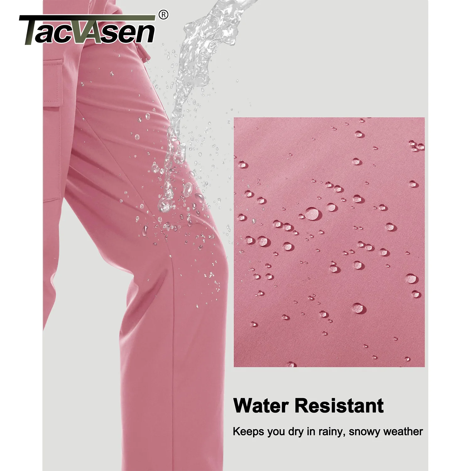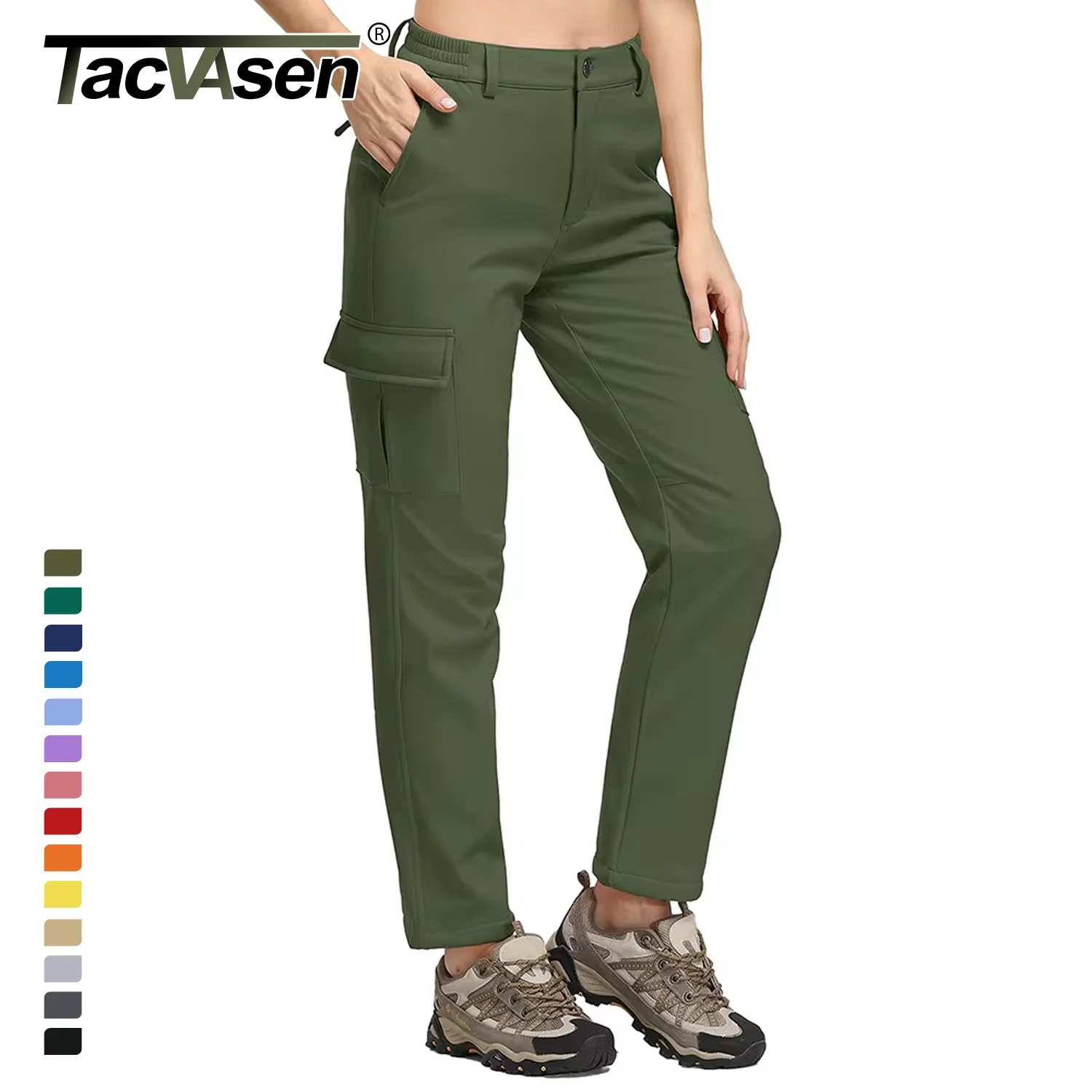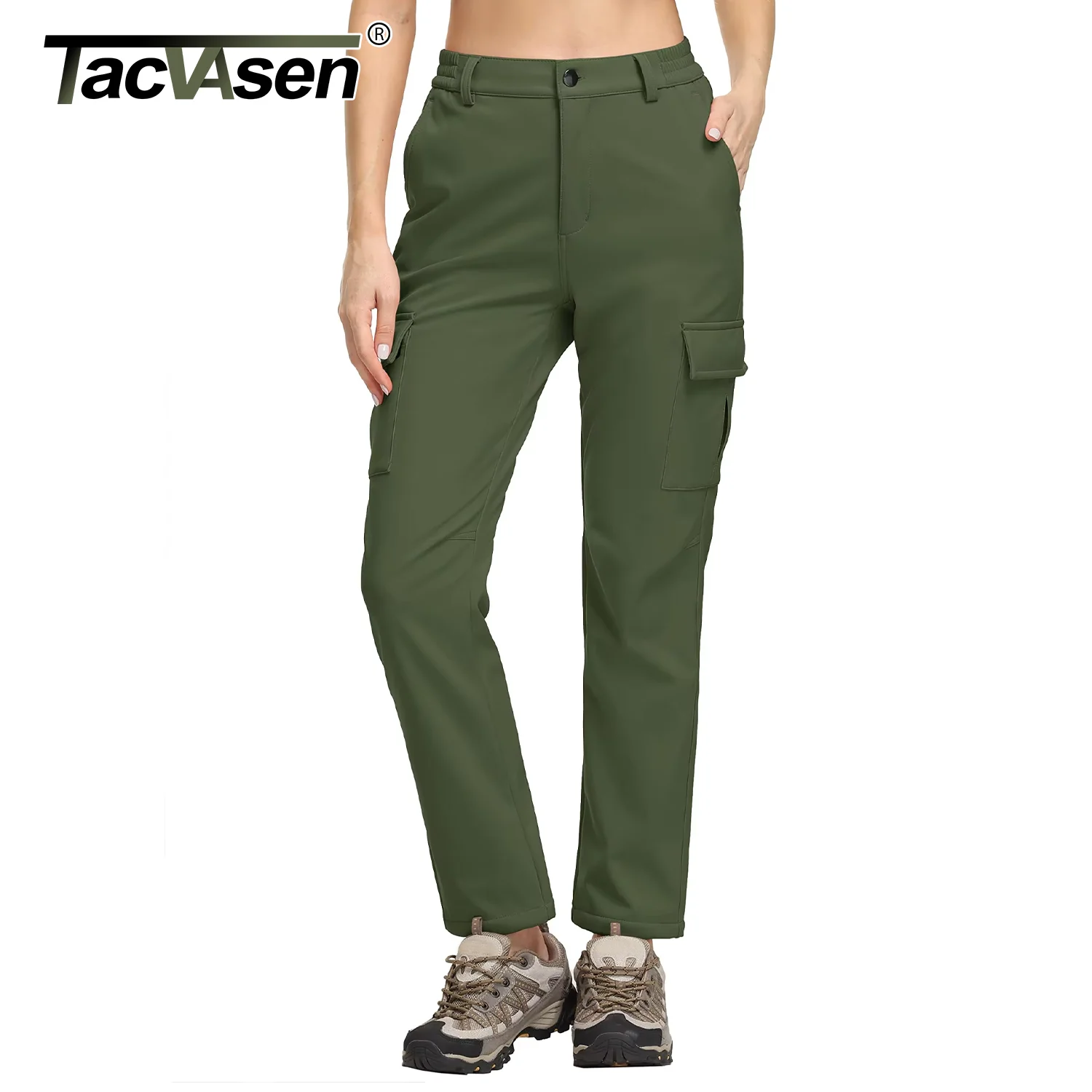 TACVASEN Winter Skiing Hiking Pants Womens Snowboard Cargo Pants Waterproof Windproof Multi-Pockets Fleece Lined Camping Trouser