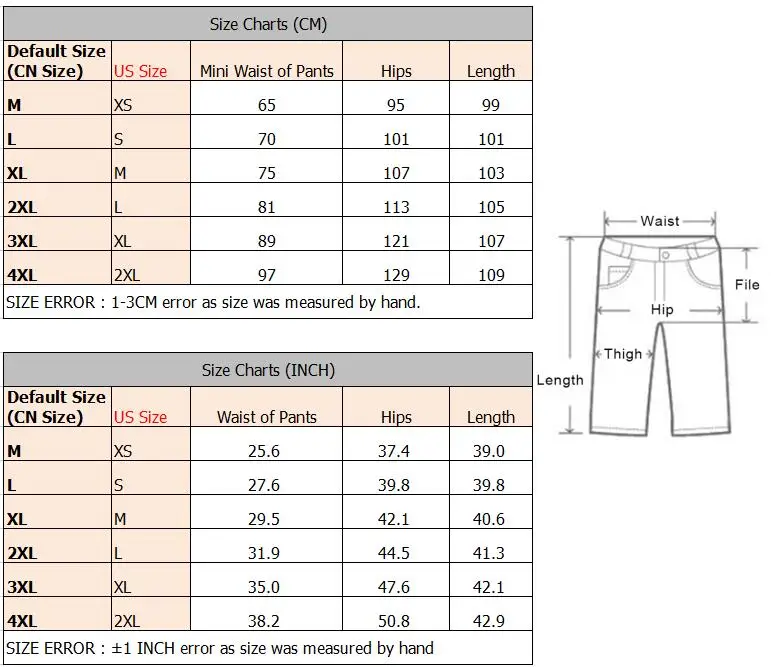 1.This Pants default Read size (tag size) is CN size , please choose size Based on our Size Chart !!!
