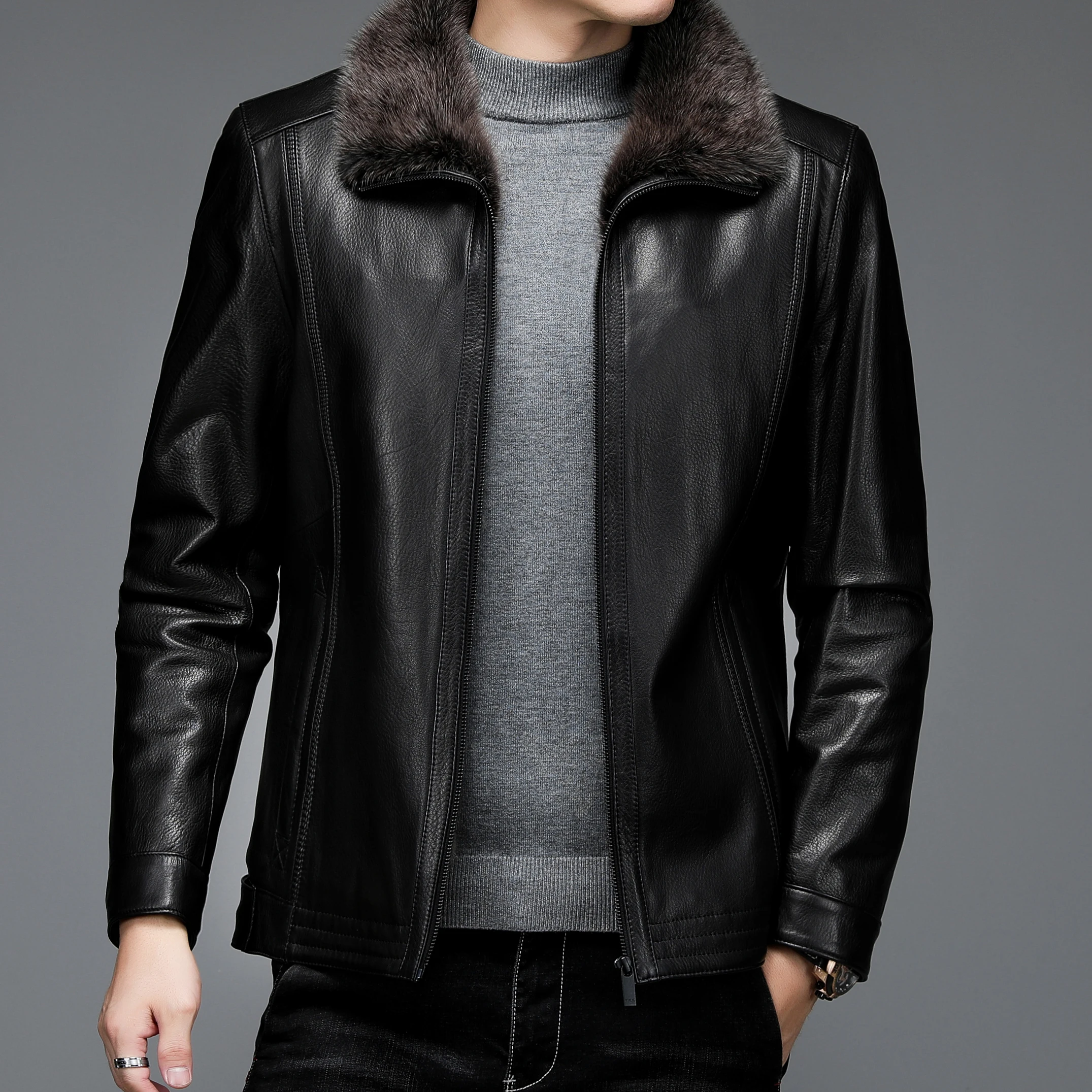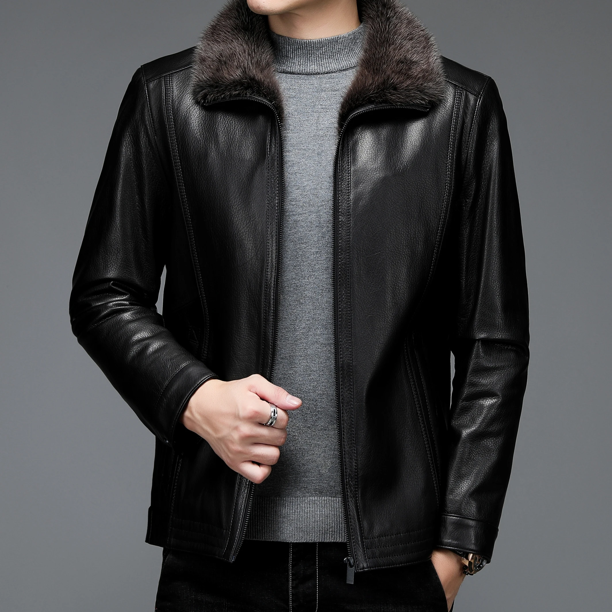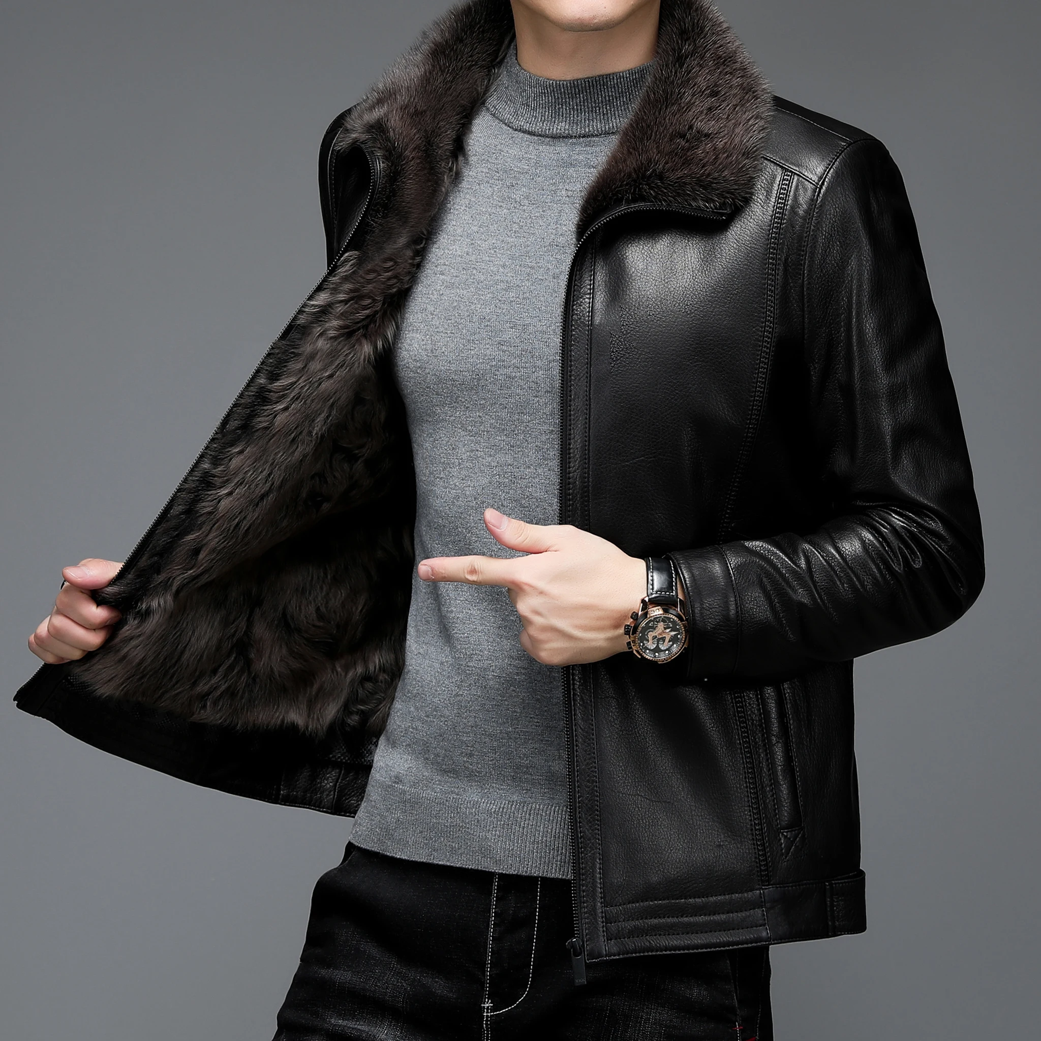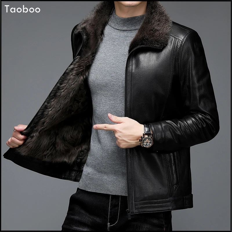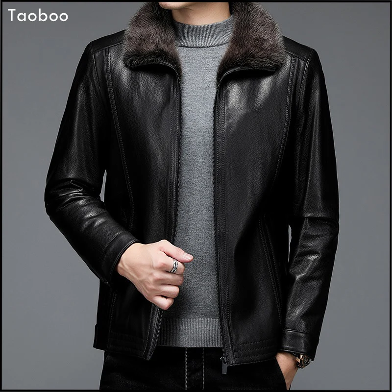 Taoboo 2022 New Classic Male leather jacket Winter Fall Sheepskin Wool Liner windbreaker Business Casual Mink Collar Men’s coat