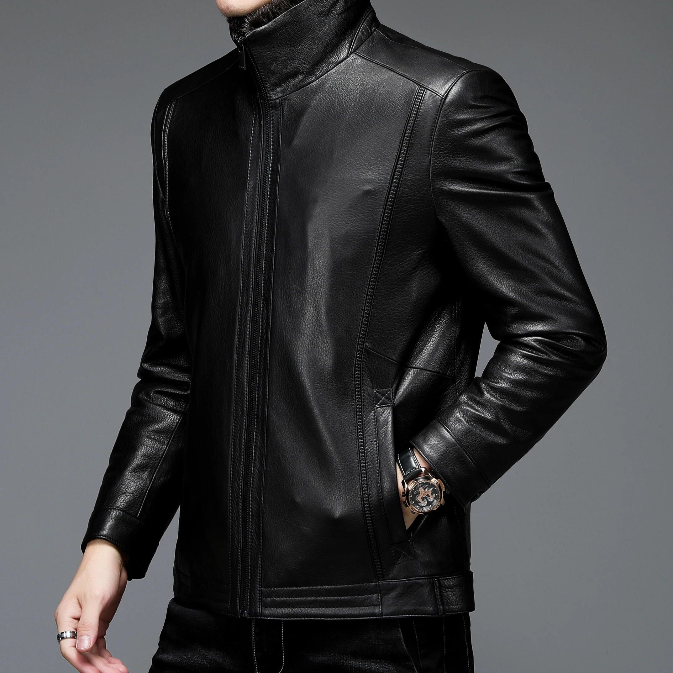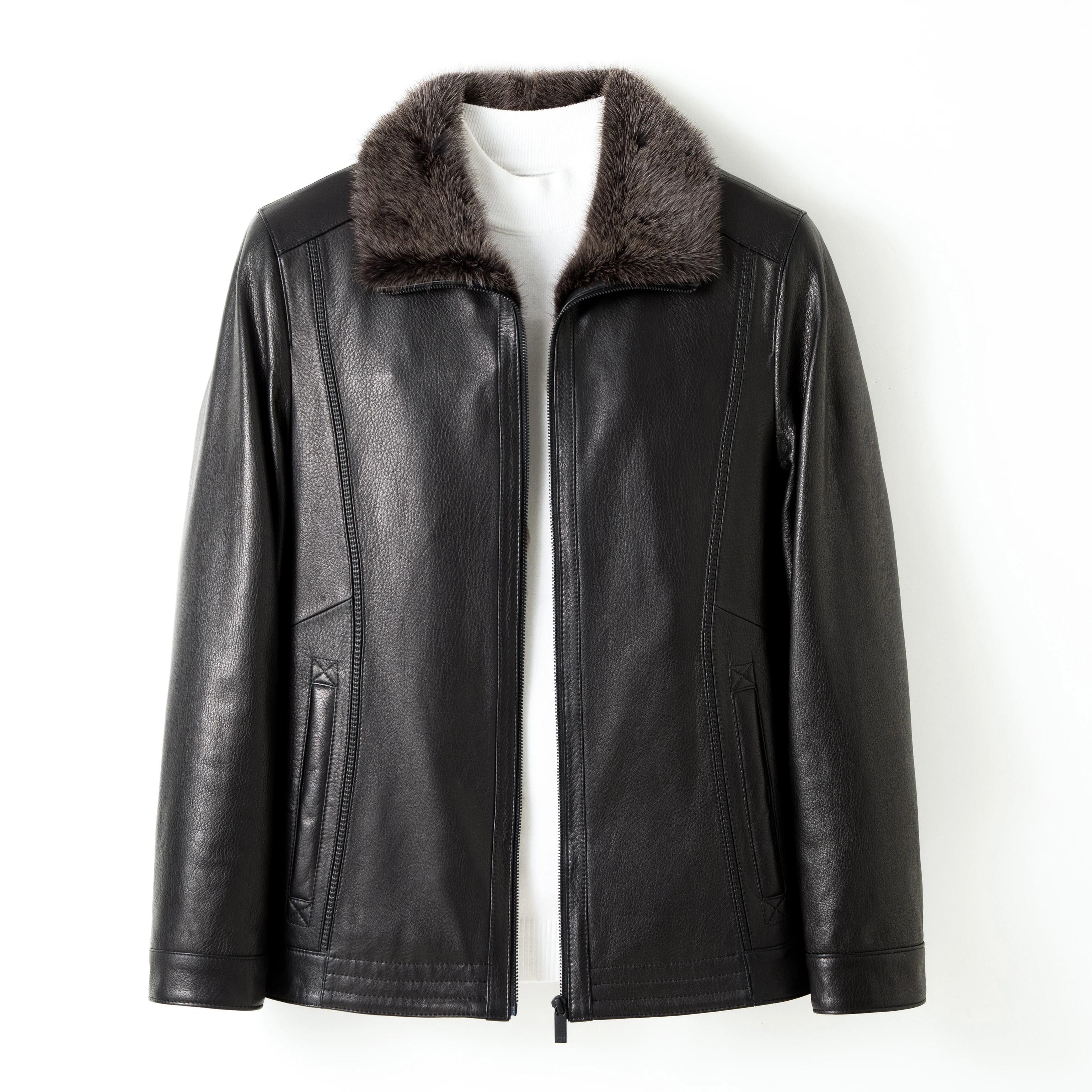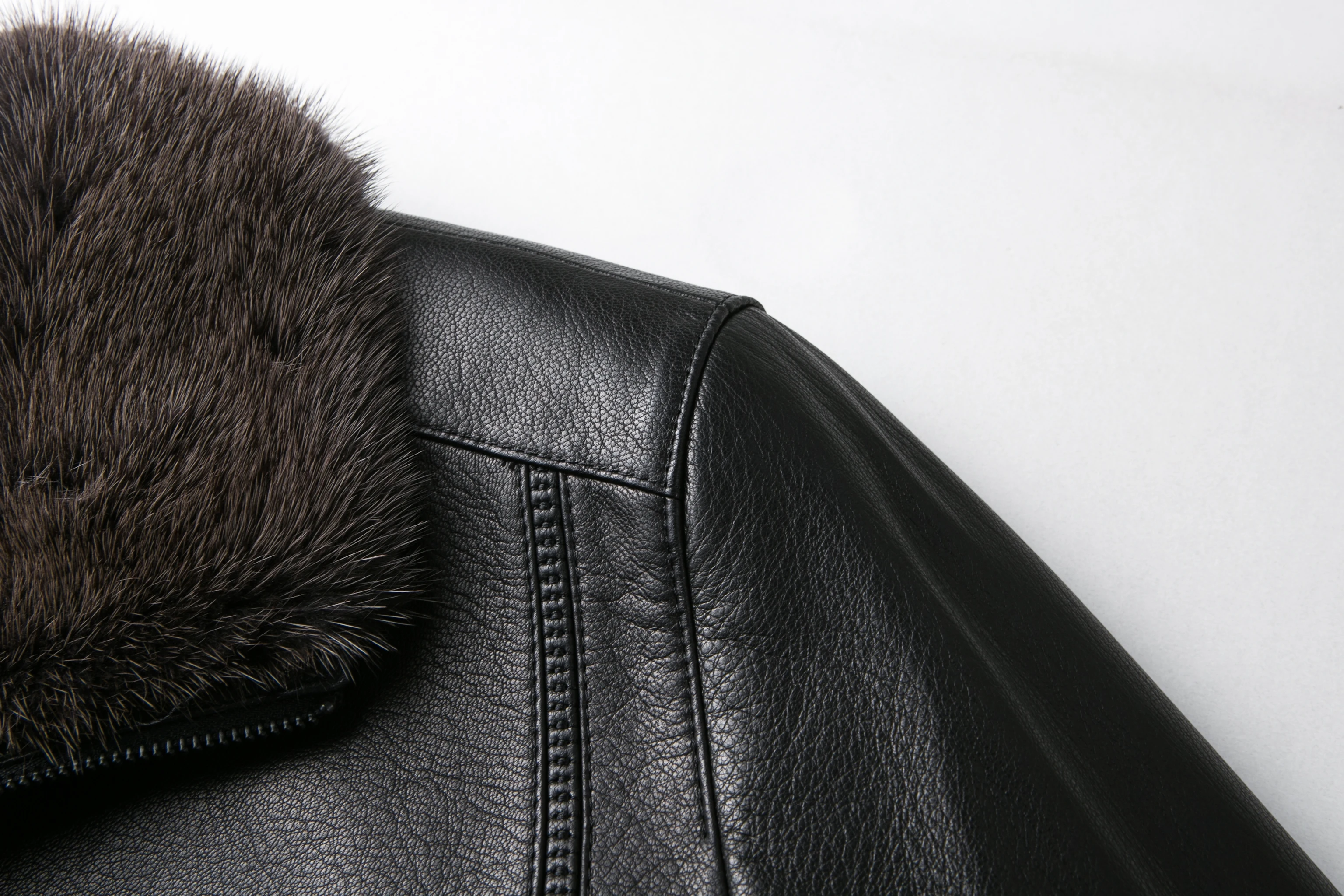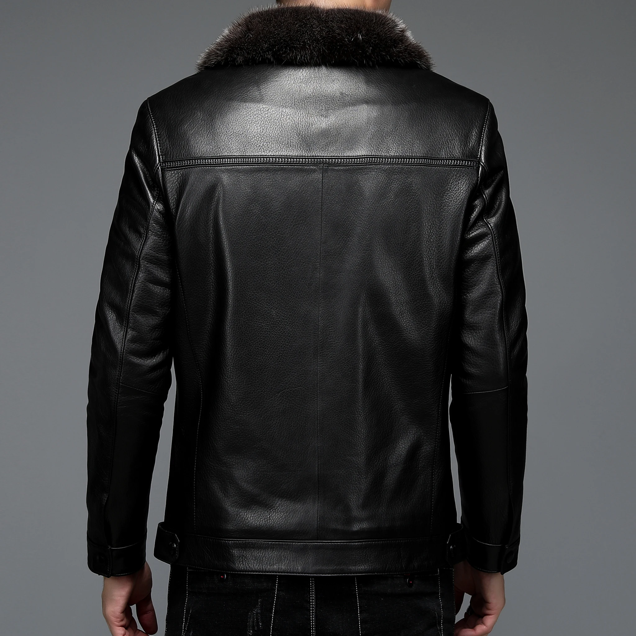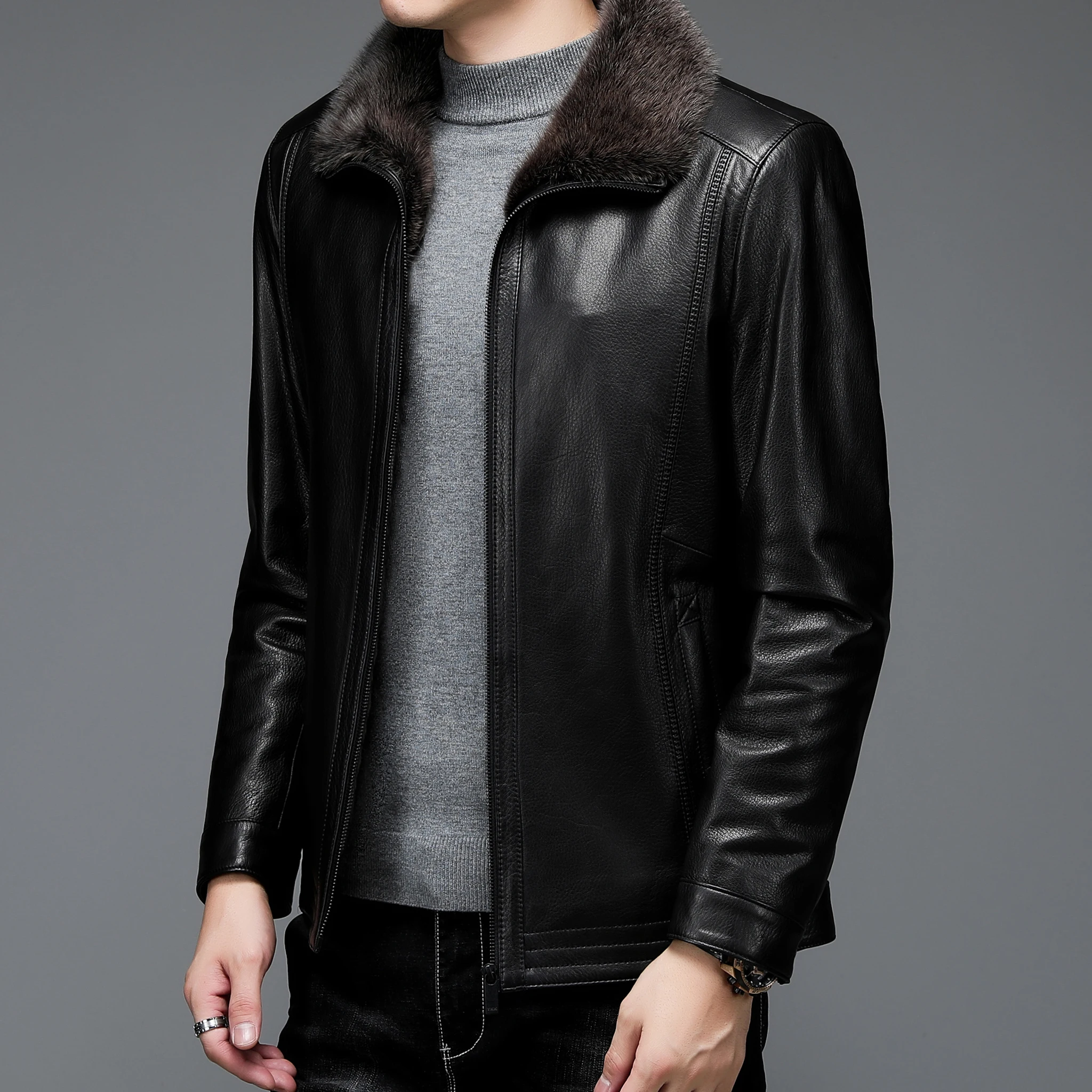 Taoboo 2022 New Classic Male leather jacket Winter Fall Sheepskin Wool Liner windbreaker Business Casual Mink Collar Men’s coat