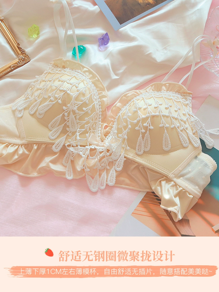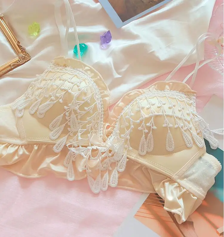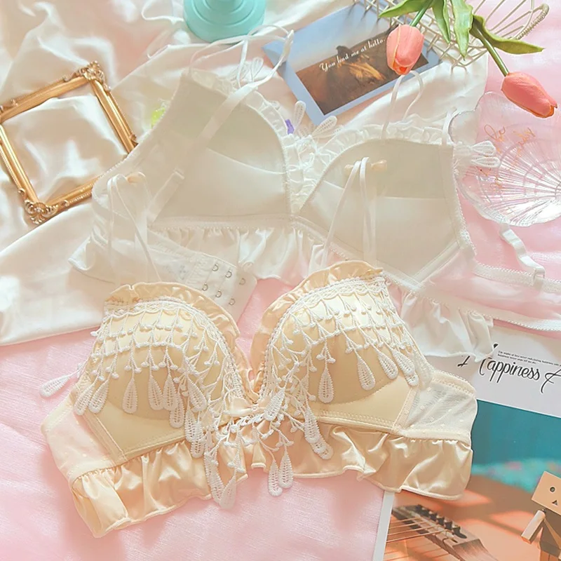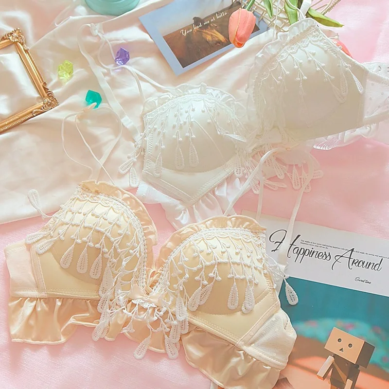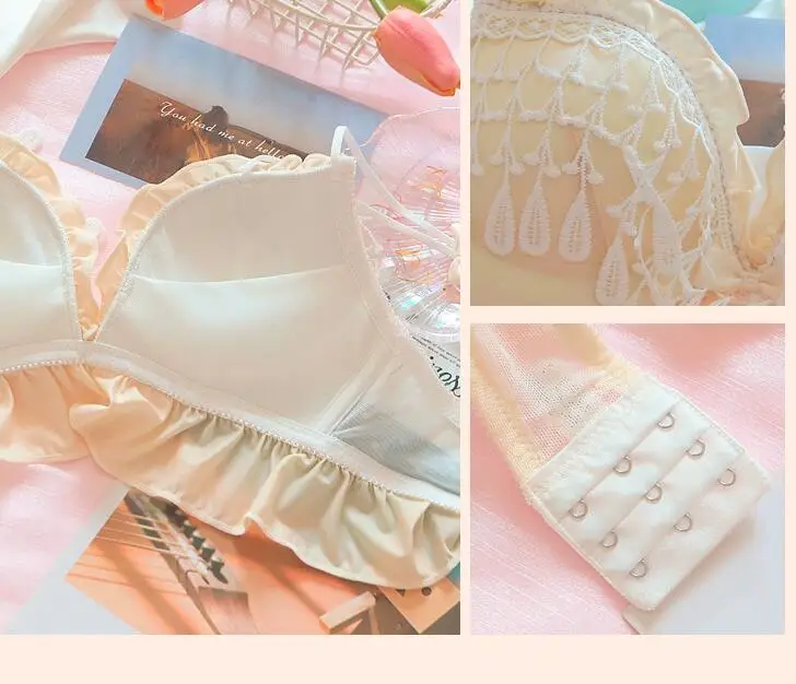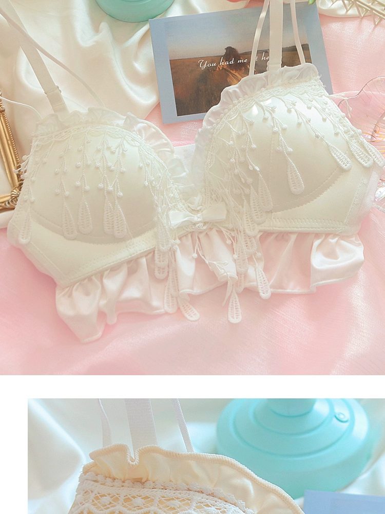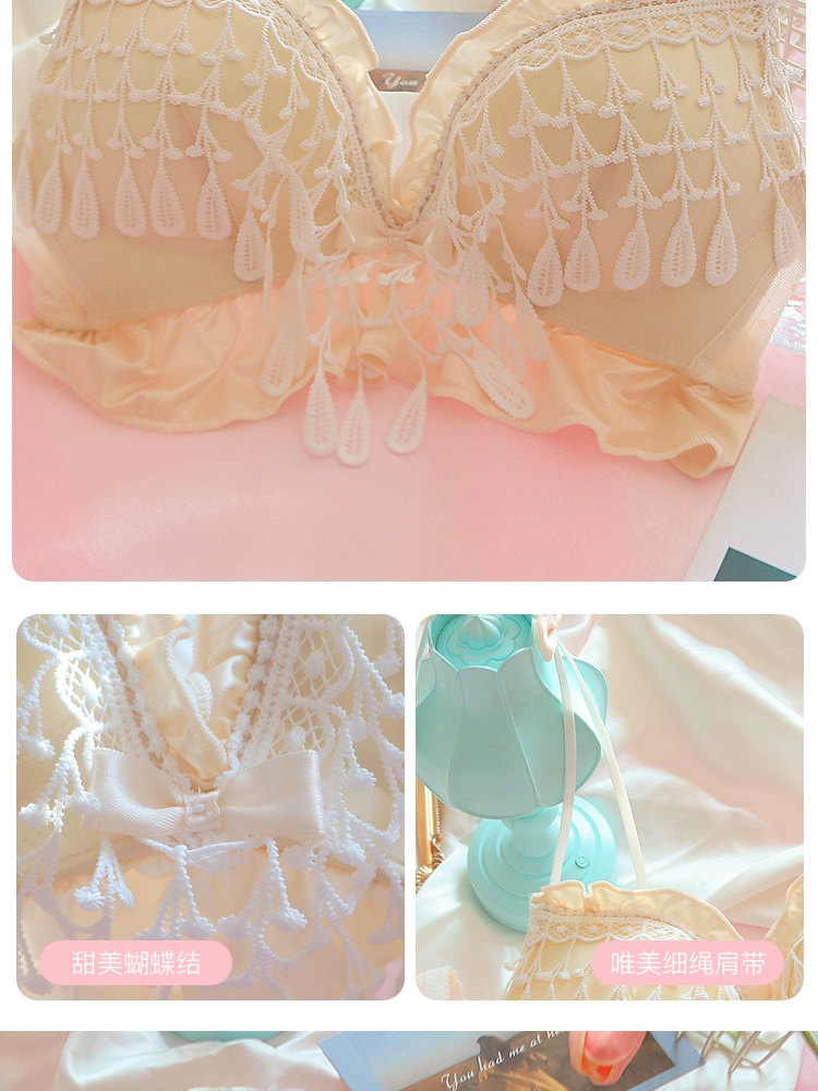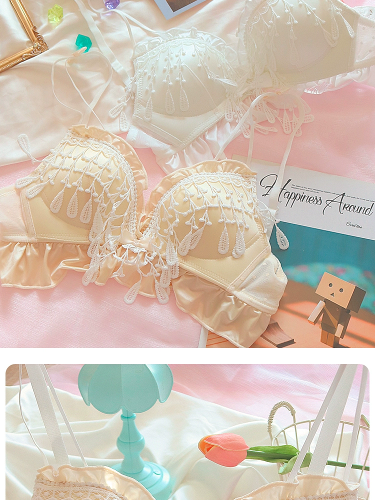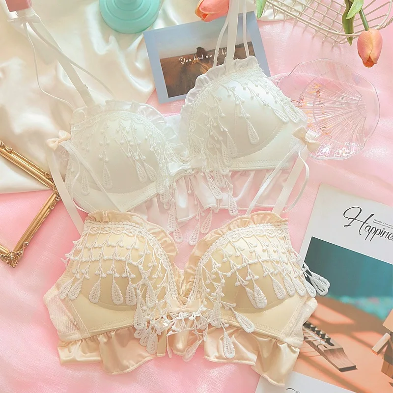 Teenage girl bra sweet cute small breast bras lace tassel princess wind lingerie large size push up women underwear