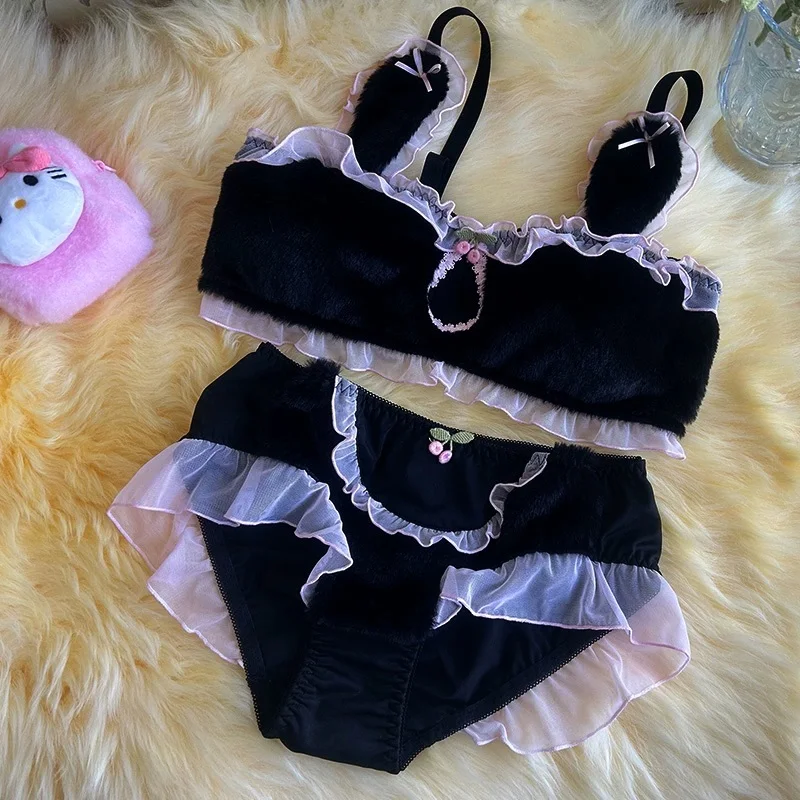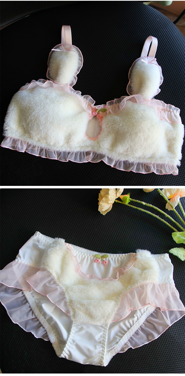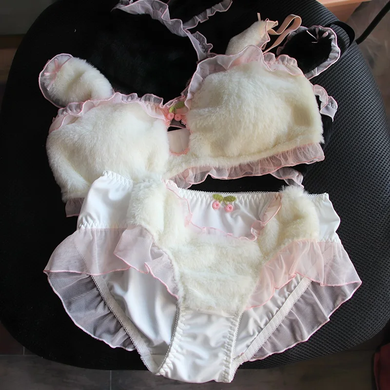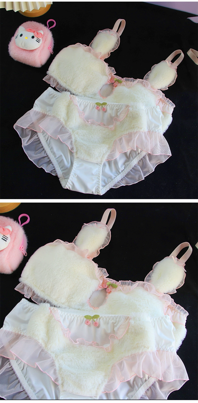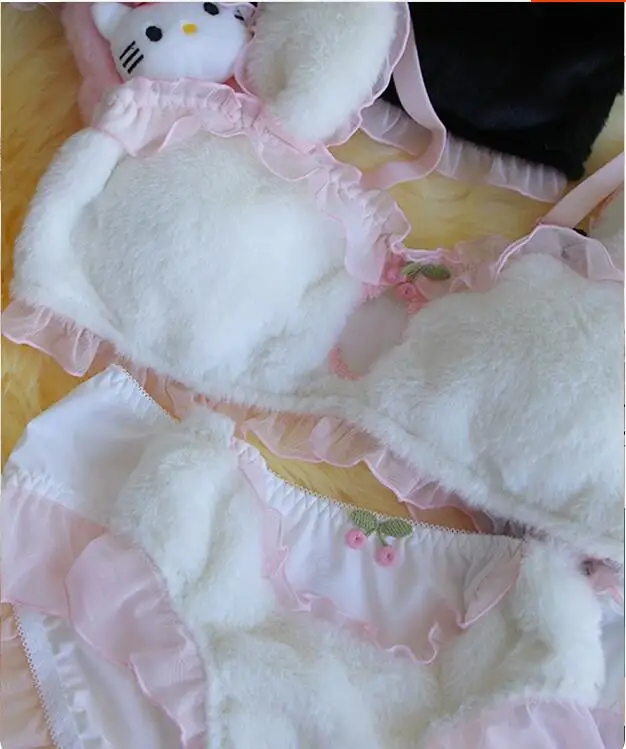 Teenage girls cute plush underwear panty set female non-steel ring thermal bra women sexy lingerie underpants suit