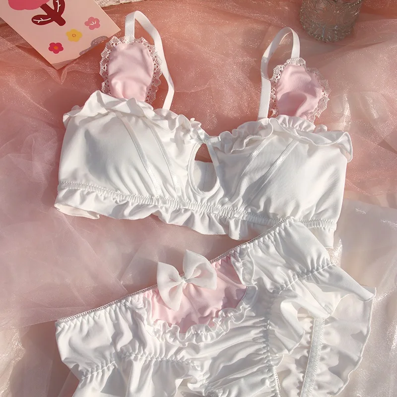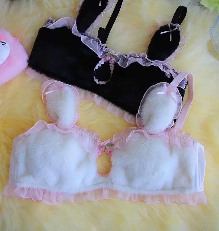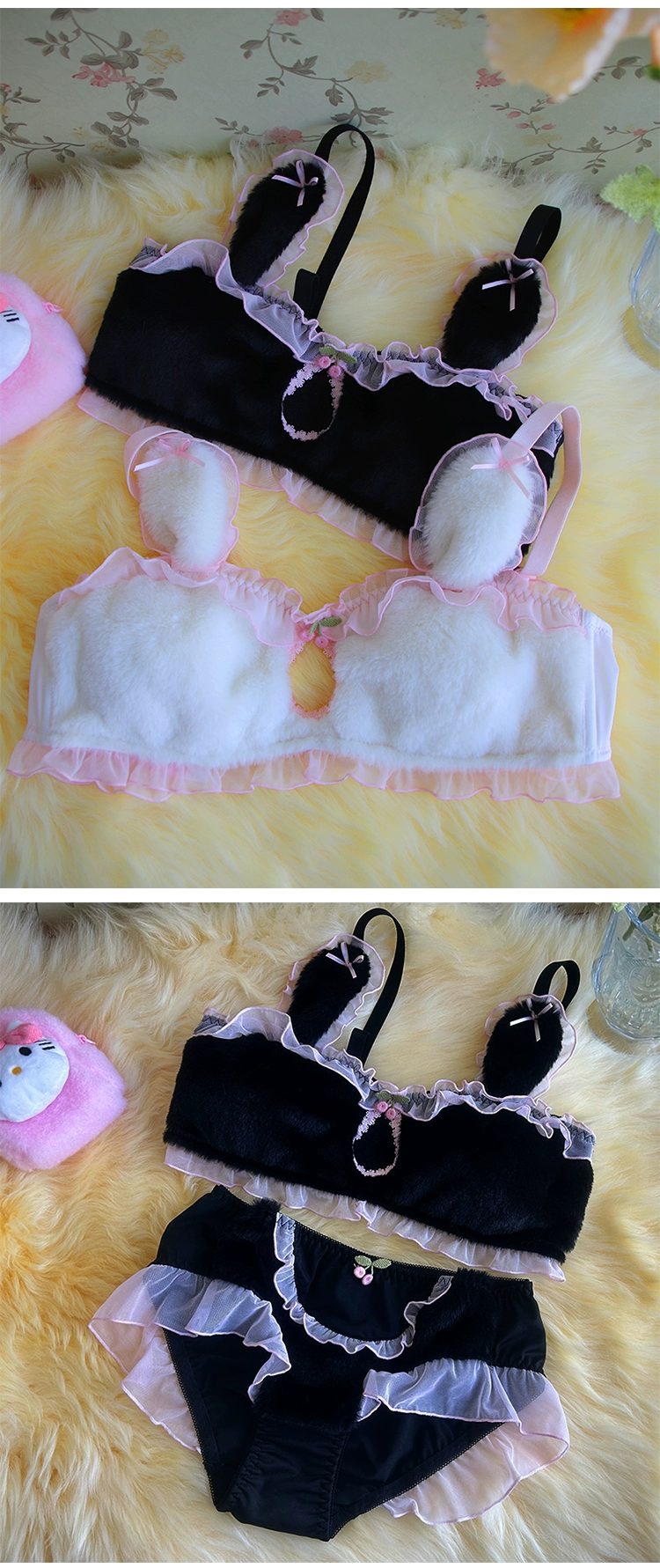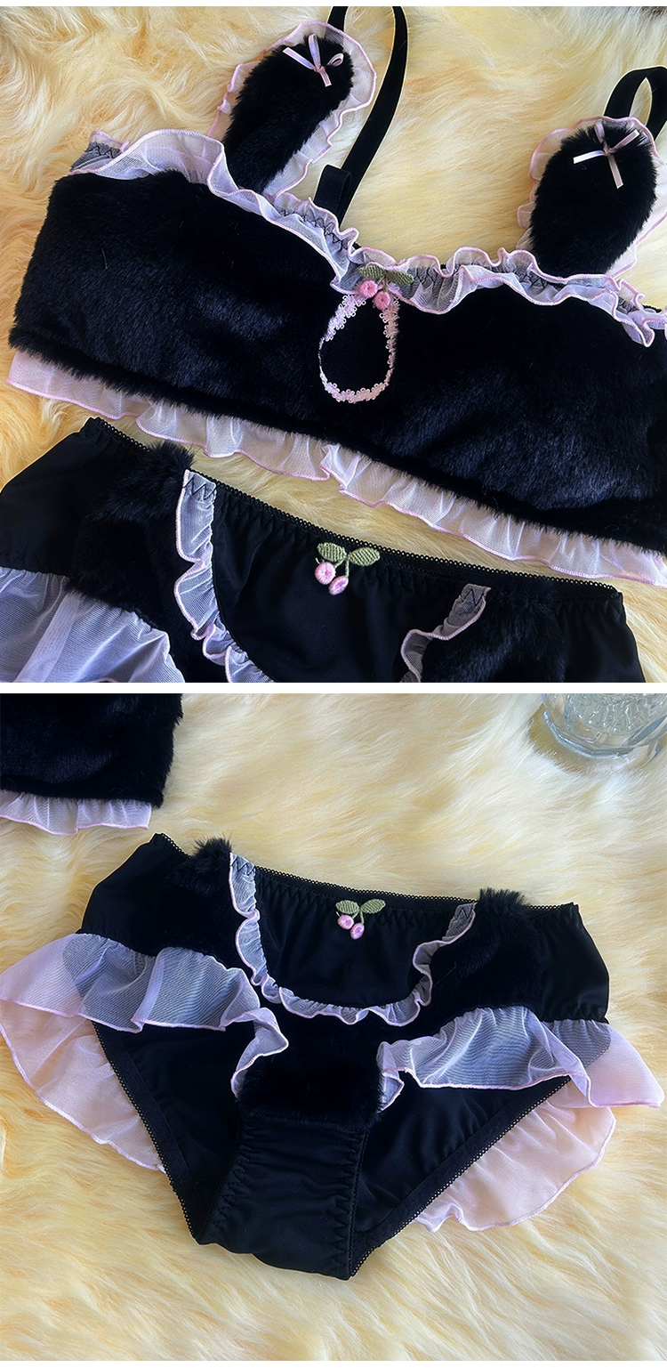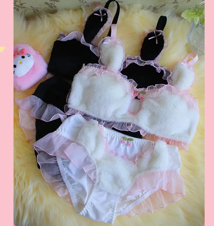 Teenage girls cute plush underwear panty set female non-steel ring thermal bra women sexy lingerie underpants suit