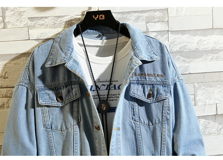 Teenagers Embroidery Denim Jacket Men’s Autumn Korean Style Student Loose Spring Autumn Denim Jacket Handsome Upper Clothes