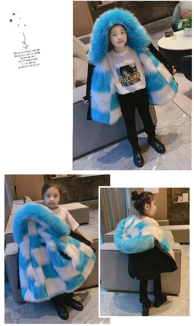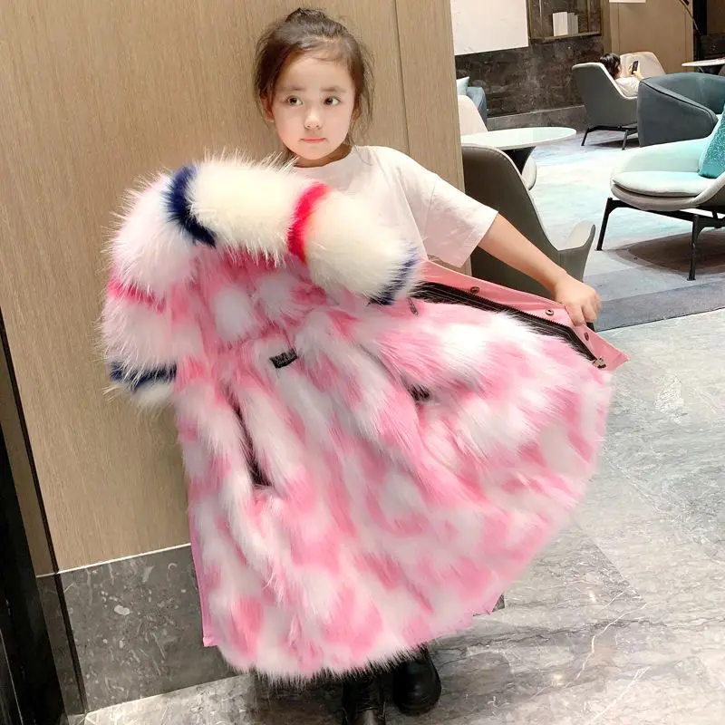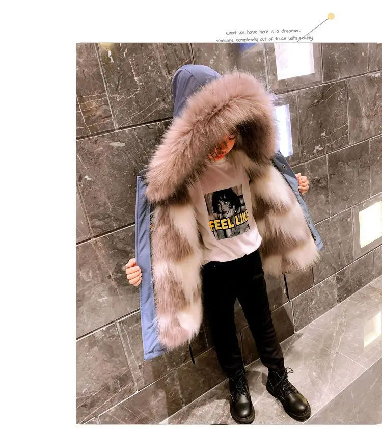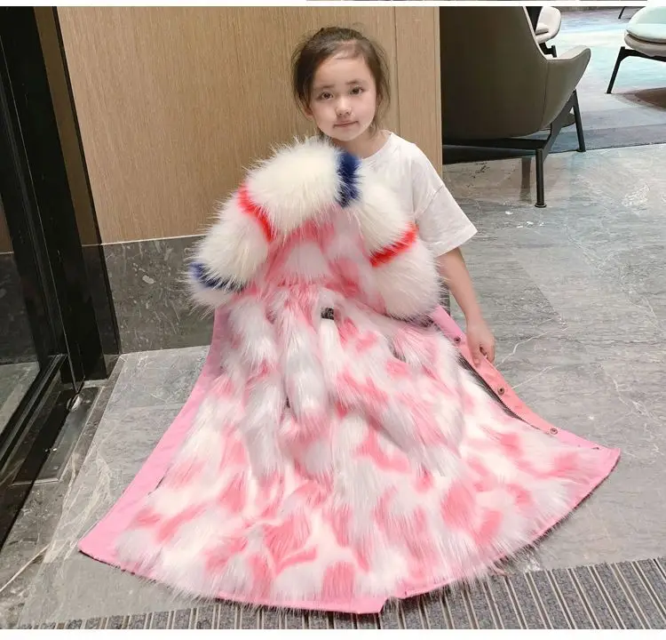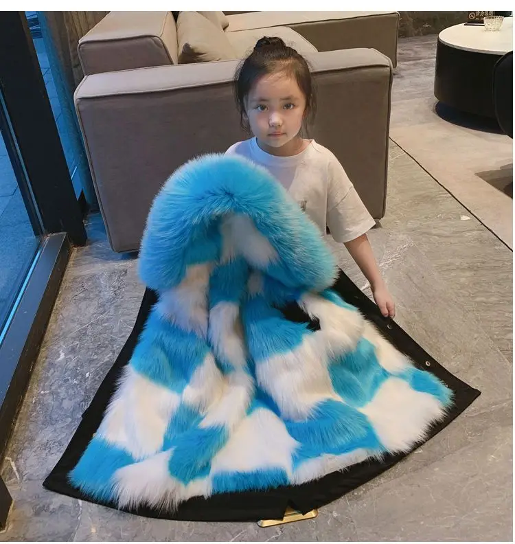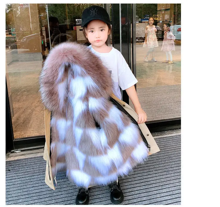 The new children’s warm school overcomes girls and boys’ imitation of fox fur coat in winter of 2022. The baby’s long coat is
