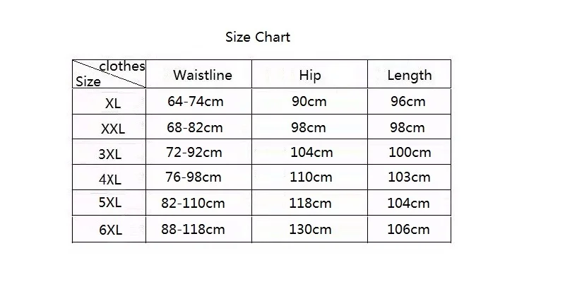 Size               XL              2XL              3XL               4XL               5XL              6XL