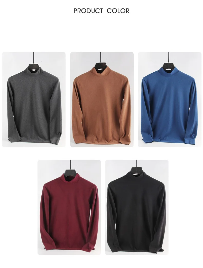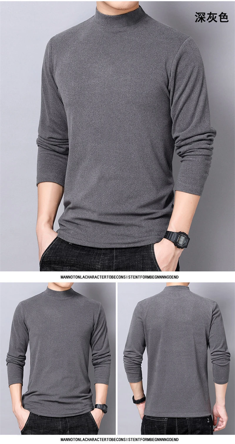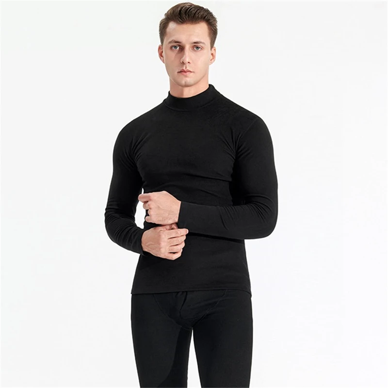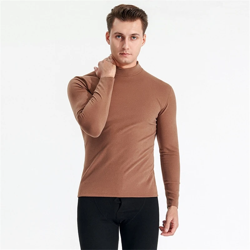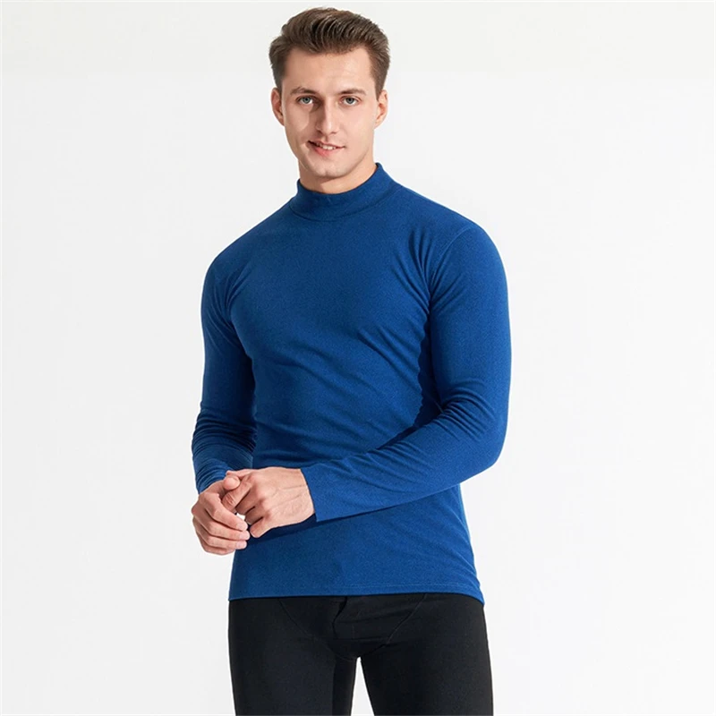 Thermal Underwear Men keep warm Undershirt Mock Neck Double Side Thin fleece Long Sleeve T-shirt