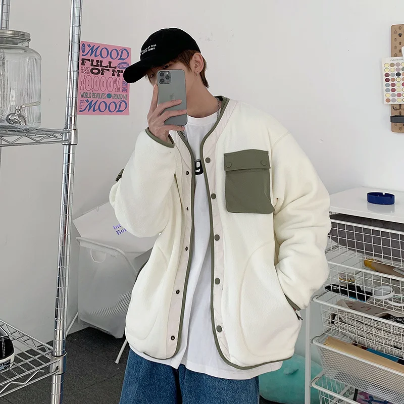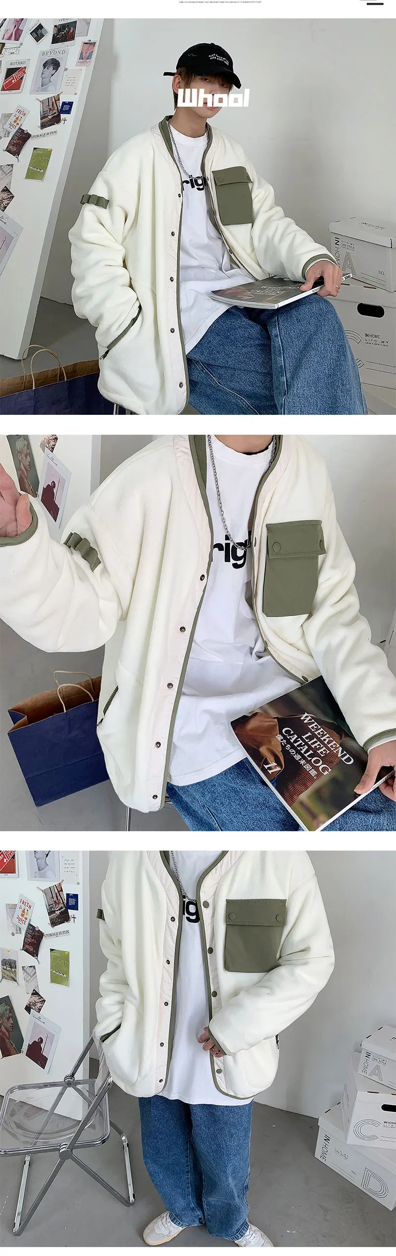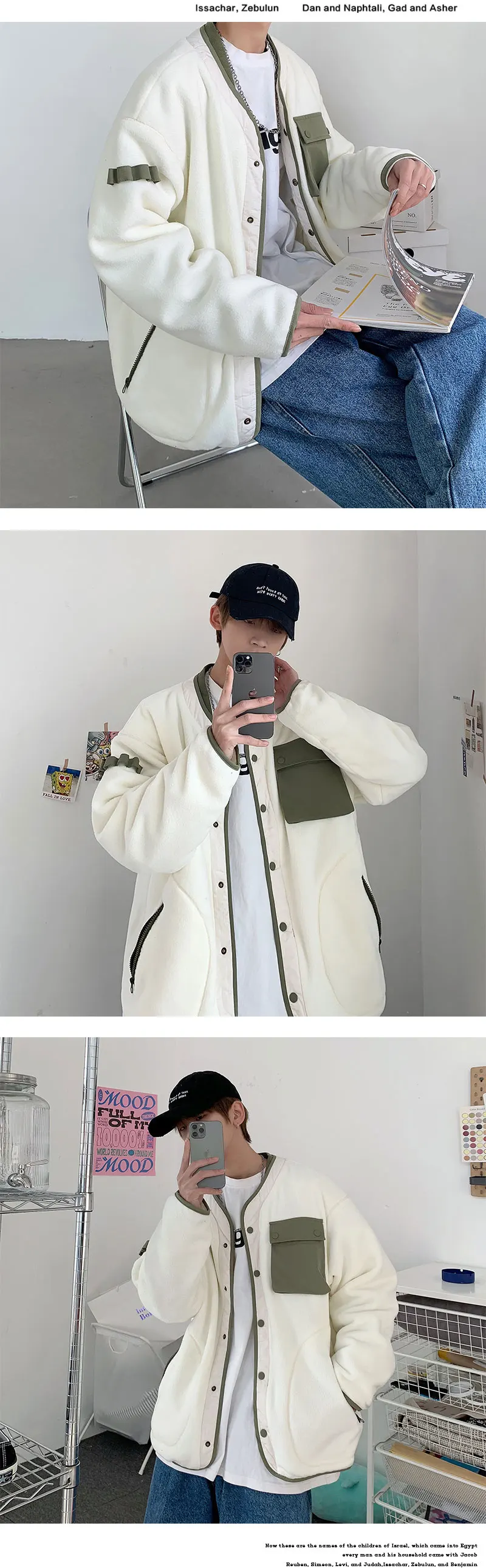 Thick Lamb Fur Jacket Men Warm Fashion Casual Baseball Uniform Jacket Men Streetwear Loose Hip-hop Bomber Jacket Mens Short Coat