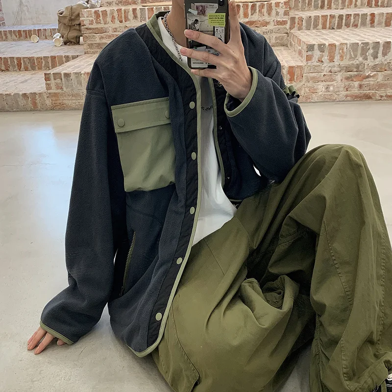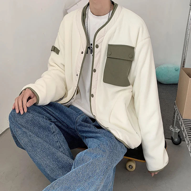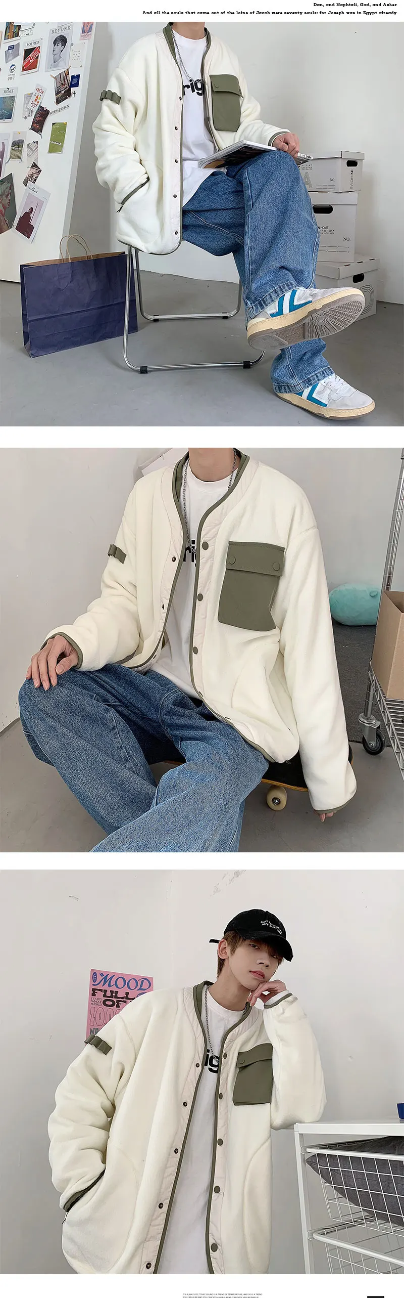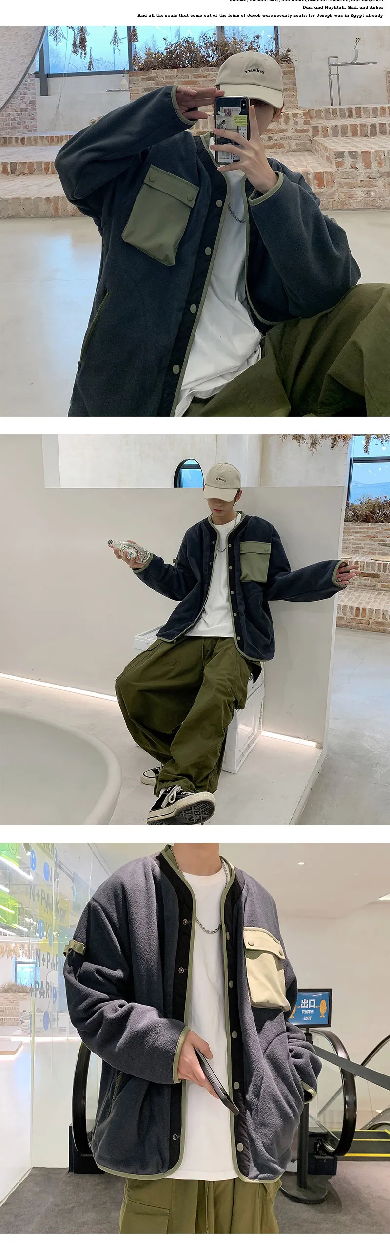 Thick Lamb Fur Jacket Men Warm Fashion Casual Baseball Uniform Jacket Men Streetwear Loose Hip-hop Bomber Jacket Mens Short Coat