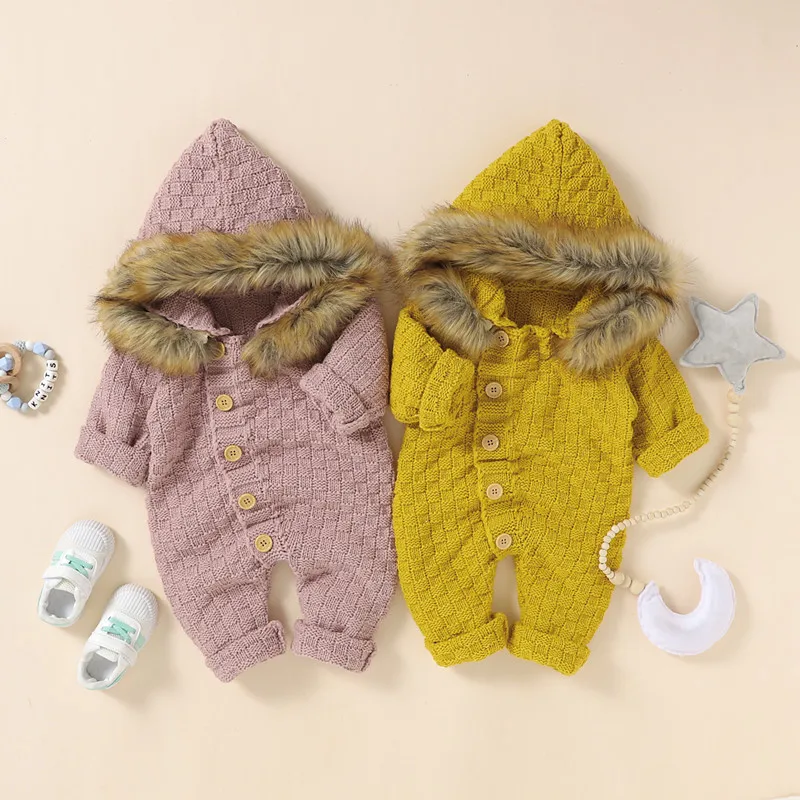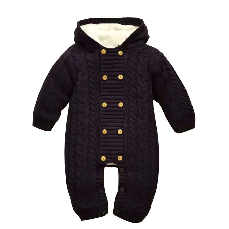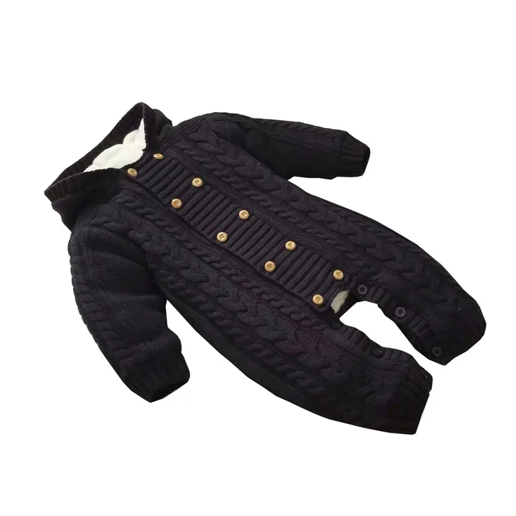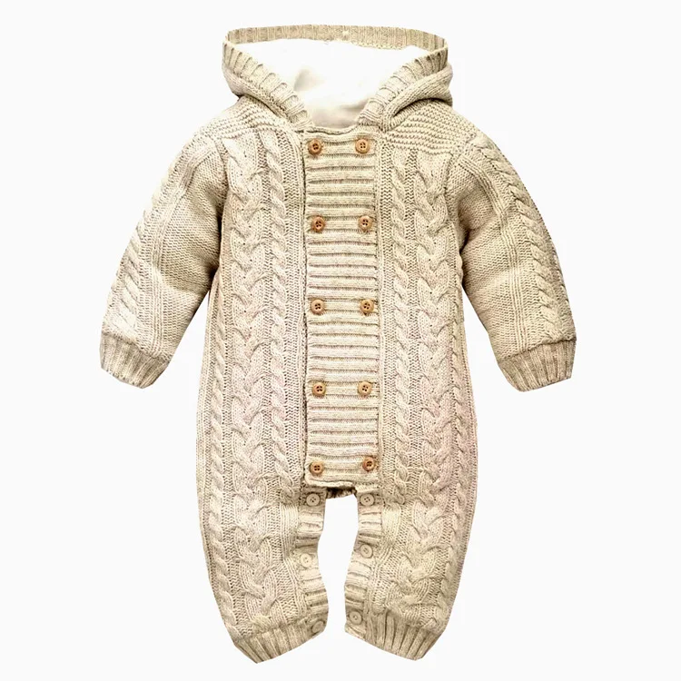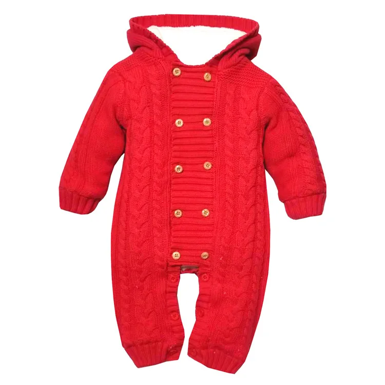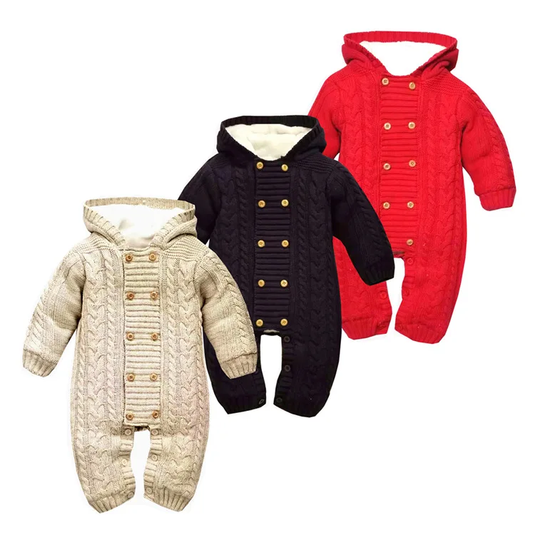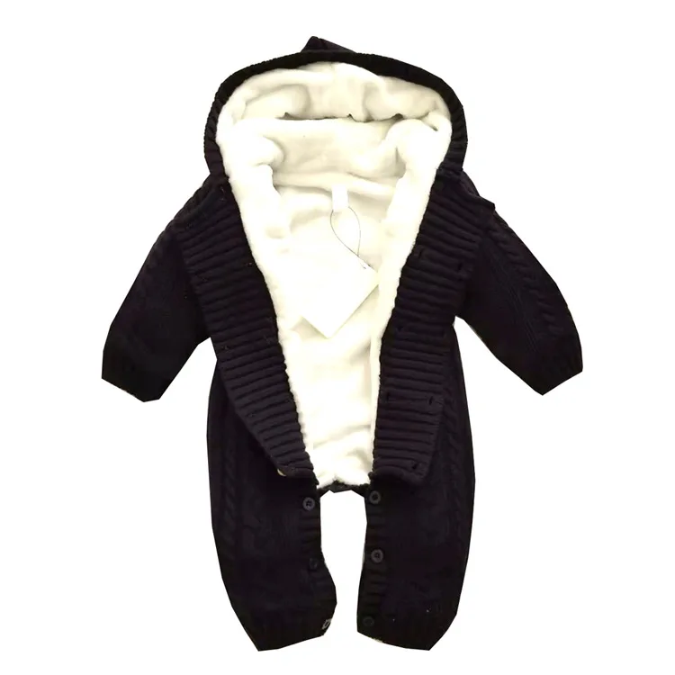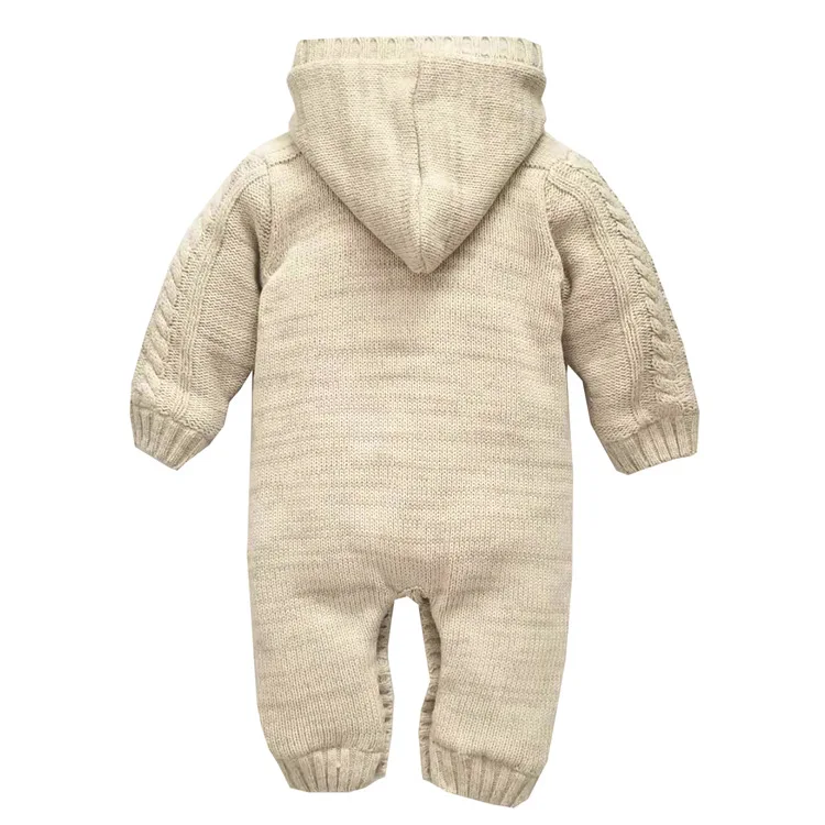 Thick Warm Infant Baby Rompers Winter Clothes Newborn Baby Boy Girl Knitted Sweater Jumpsuit Hooded Kid Toddler Outerwear