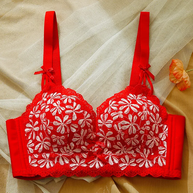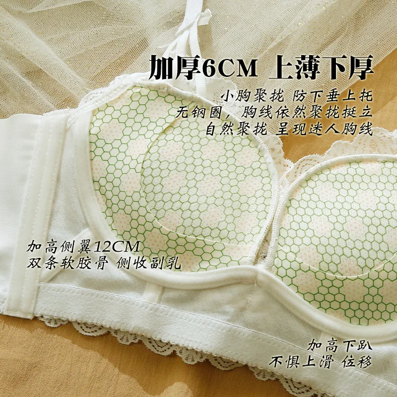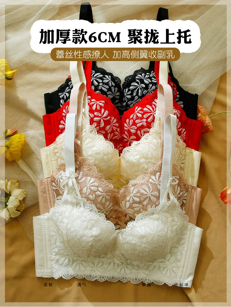 Thickened 6 CM underwear women’s no steel ring ladies bra small breasts gathered lace sexy upper thin and lower thick lingerie