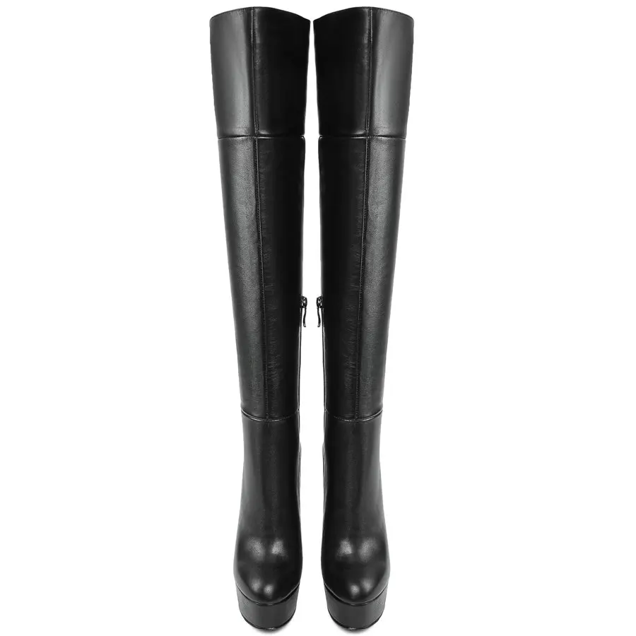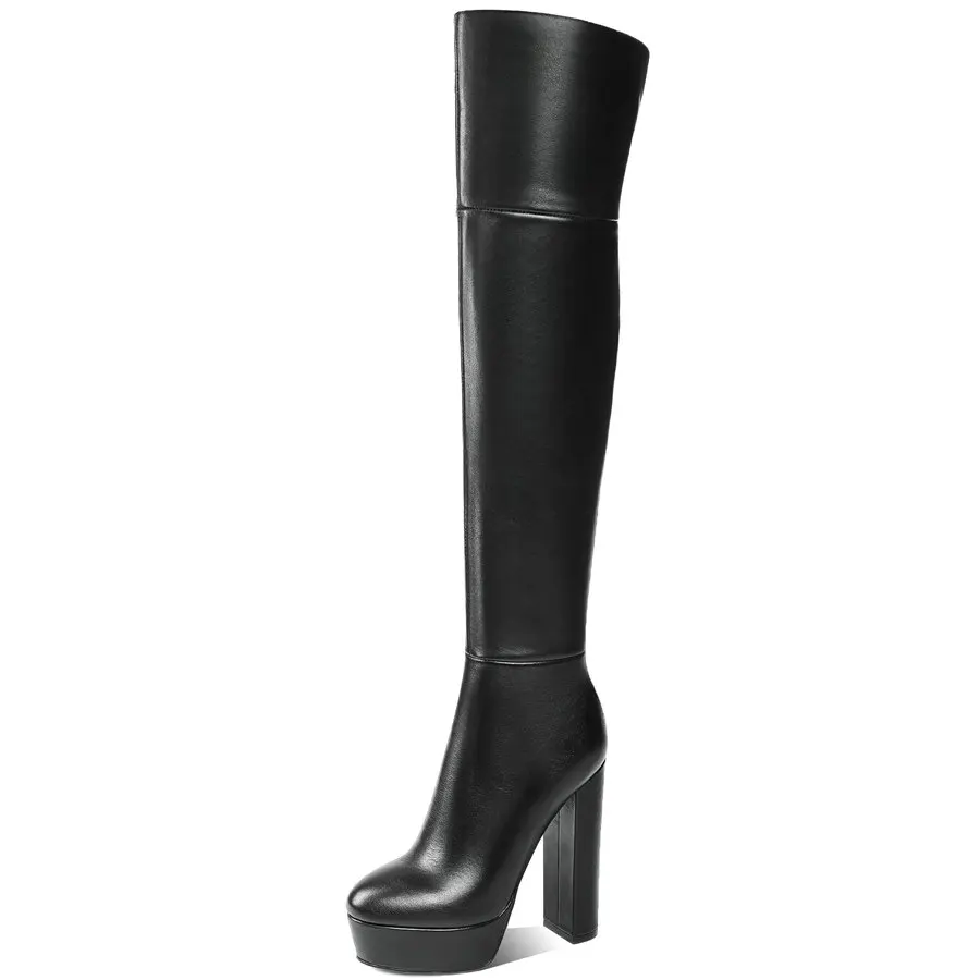 Thigh High Chunky Platform Boots Women Genuine Leather High Heel Over The Knee High Boots Female Winter Warm Party Pumps Shoes