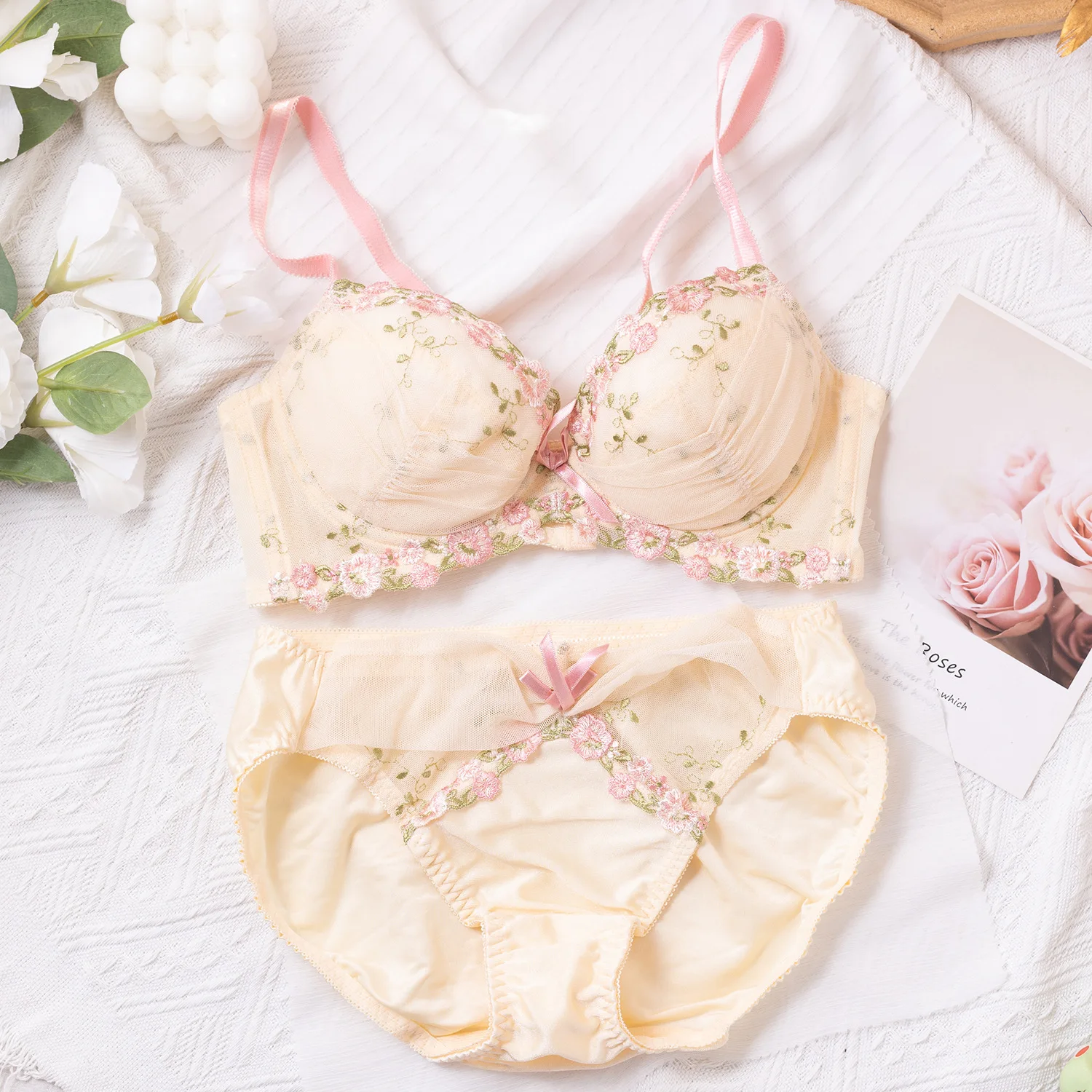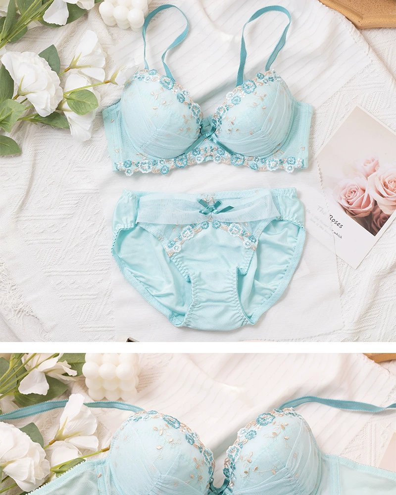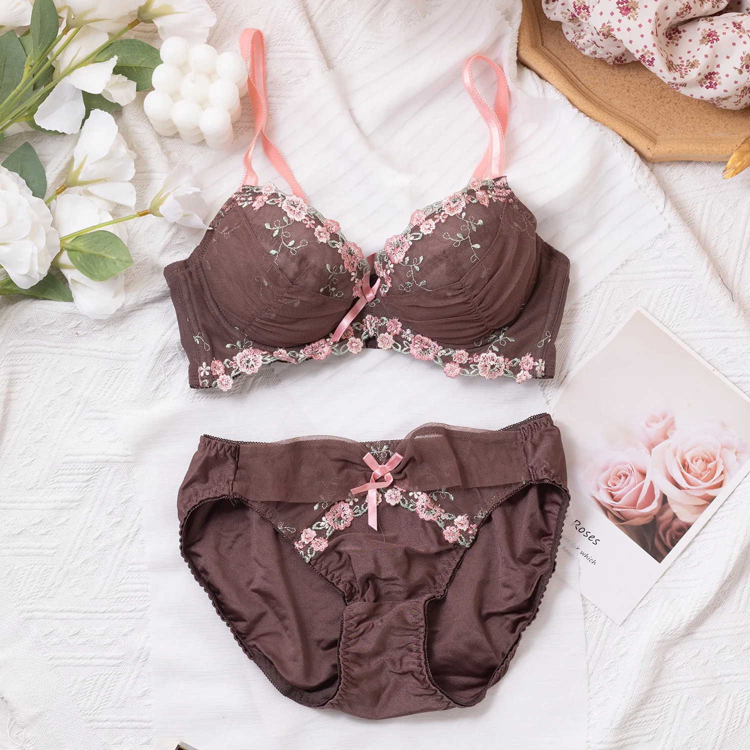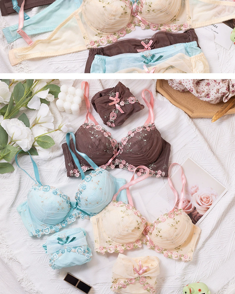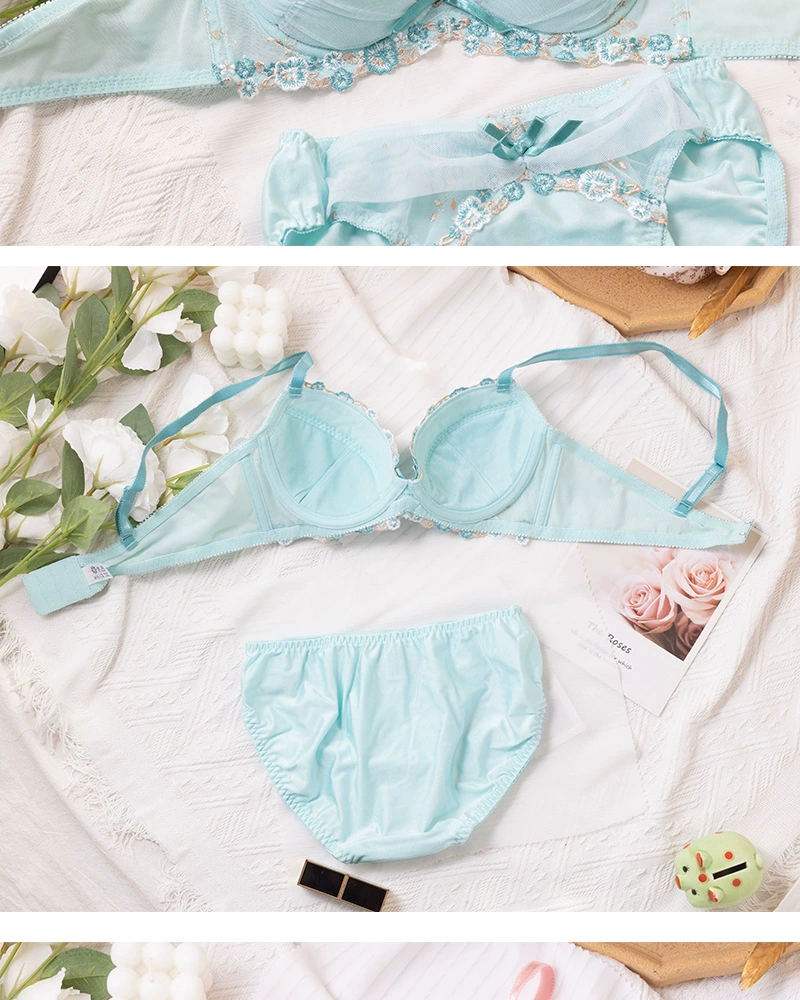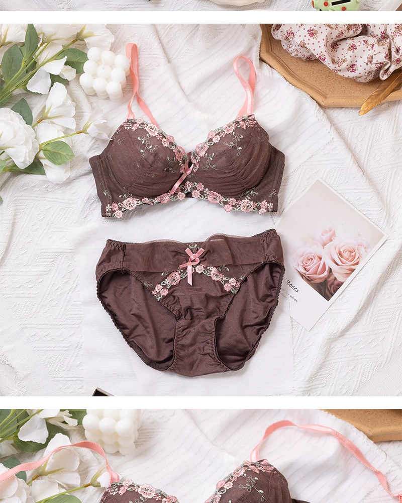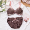 Thin section of sweet lingerie lace embroidery gathered side collection bra set large breast underwear bras
