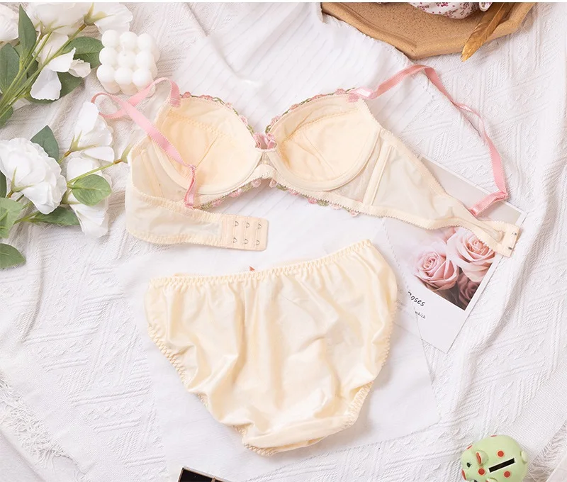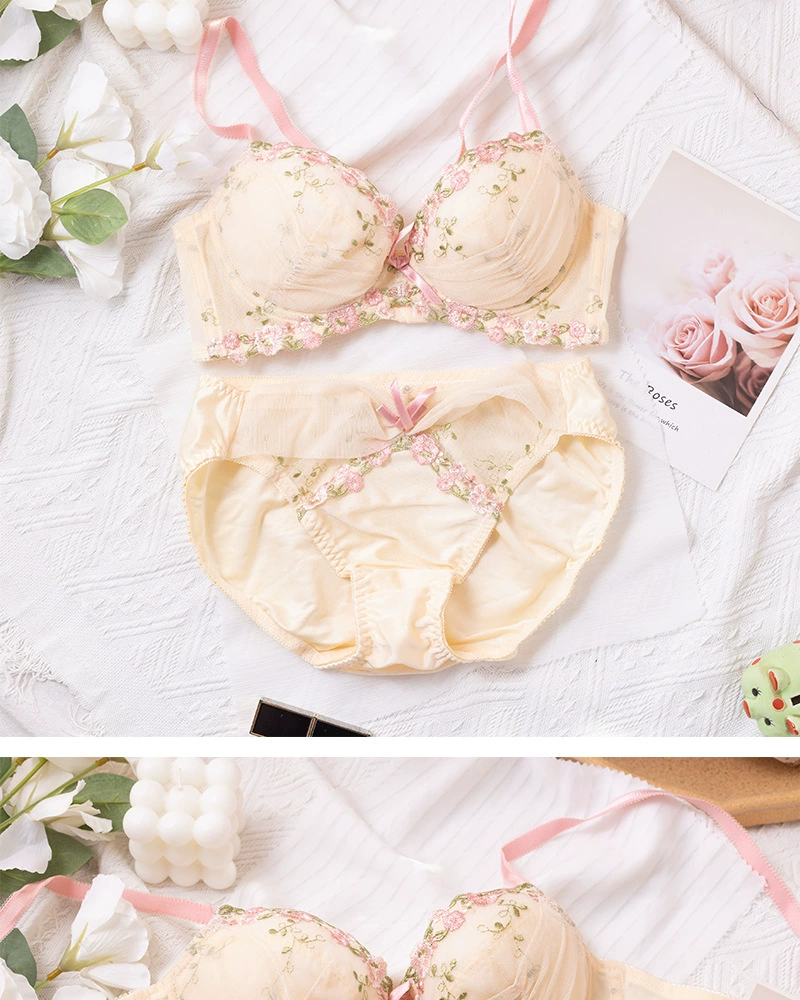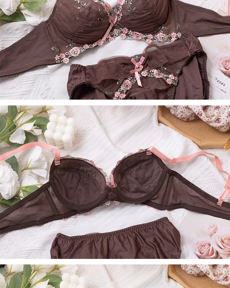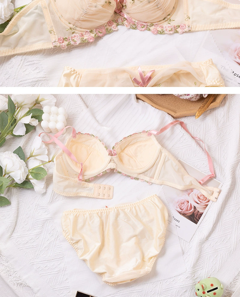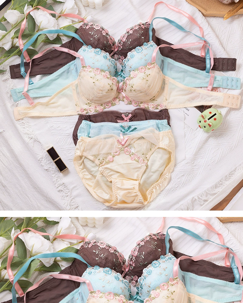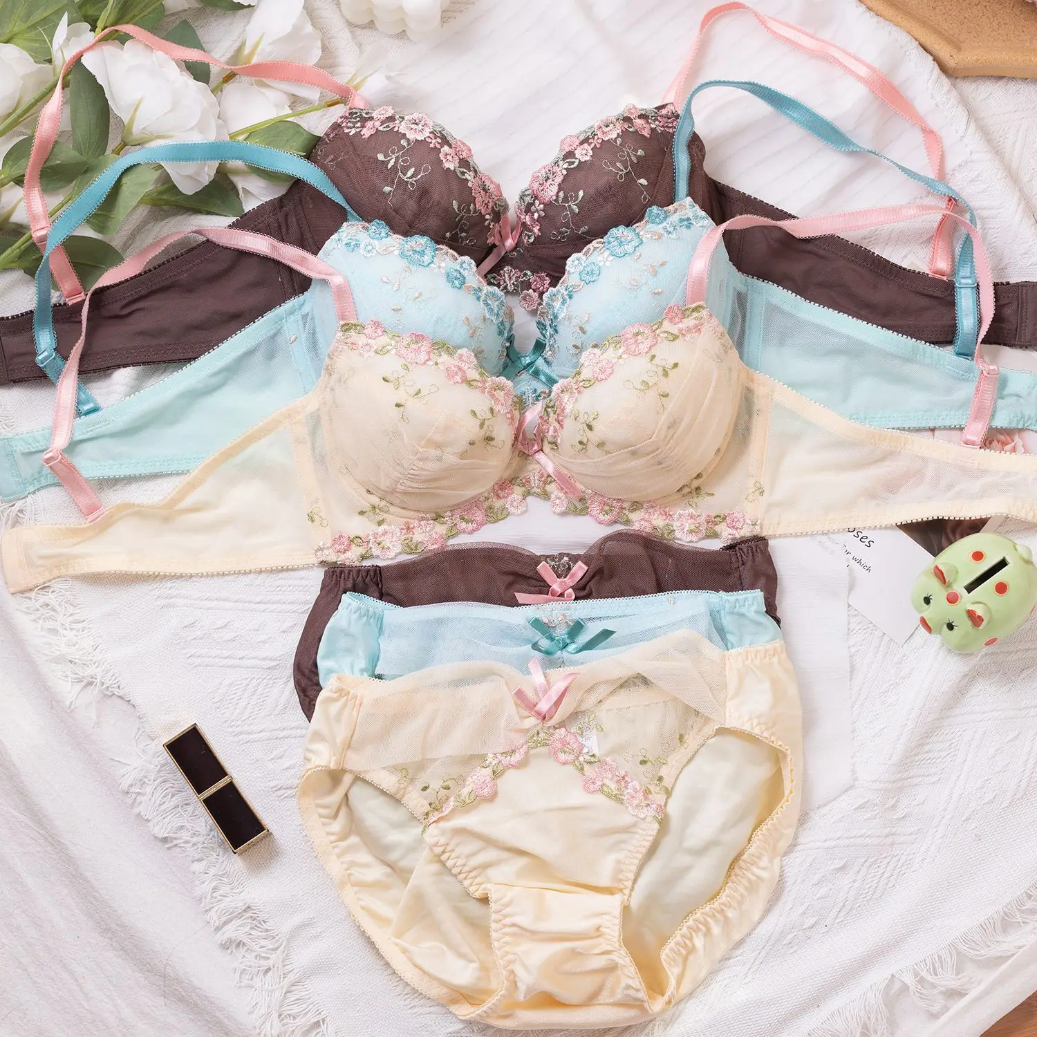 Thin section of sweet lingerie lace embroidery gathered side collection bra set large breast underwear bras