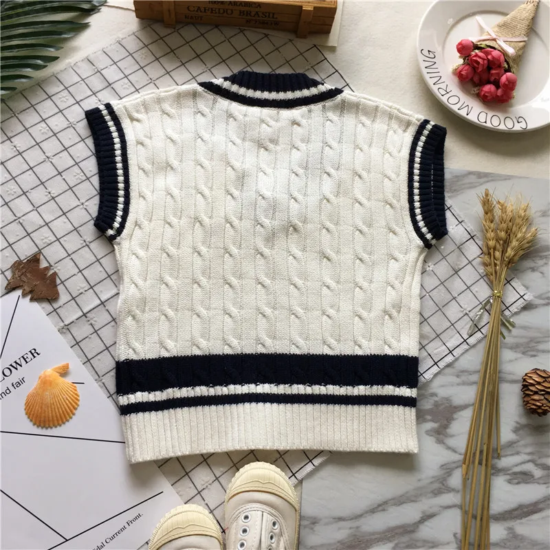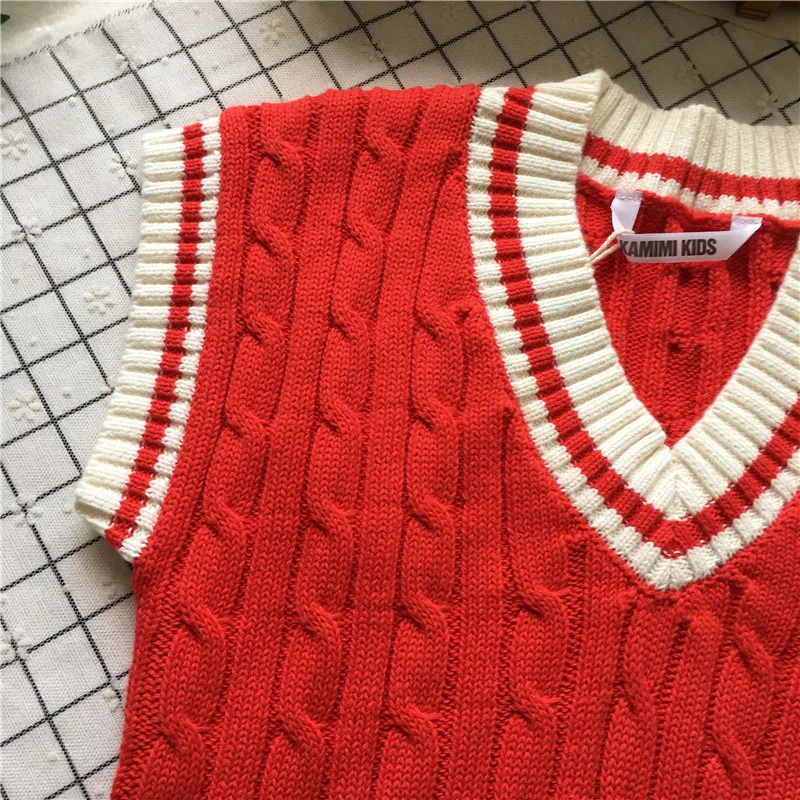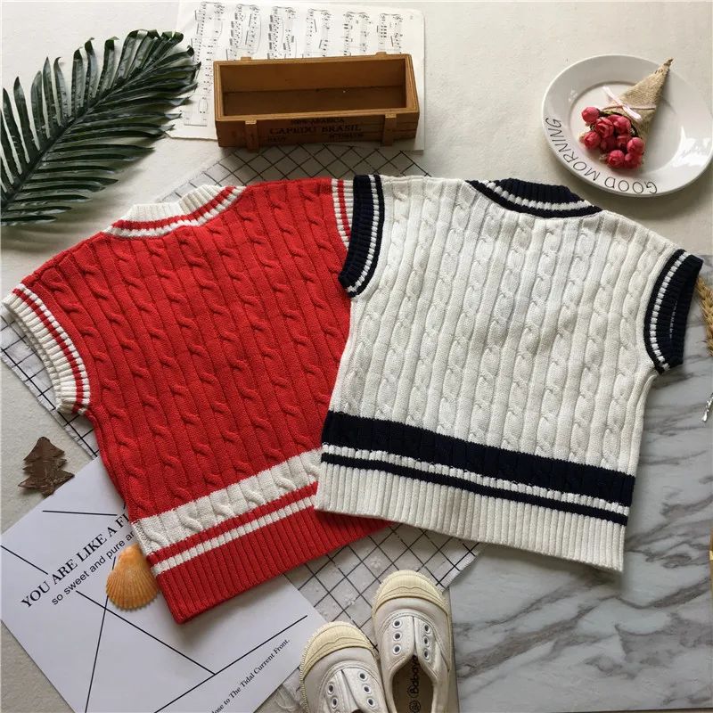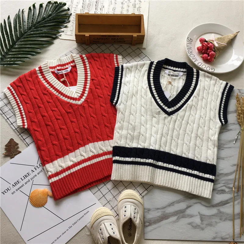 Tonytaobaby Autumn Clothing New Style Childrenswear Cotton Knitted Waistcoat College Style Girl Vests