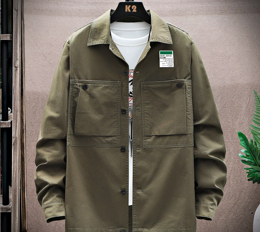 Tooling denim shirt jacket simple and versatile washed men’s long-sleeved shirt bottoming casual top