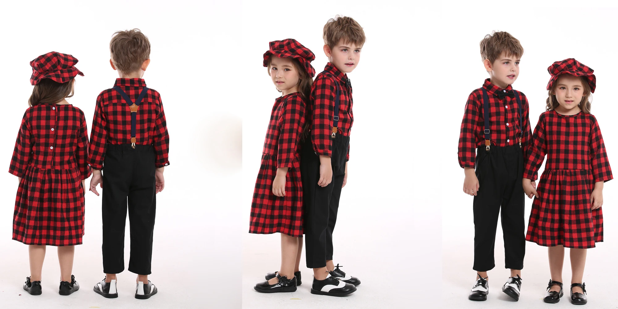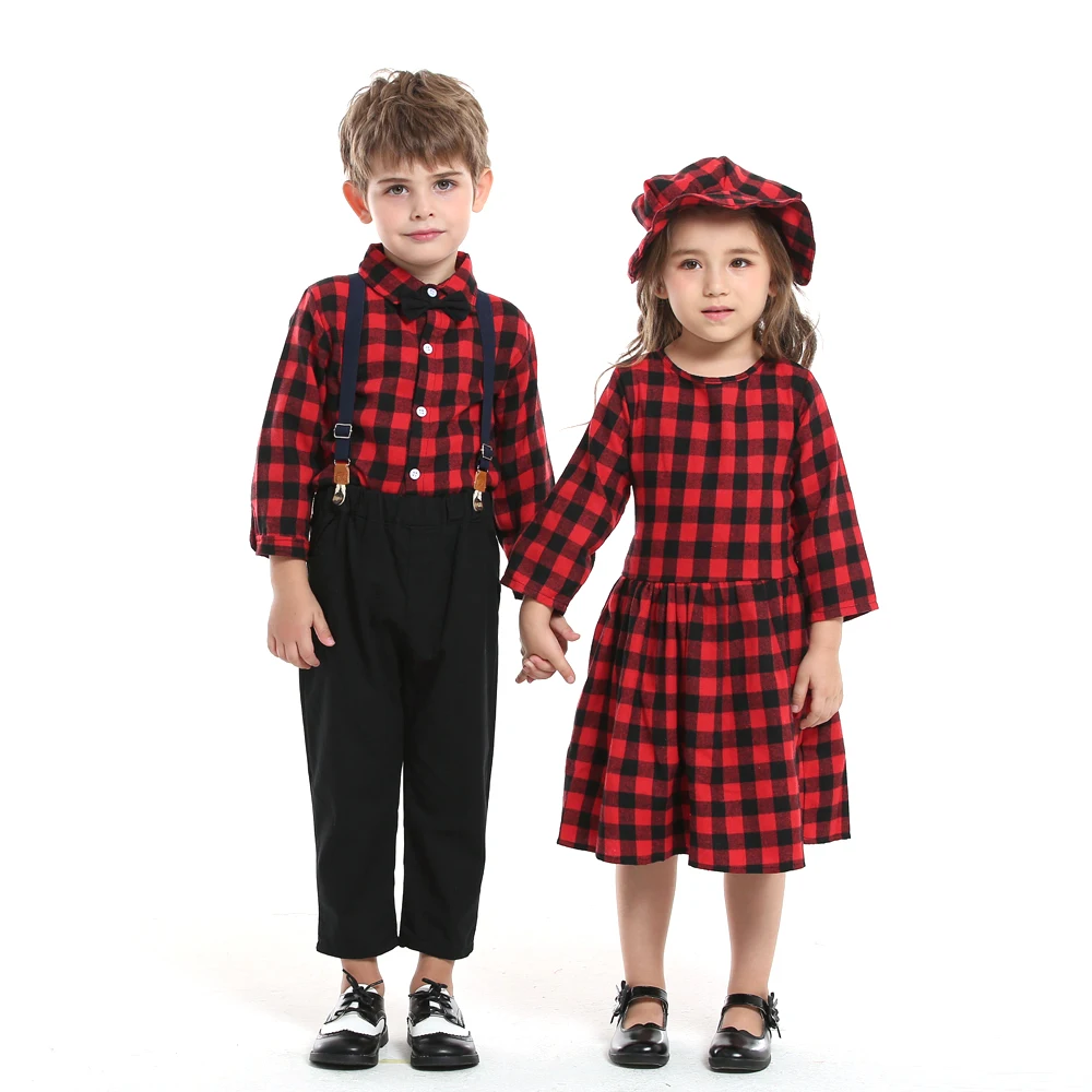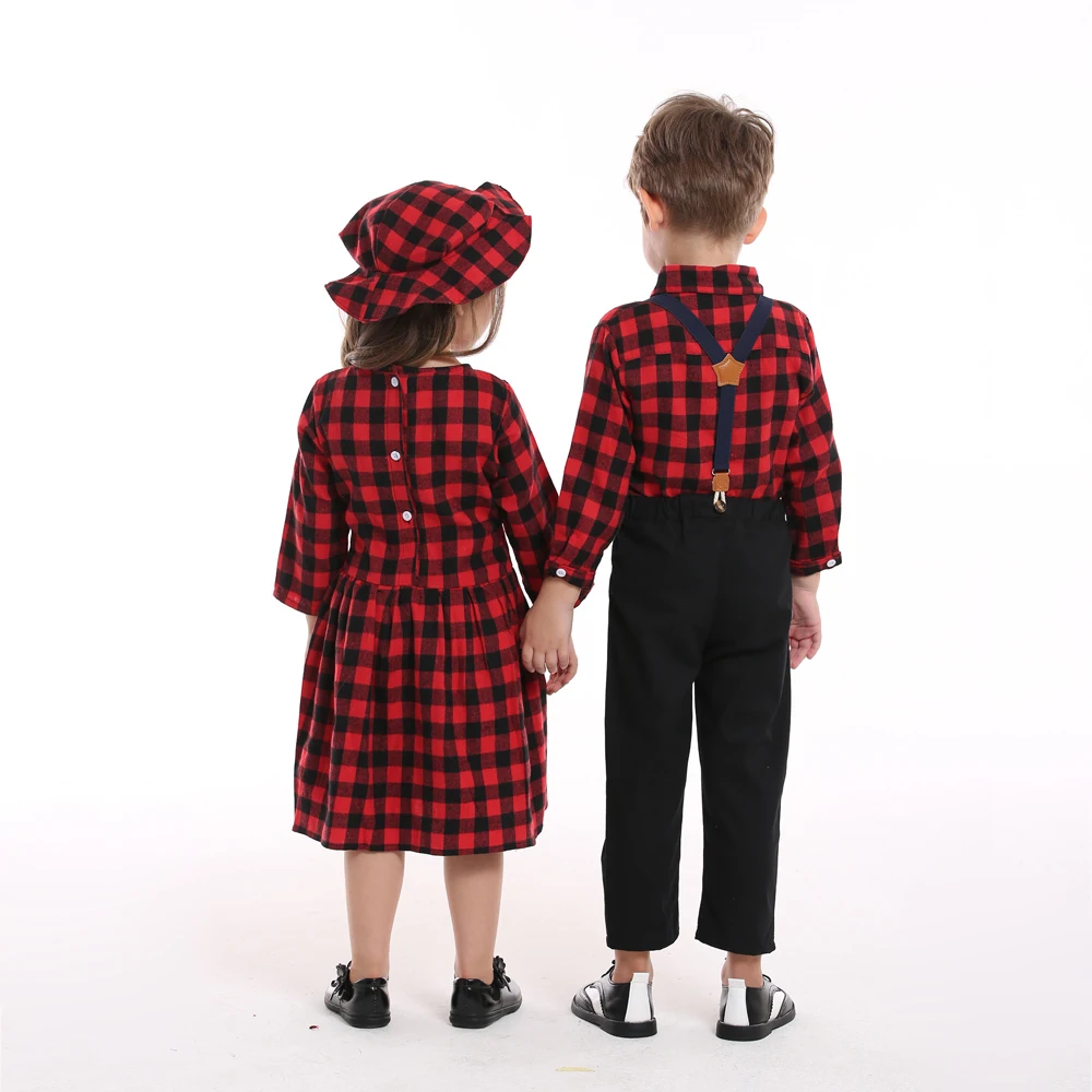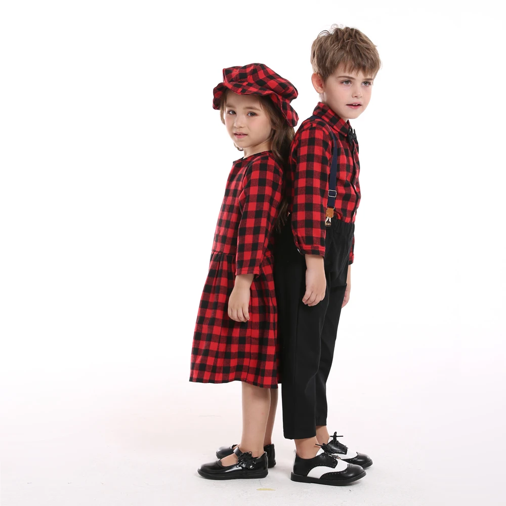 top and top Autumn Winter Christmas Brother and Sister Matching Sets Boys Gentleman Suit+ Girls Dresses Children Clothing Sets