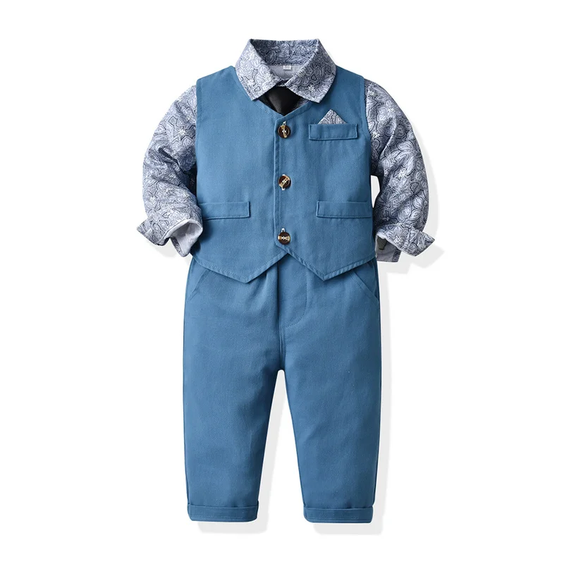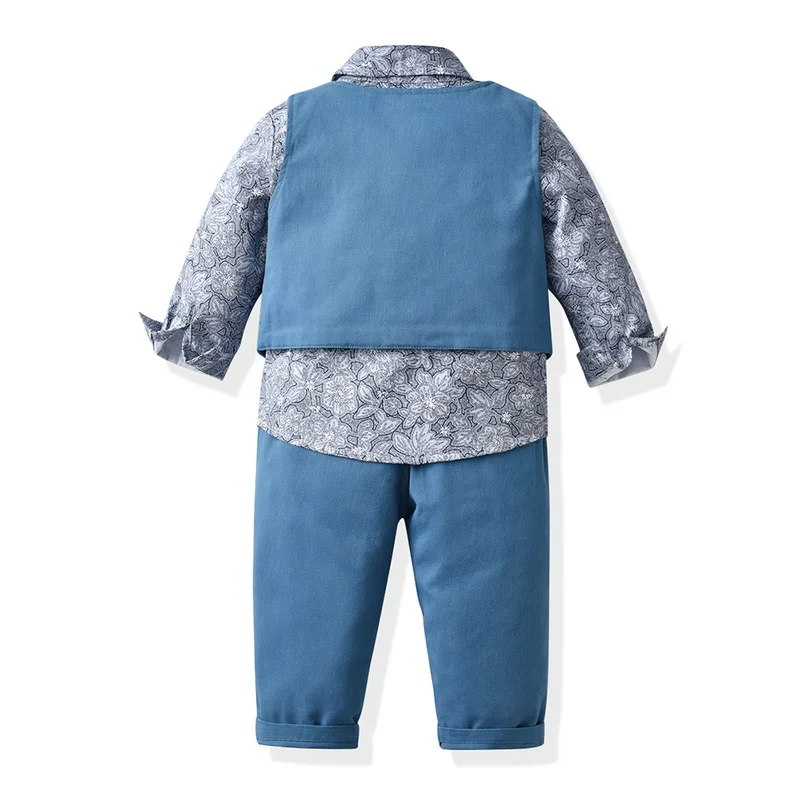 top and top Fashion New Kids Boys Gentleman Clothing Set Long Sleeve Floral Bowtie Shirts+Vest+Trousers Toddler Boy Formal Suit