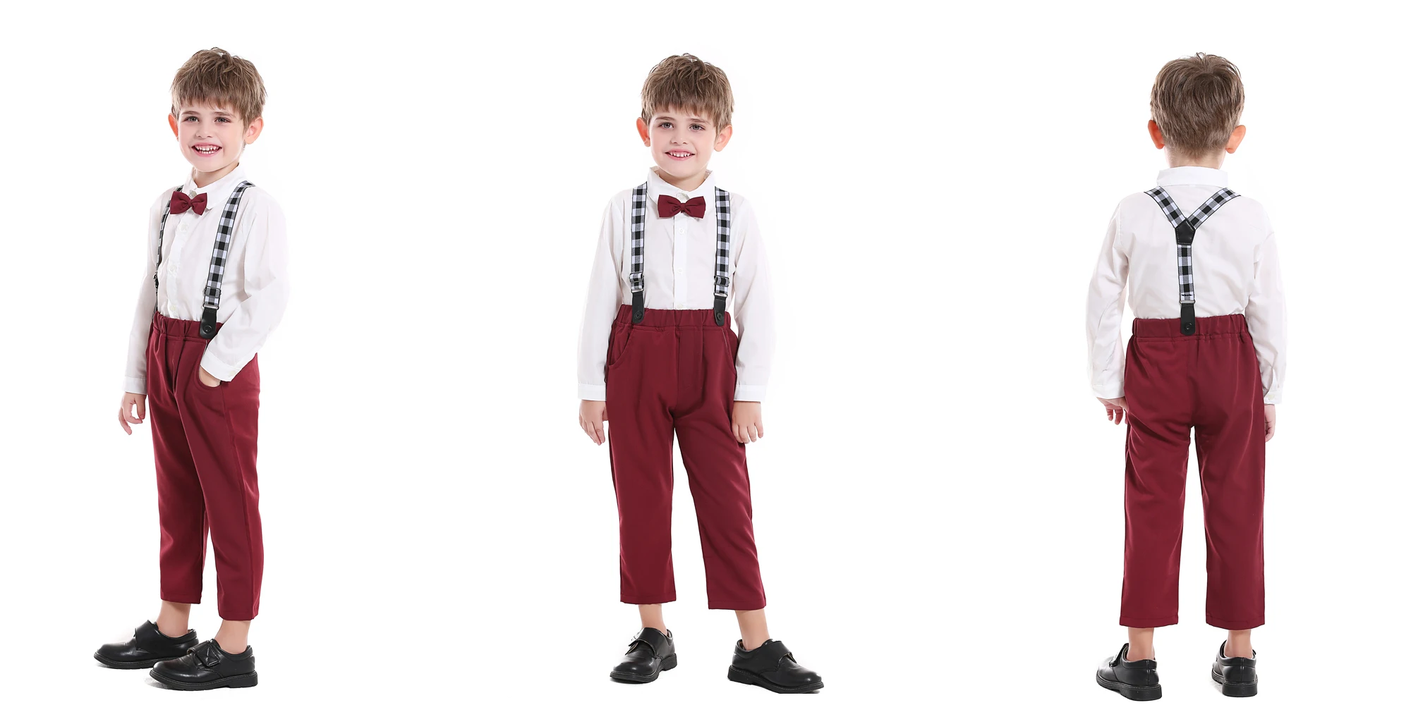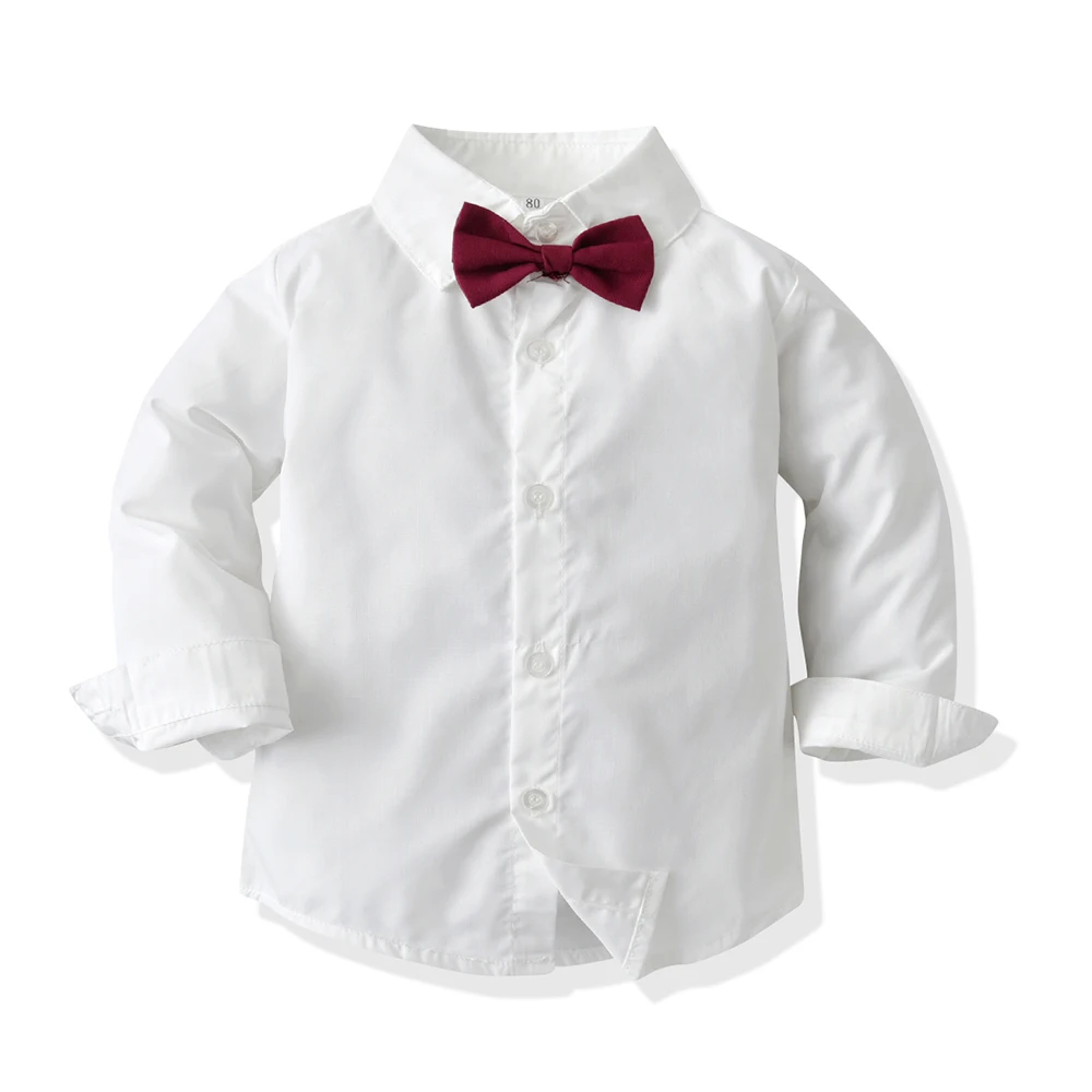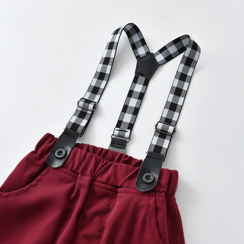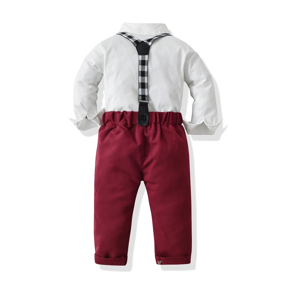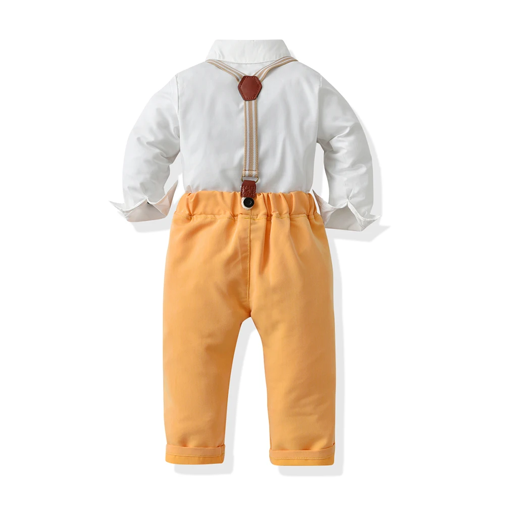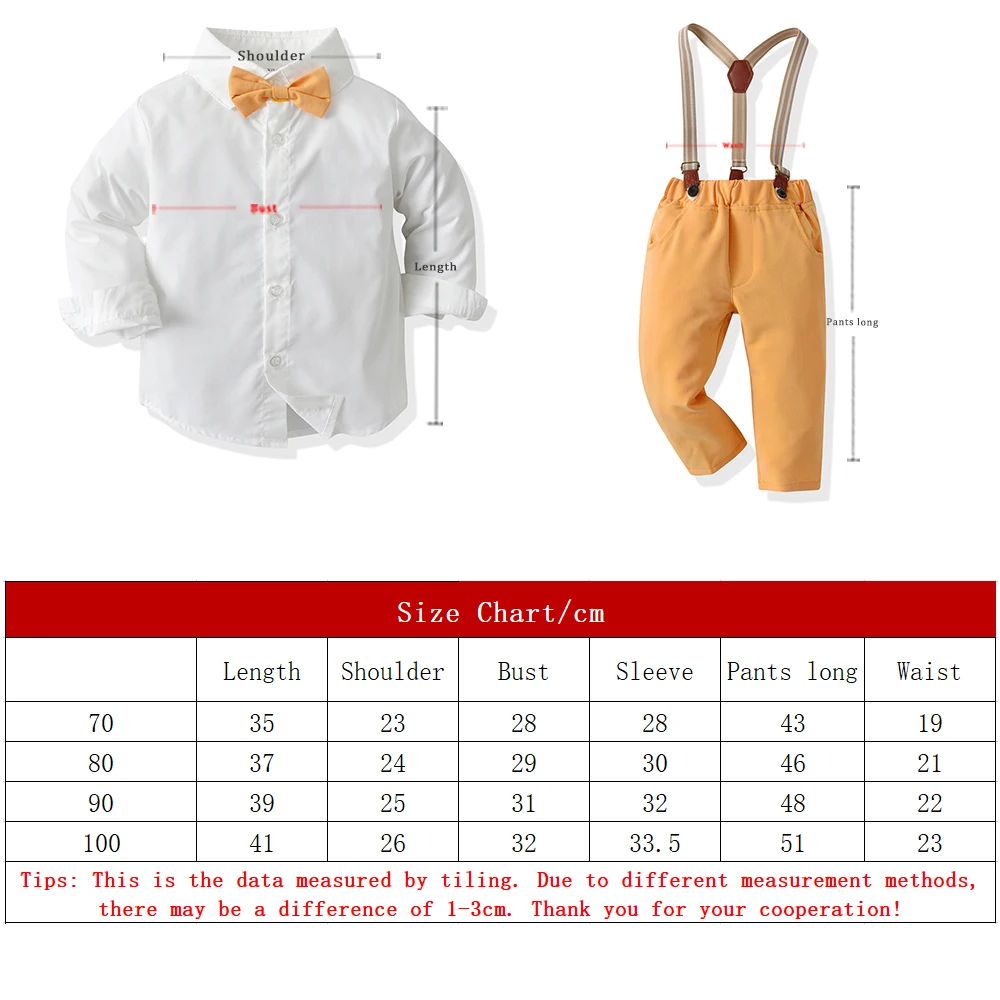 top and top New Fashion Baby Boy Clothing Set Boys Gentleman Long Sleeve Shirts with Bow tie+Suspenders Pants Suits for Wedding
