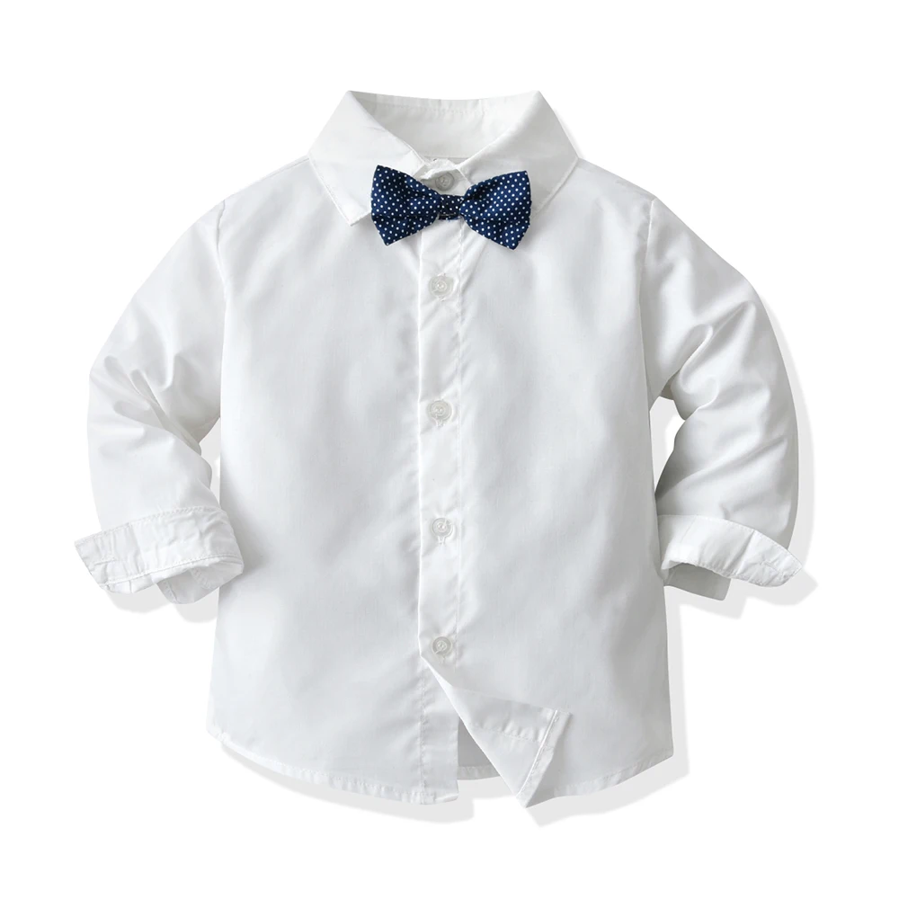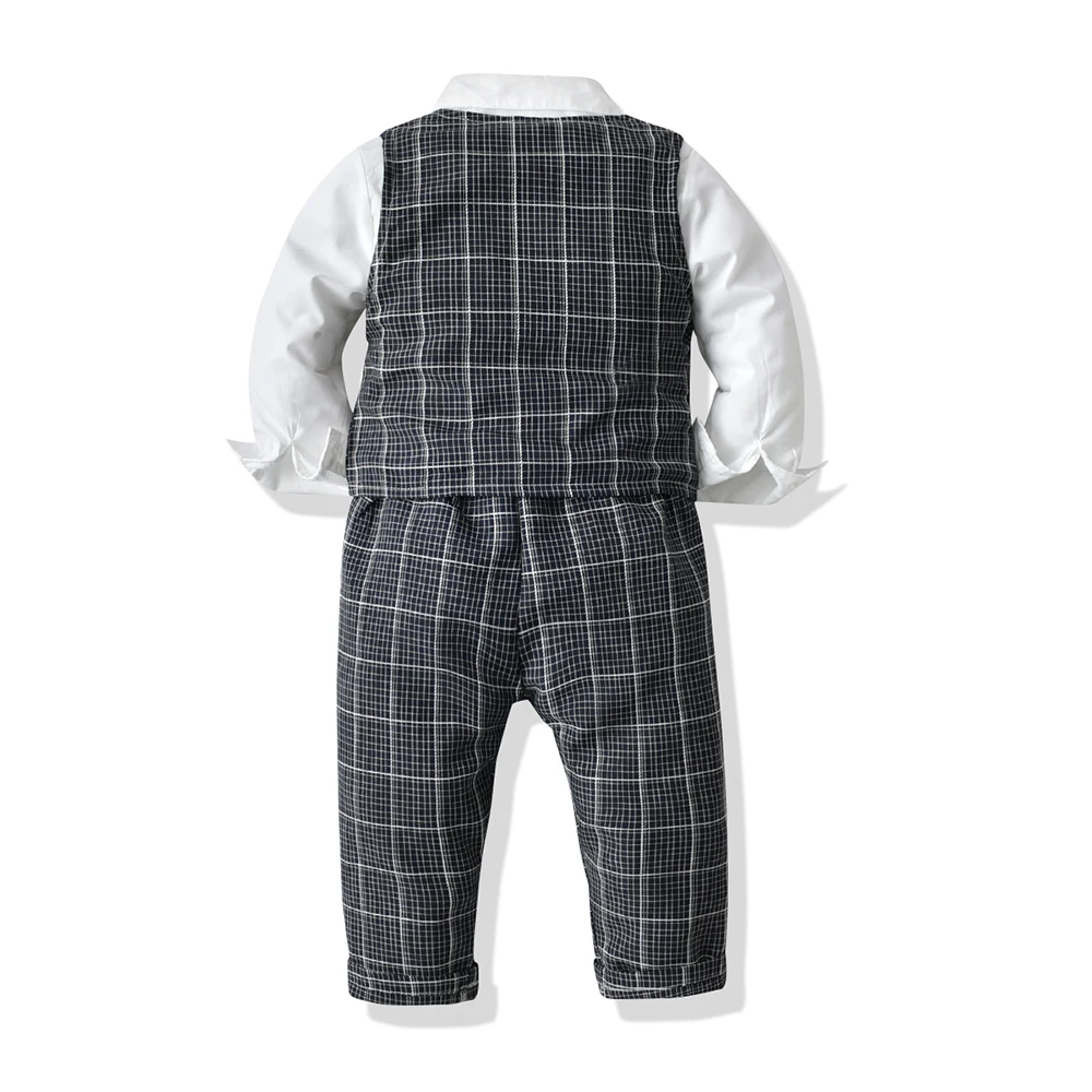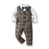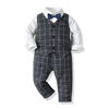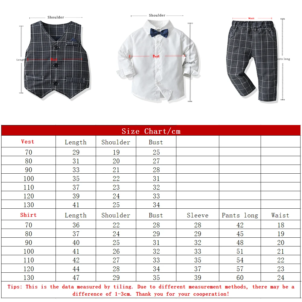 top and top Spring&Autumn New Baby Boy Gentleman Suit Bow Tie White Shirt +Striped Vest+Pants 3Pcs Formal Toddler Clothing Set