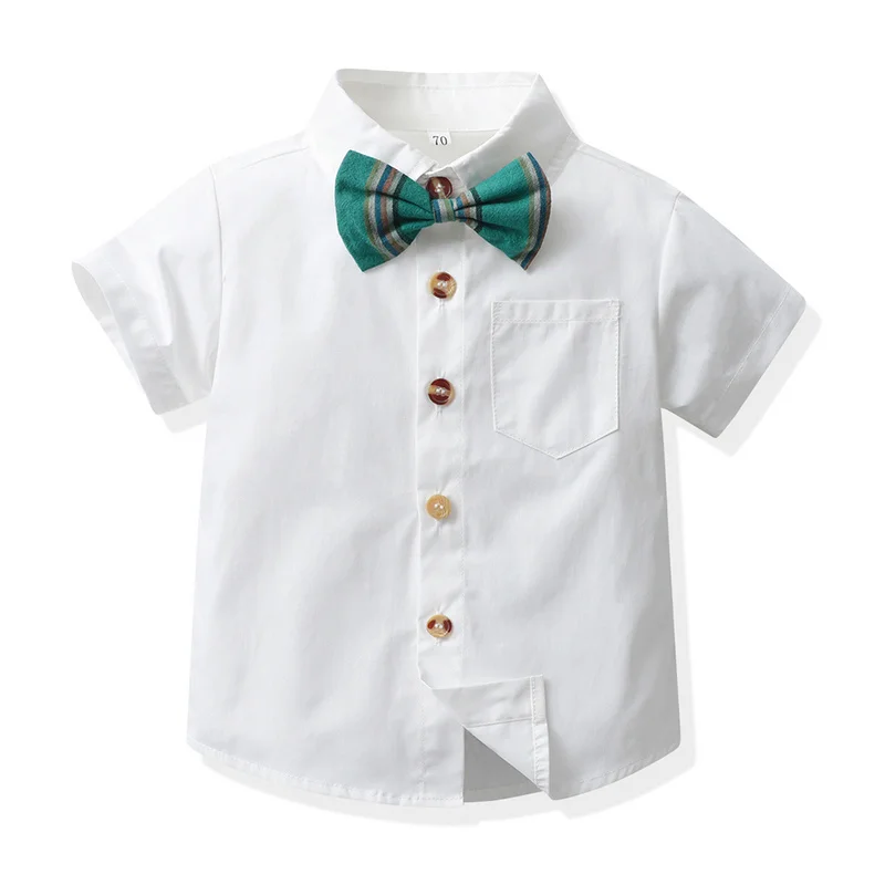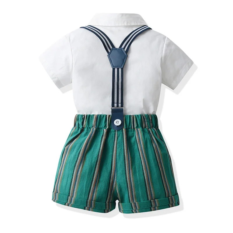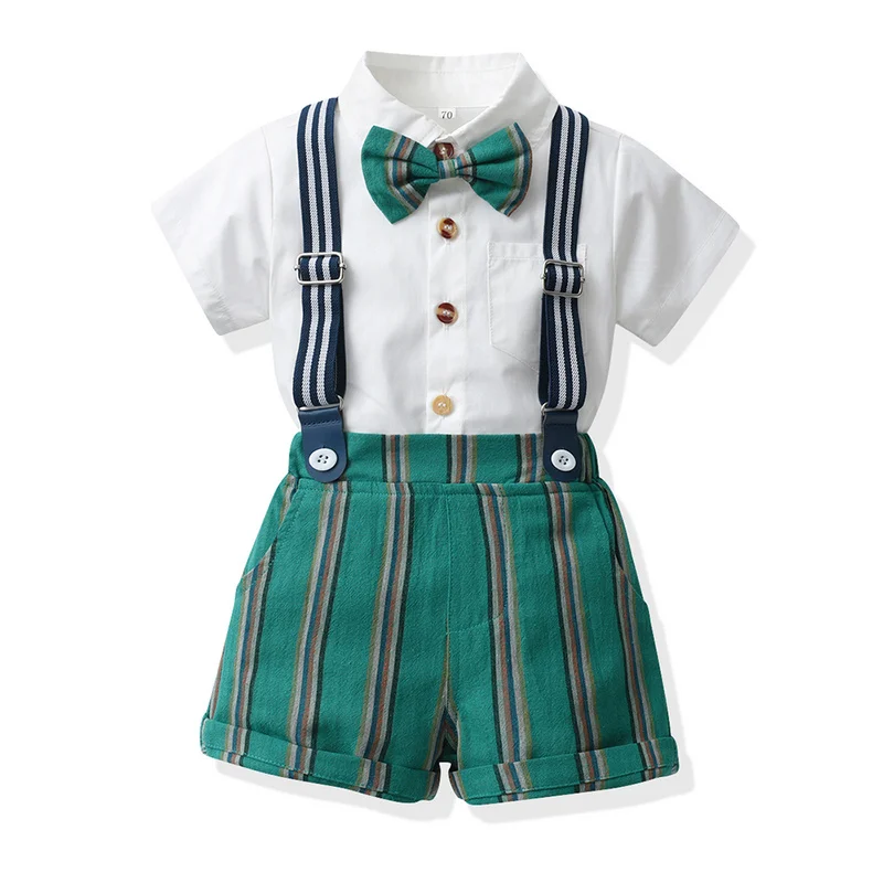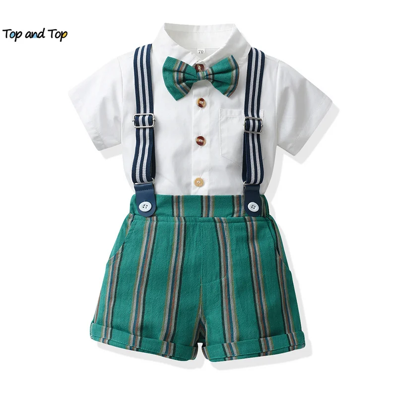 top and top Summer Infant Boys Clothing Sets Shorts Sleeve Bowtie Shirts+Overalls Gentleman Suits Toddler Boys Casual Clothes