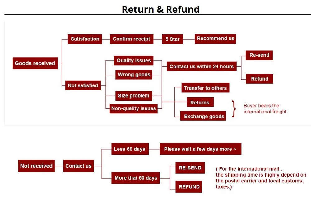 Your satisfaction is our #1 priority. Therefore, you can request a refund or reshipment for ordered products if: