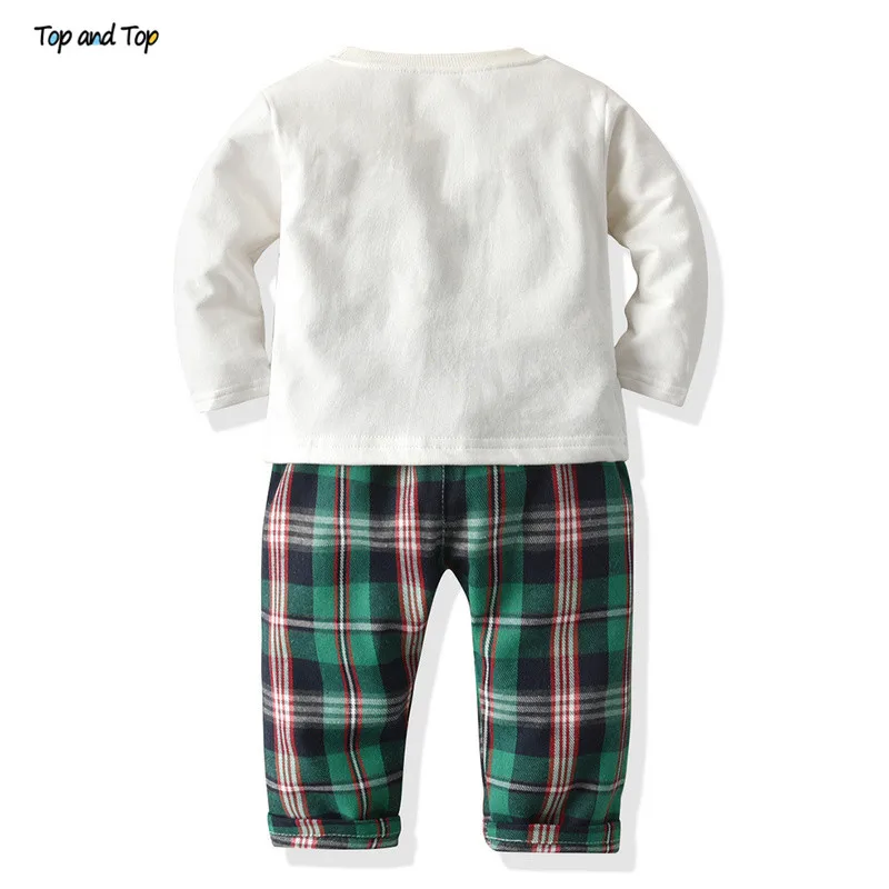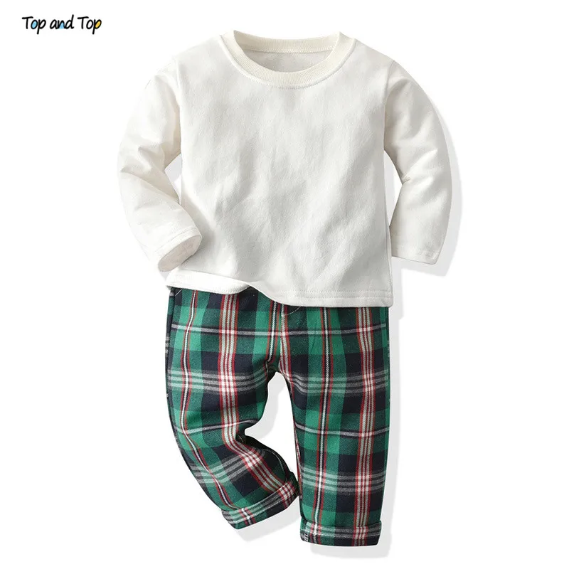 Top and Top Toddler Infant Boys Clothes Long Sleeve Cotton Tshirt+Plaid Trousers Pajamas 2Pcs/Set Newborn Baby Girls Clothes