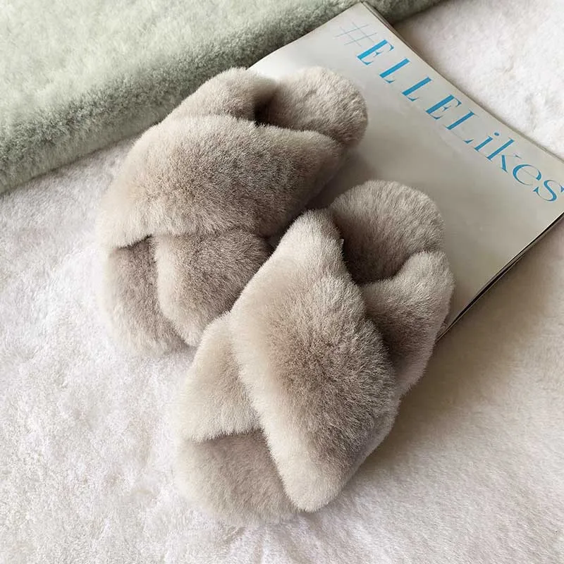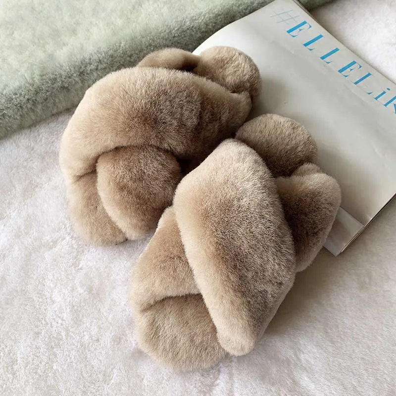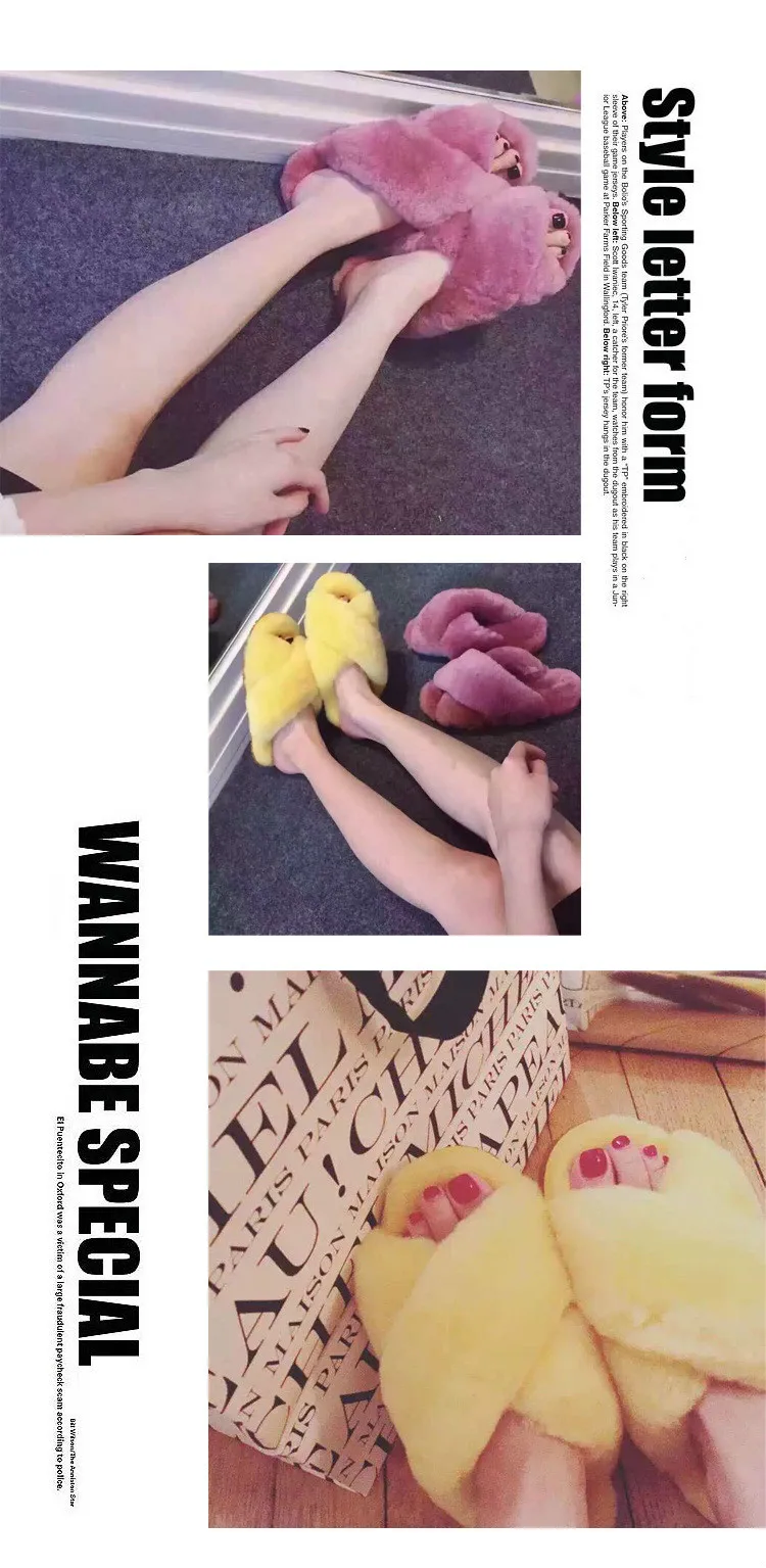 Top Fashion 100% Natural Fur Warm Slippers Women Winter Home Shoes Indoor Slipper Luxury Wool Slippers Woman Casual Slippers