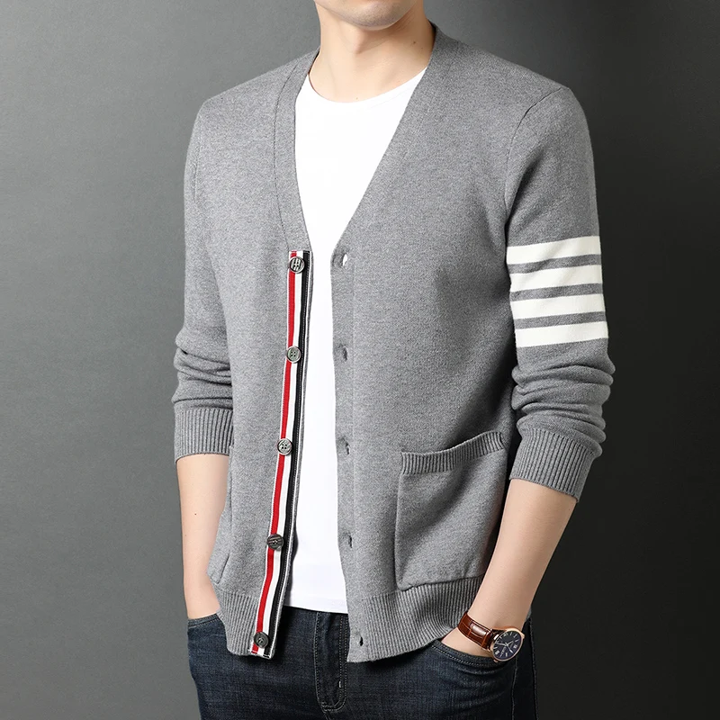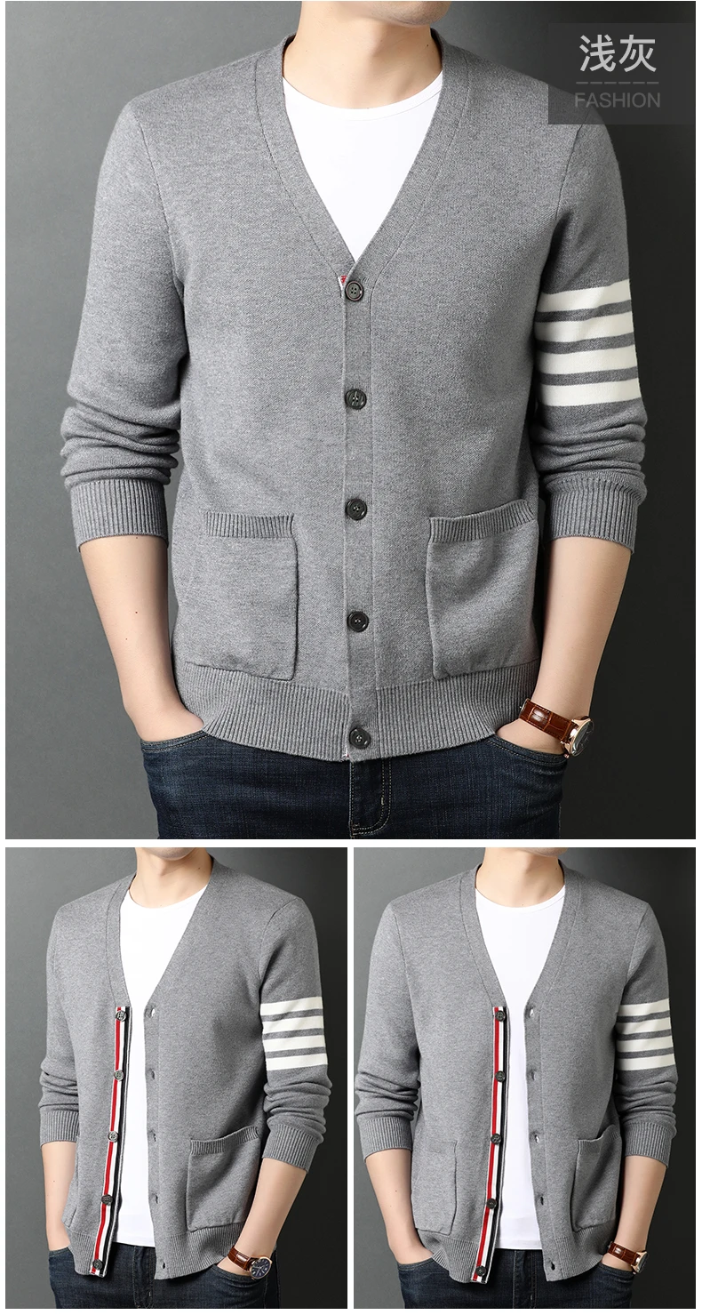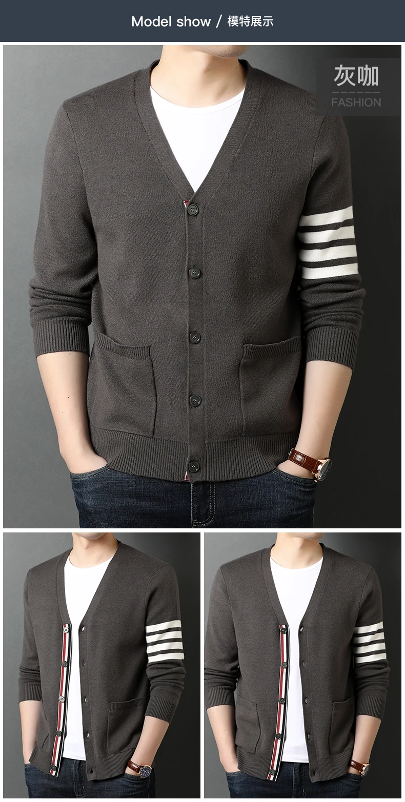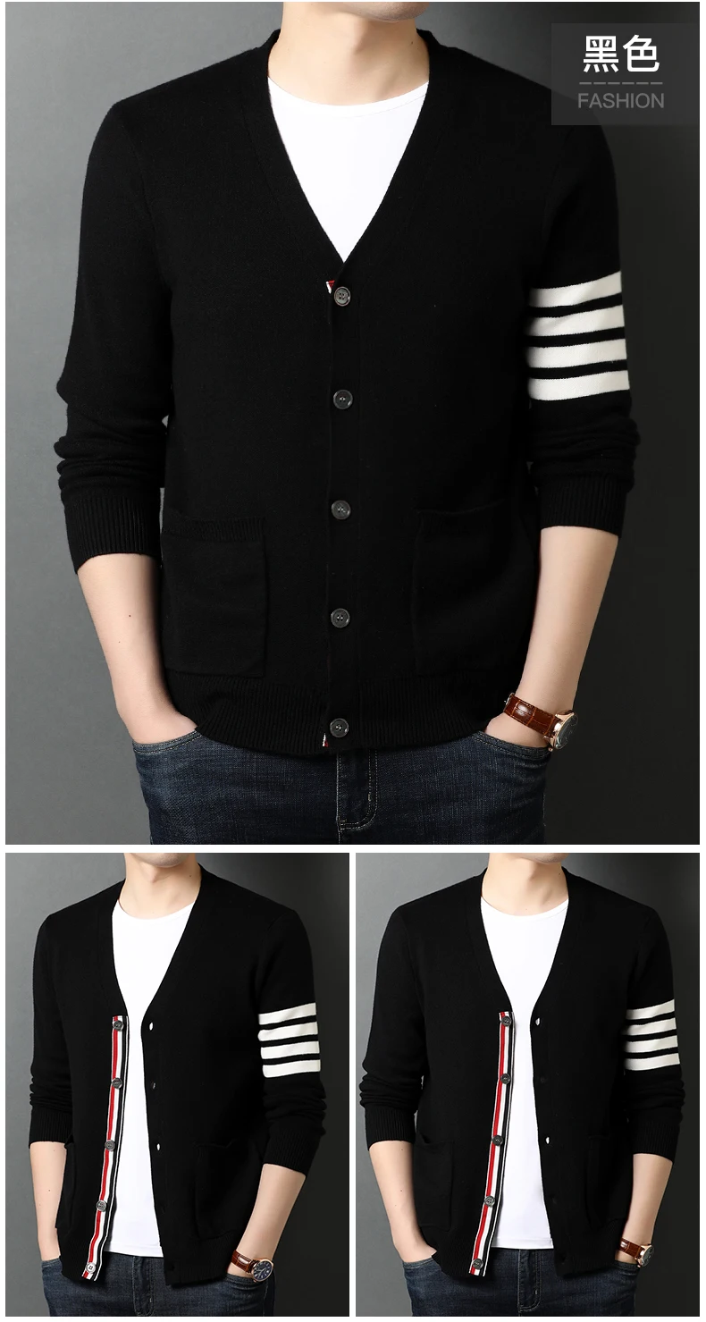 Top Grade New Autum Winter Brand Fashion Knitted Men Cardigan Sweater Black Korean Casual Coats Jacket Mens Clothing 2023