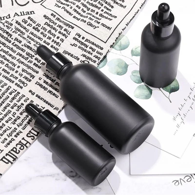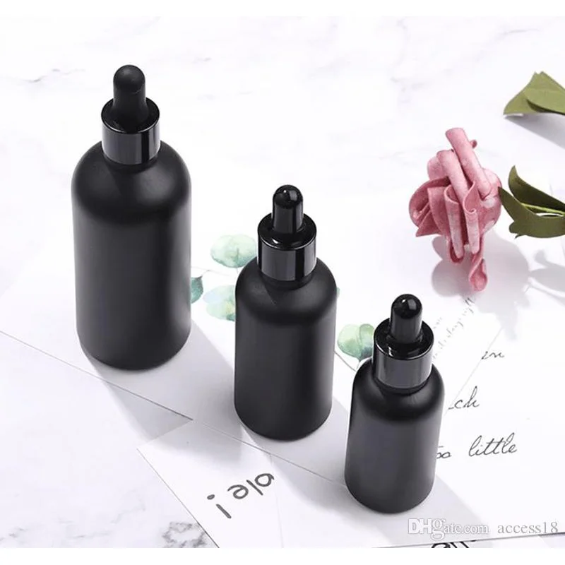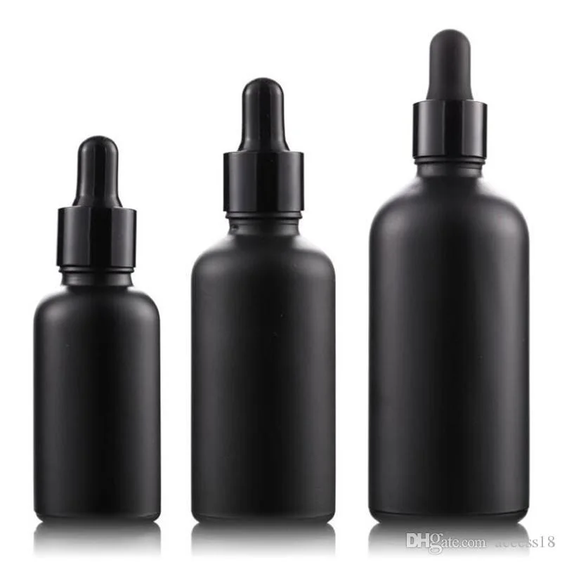 Top Quality Empty glass bottles with dropper essential oil bottles frost black 30ml 50ml 100ml E liquid oil bottles with glass P