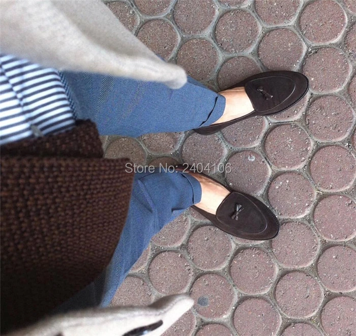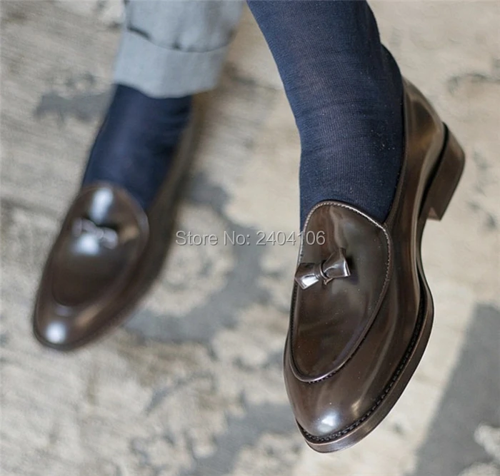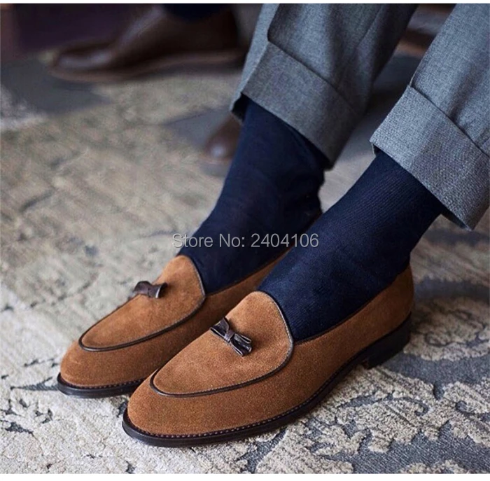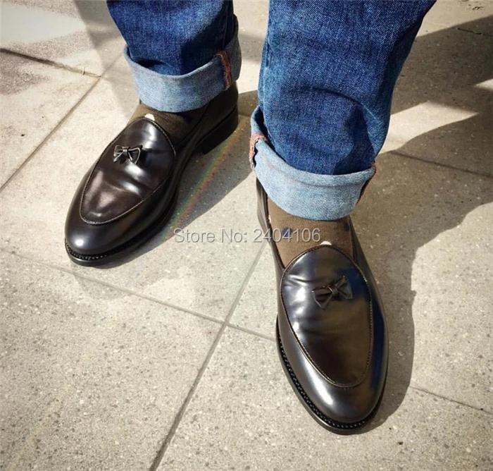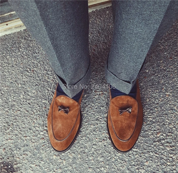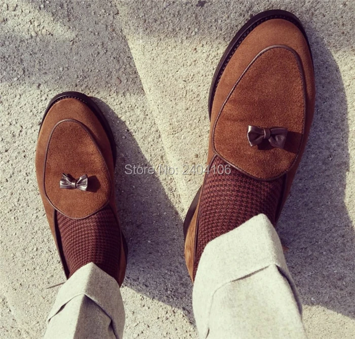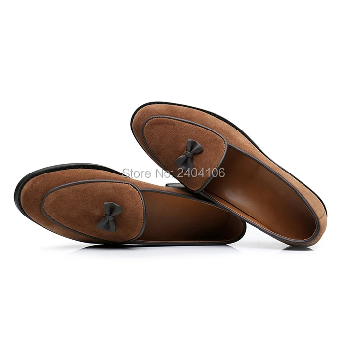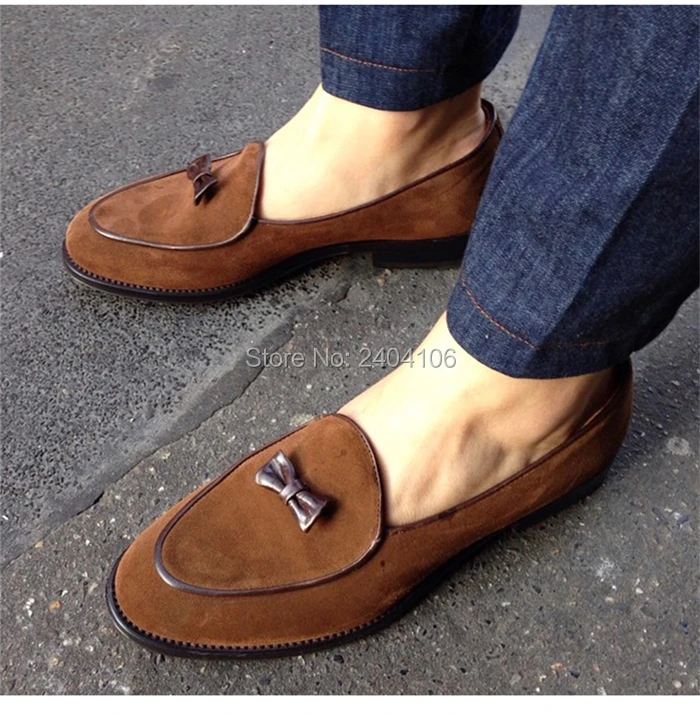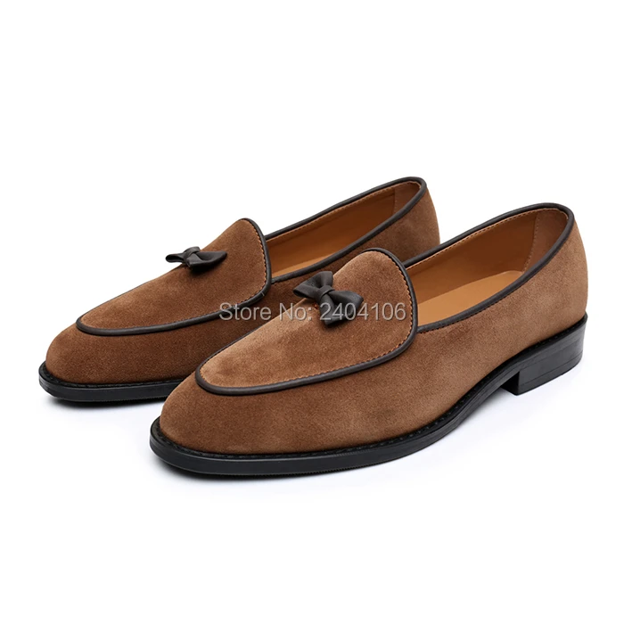 High Quality Vintage Male Shoes Slip On Business Casual Shoes Men Flats Zapatos Hombre Brown Nubuck Leather Bowknot Loafers Men