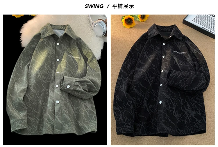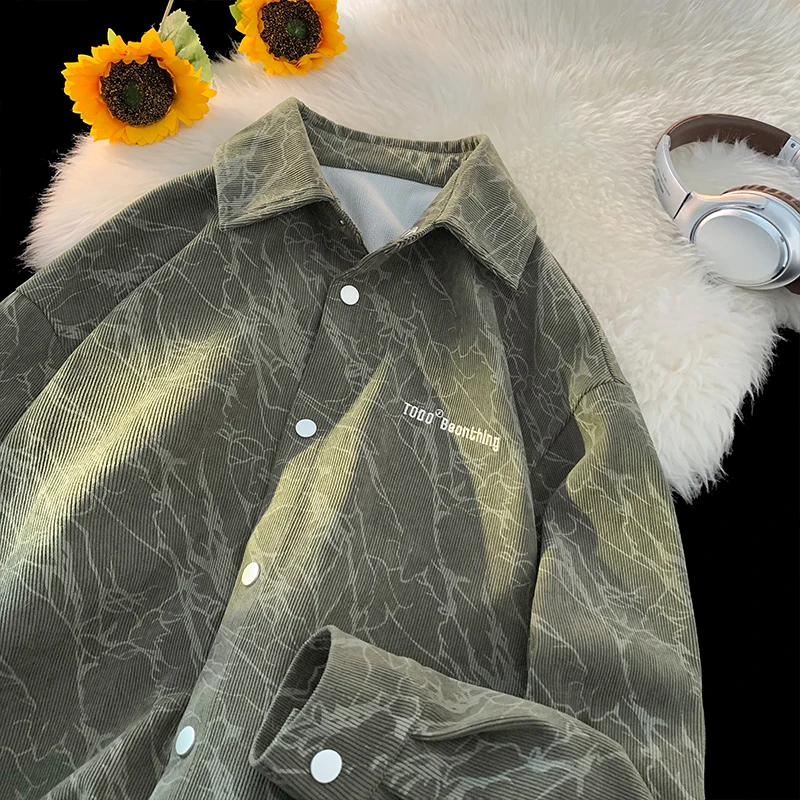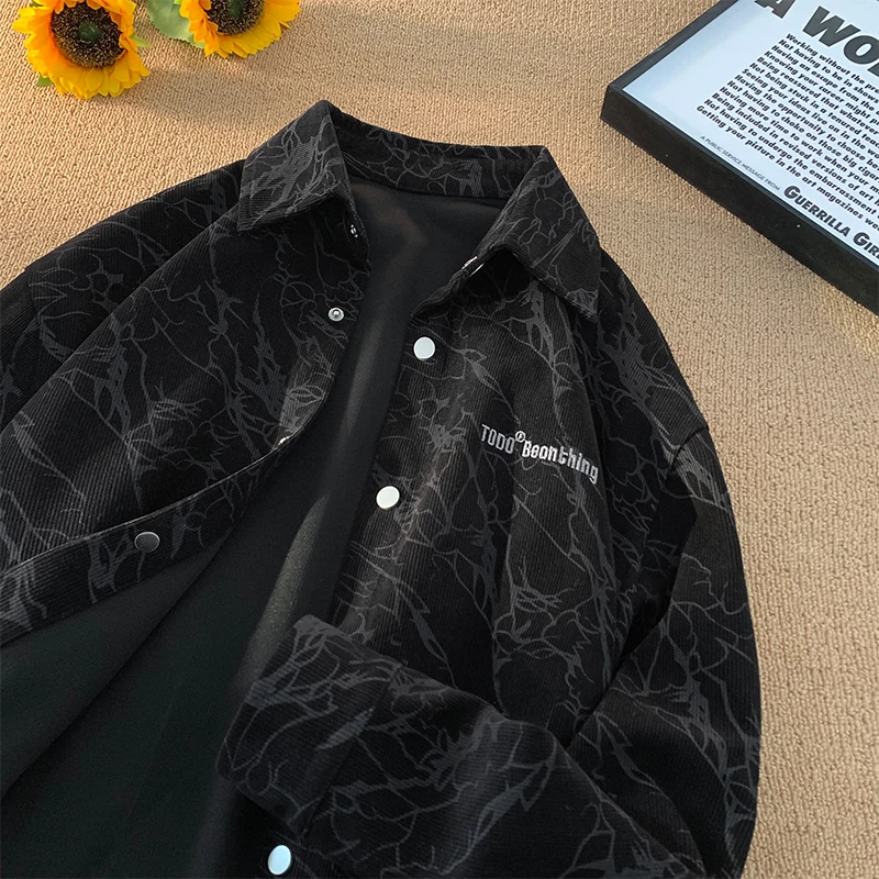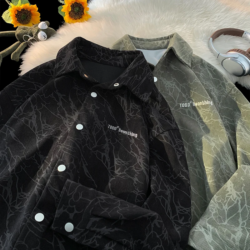 Trendy Corduroy Long-sleeved Shirt Men’s Casual Shirt Embroidery Design Retro Shirt 2024 Spring Fashion Printed Buttons Cardigan