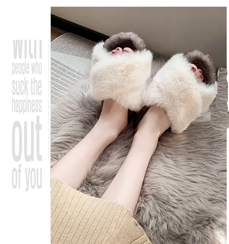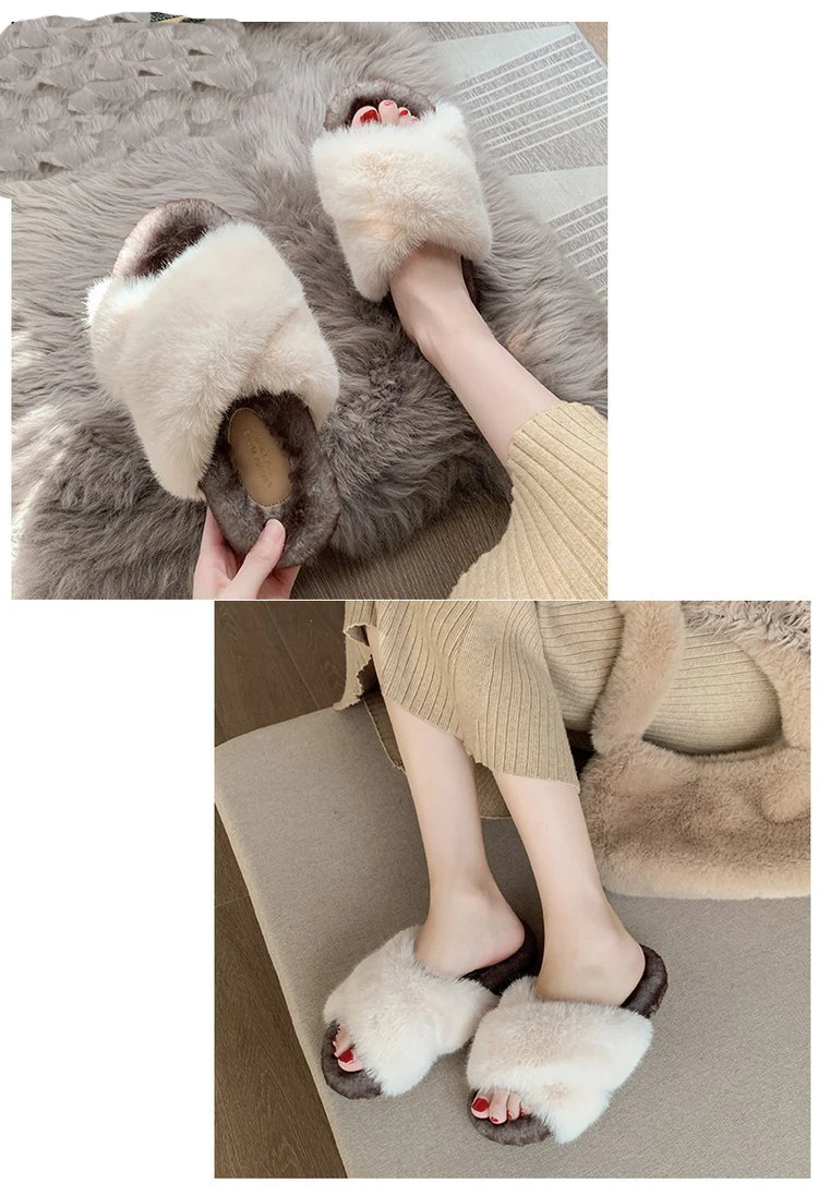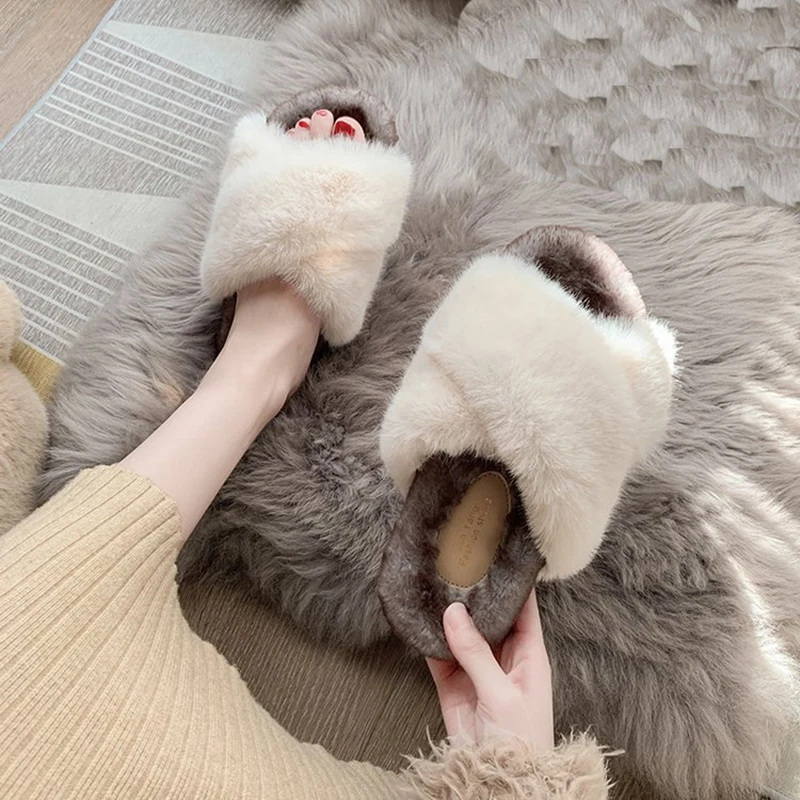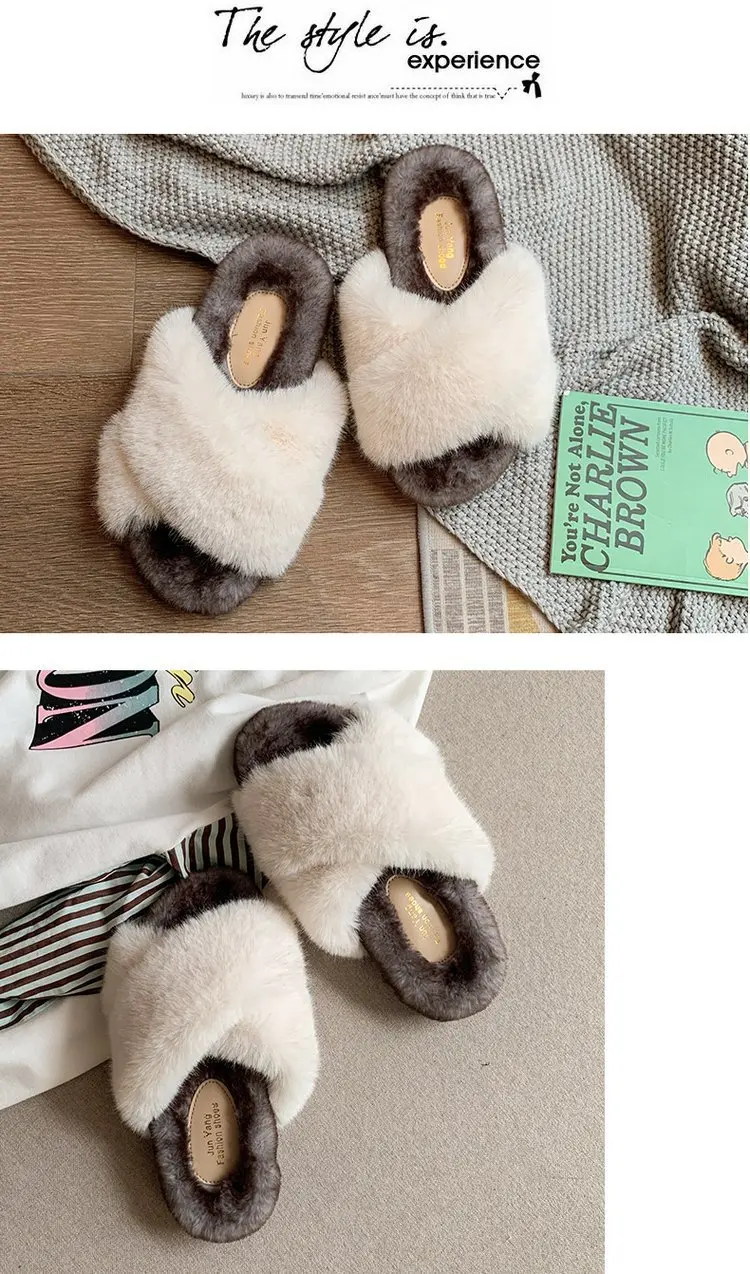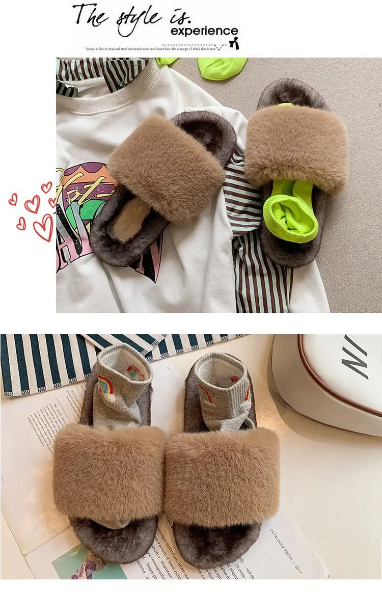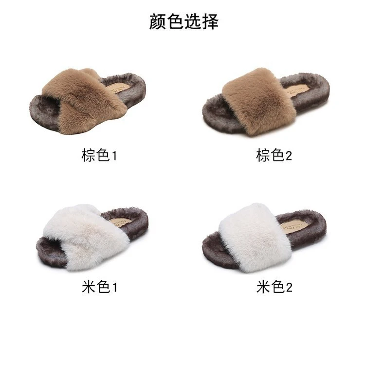 Style: Korean Brand Fur Slippers Women Winter Shoes