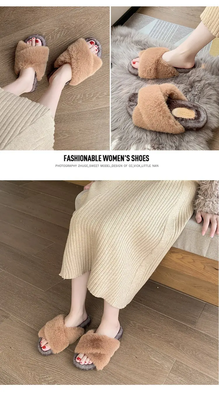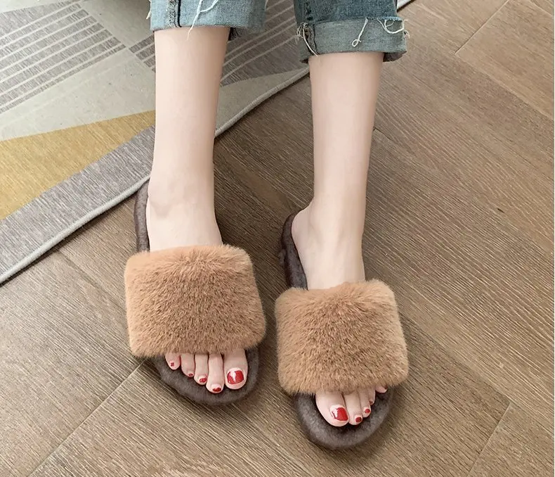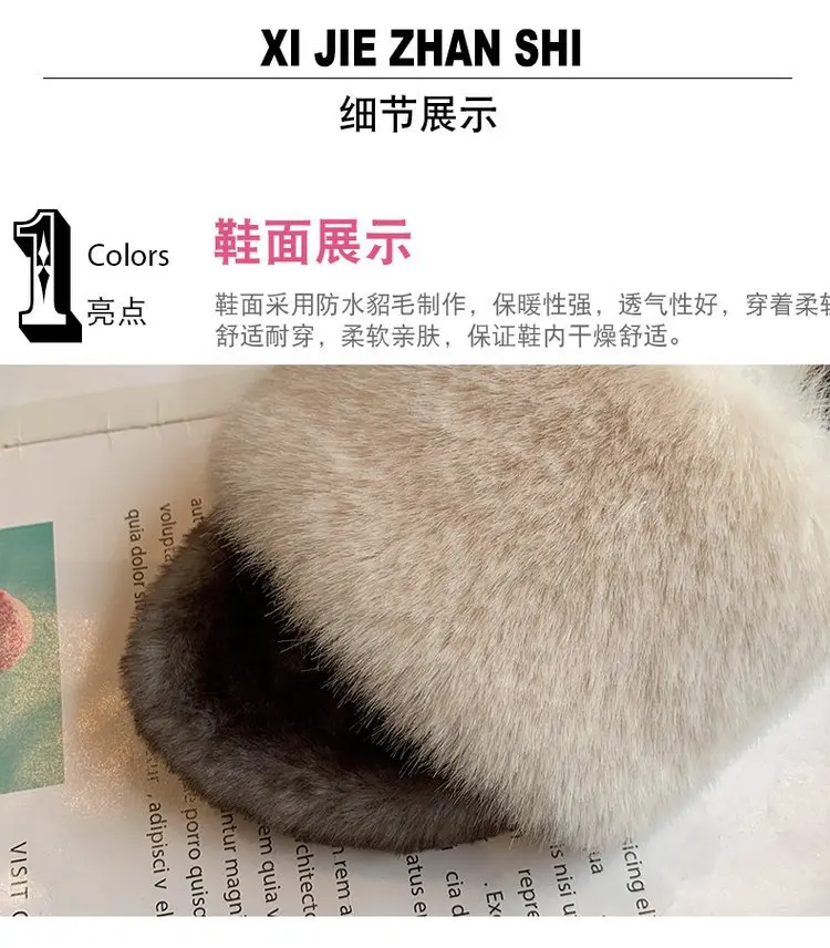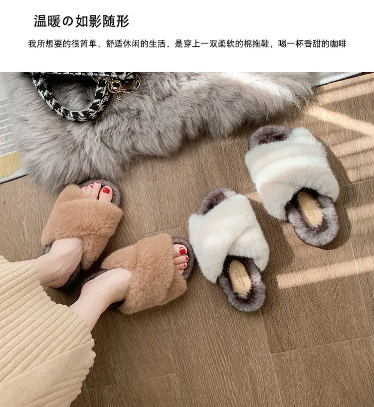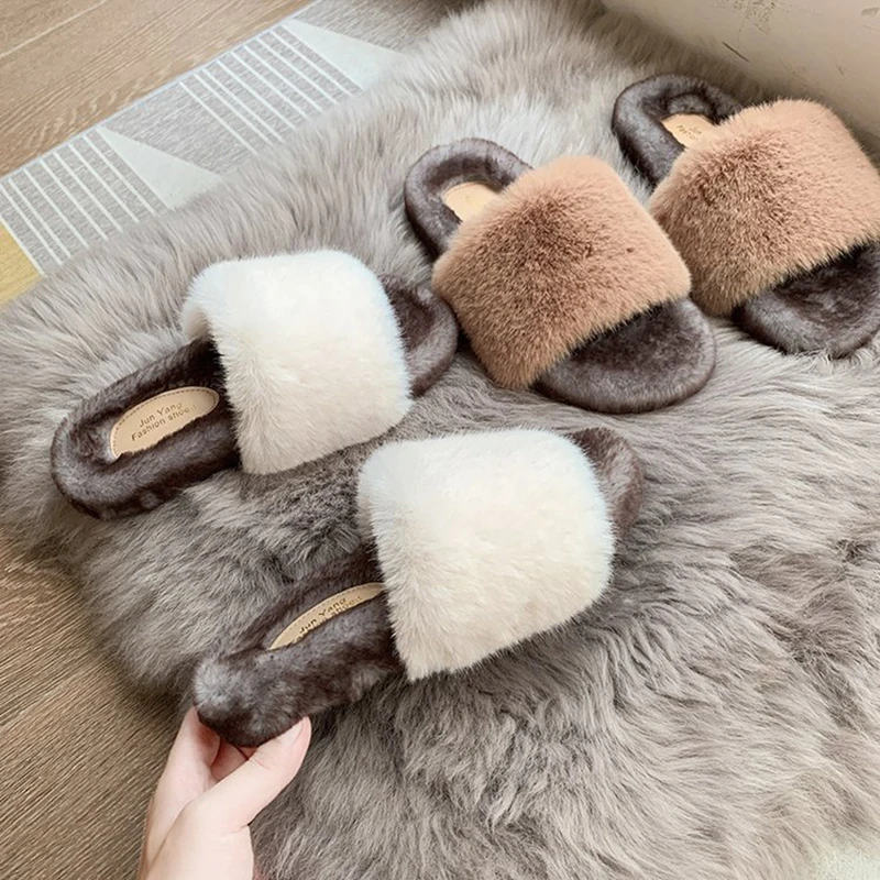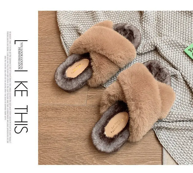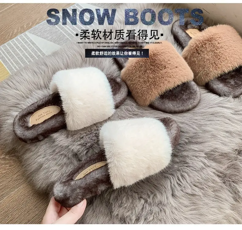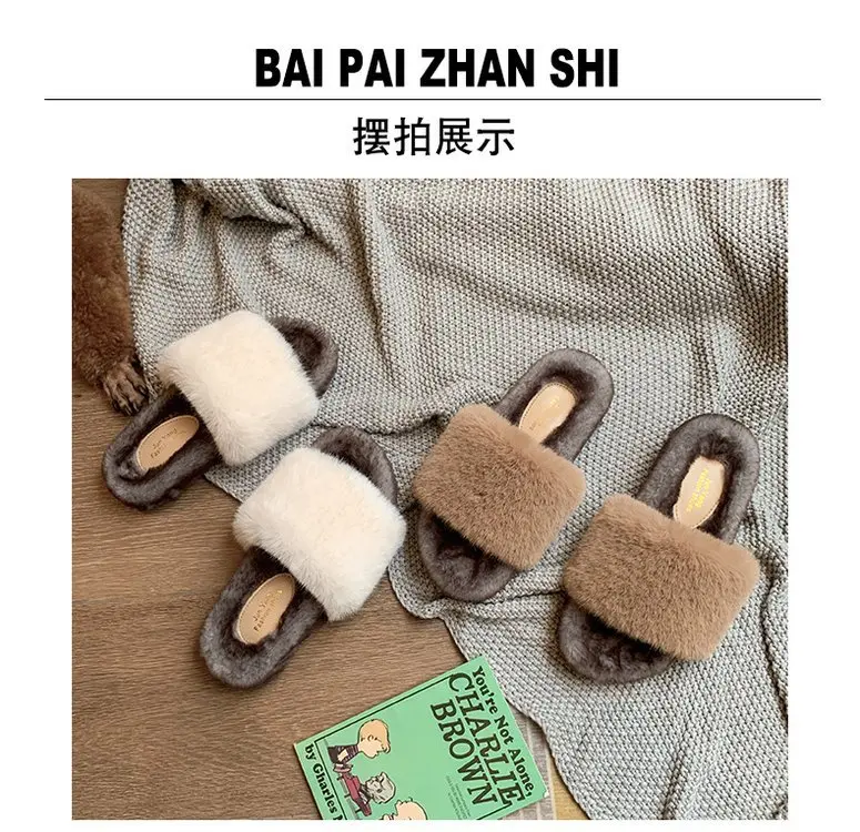Style: Korean Brand Fur Slippers Women Winter Shoes