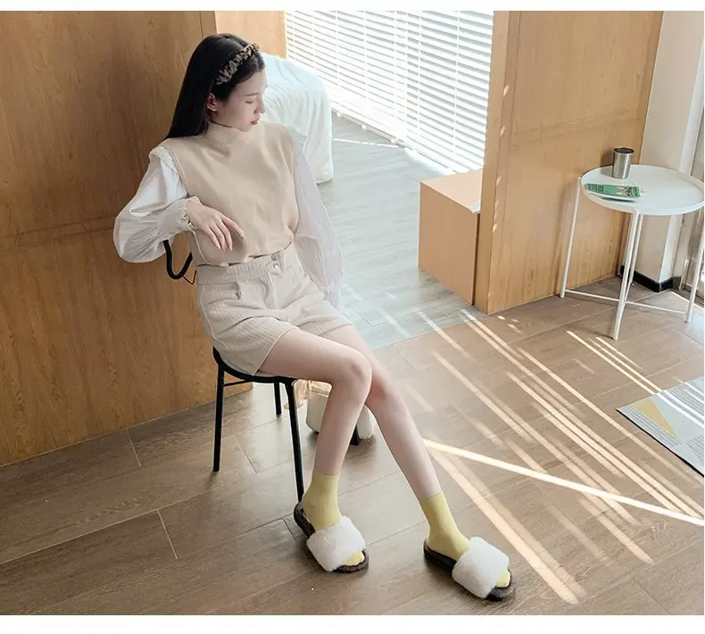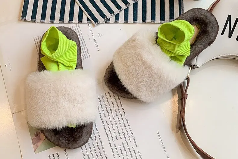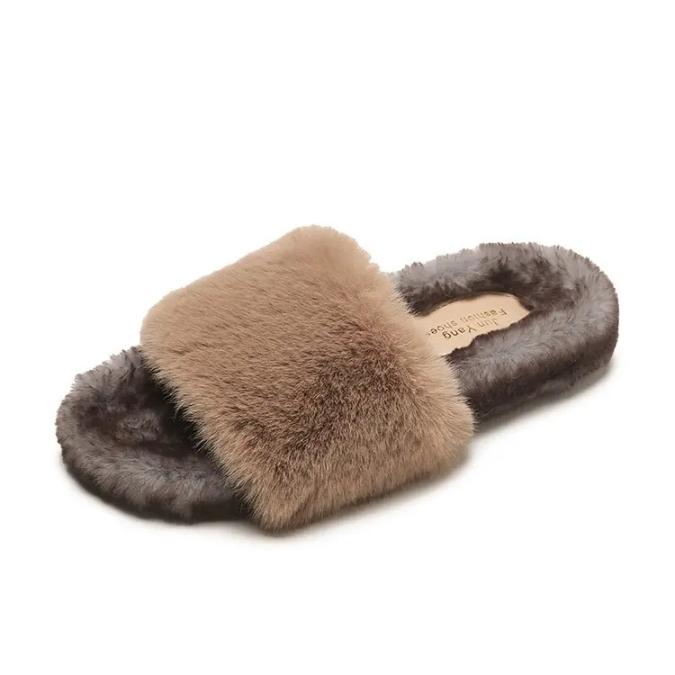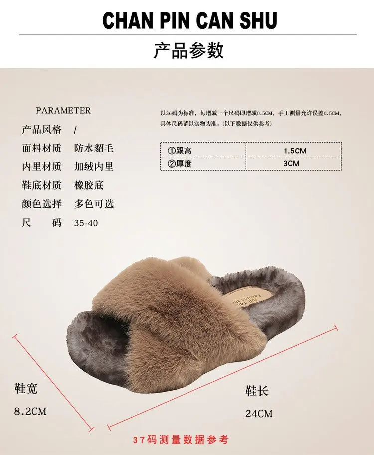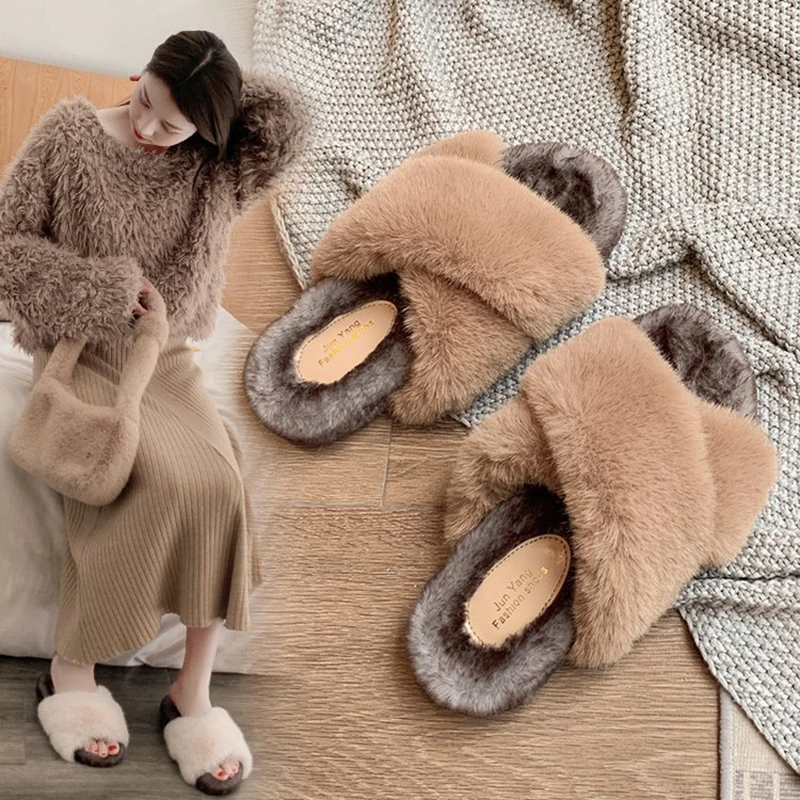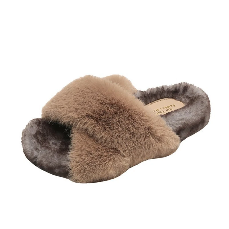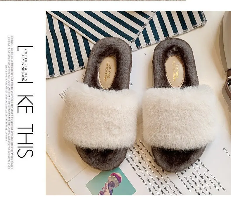 Style: Korean Brand Fur Slippers Women Winter Shoes
