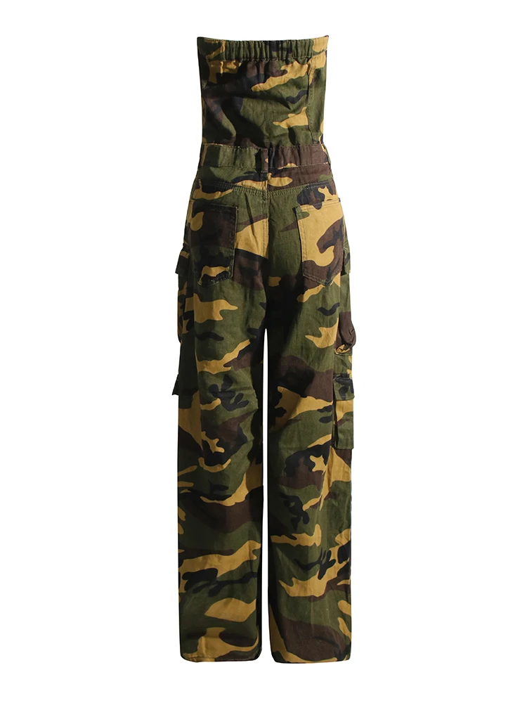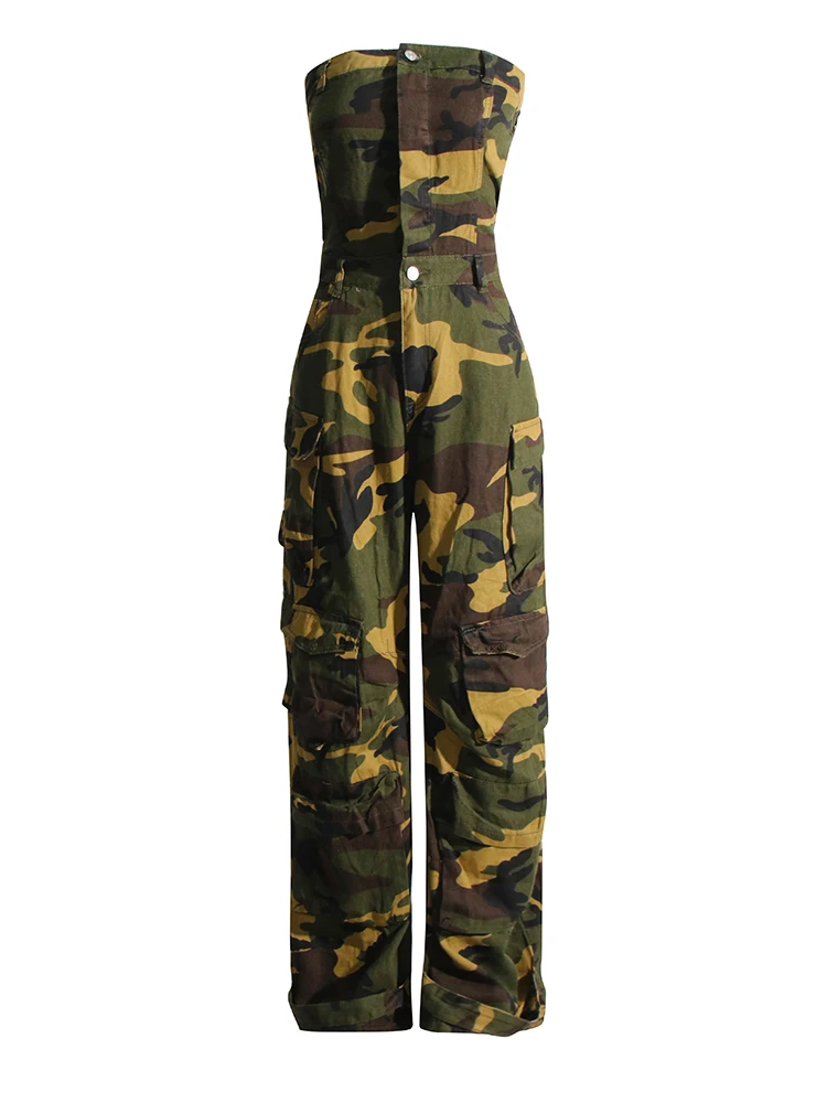 TWOTWINSTYLE Camouflage Cargo Jumpsuits For Women Starpless Sleeveless High Waist Spliced Pockets Streetwear Jumpsuit Female New