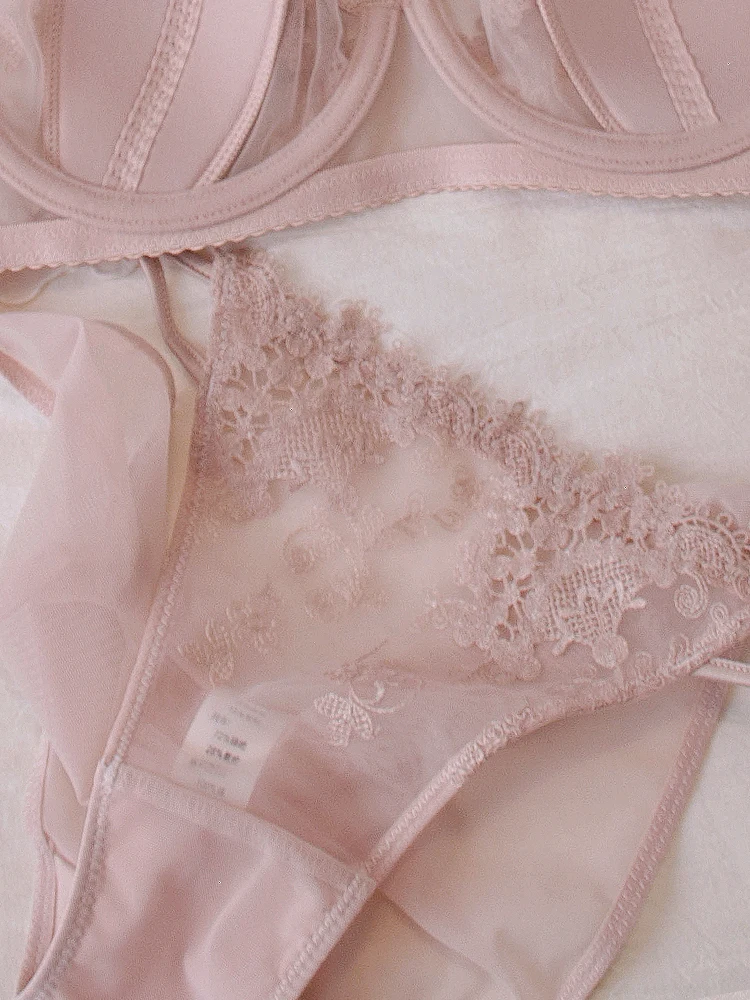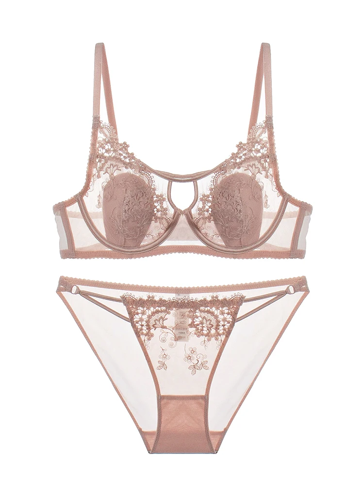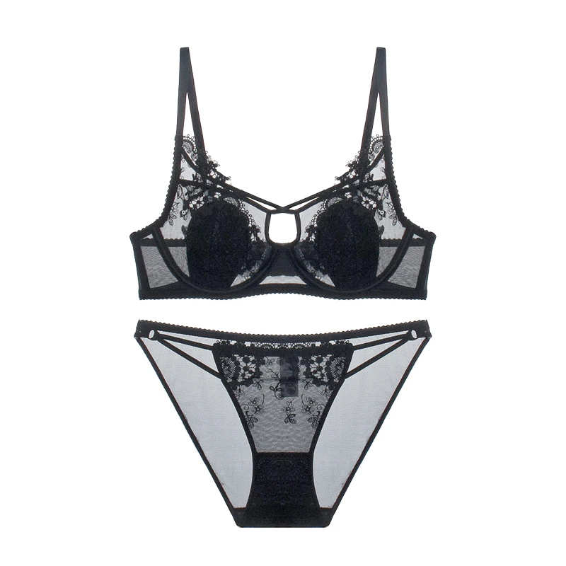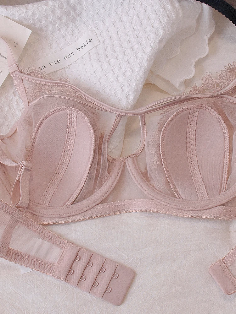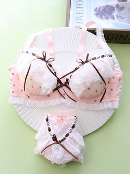 Ultra-thin sexy lingerie lace mesh with steel ring rabbit ears cup large breasts show small bra underwear set