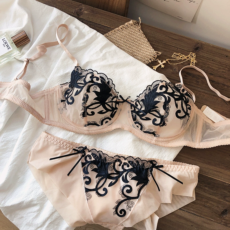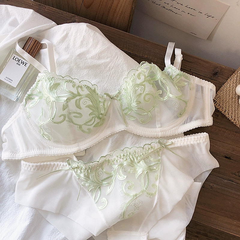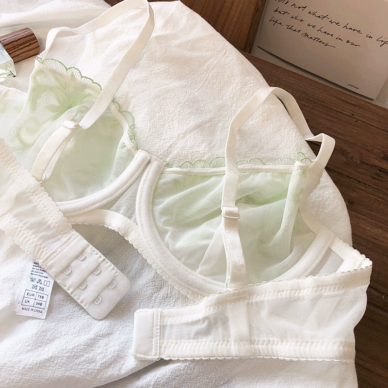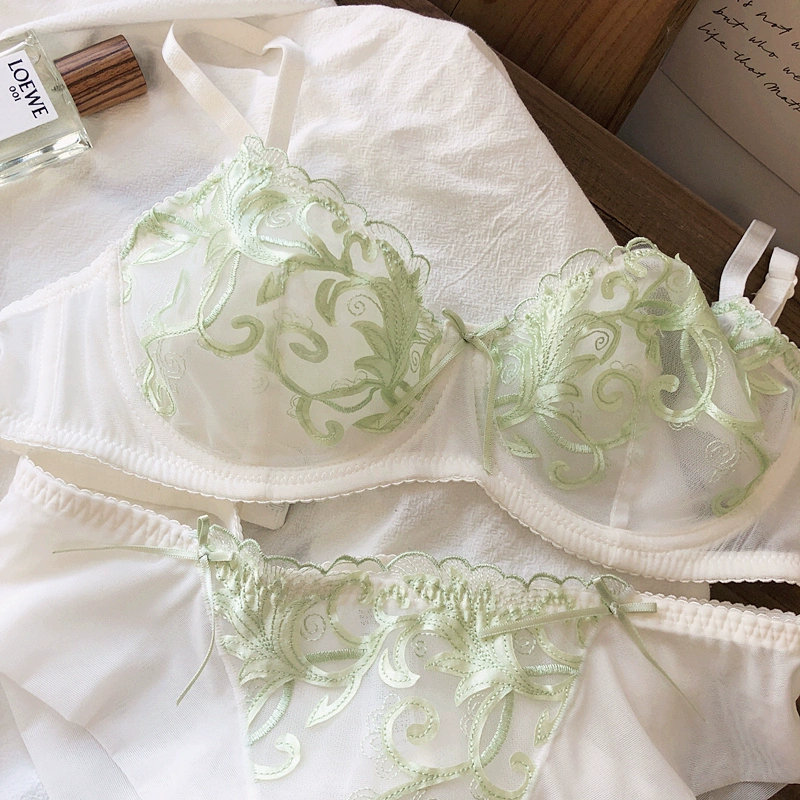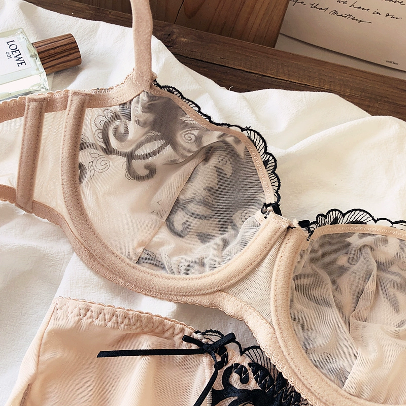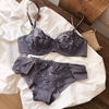 Ultra-thin sexy perspective lingerie with underpants set lace with steel ring gathered underwear set embroidery transparent bras