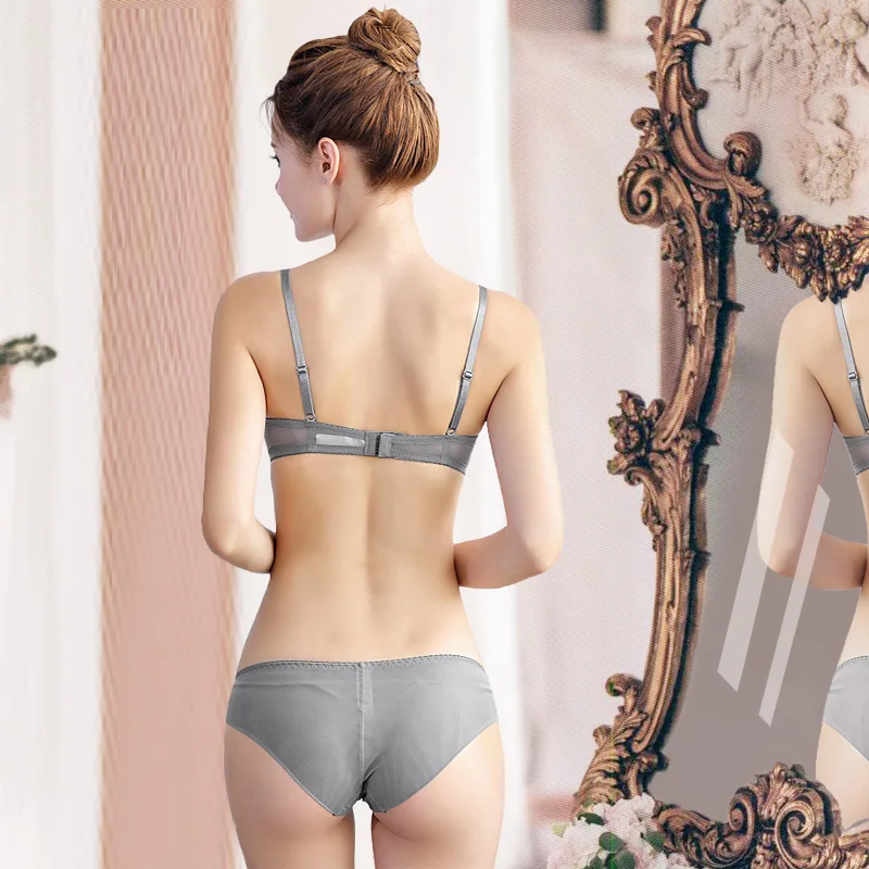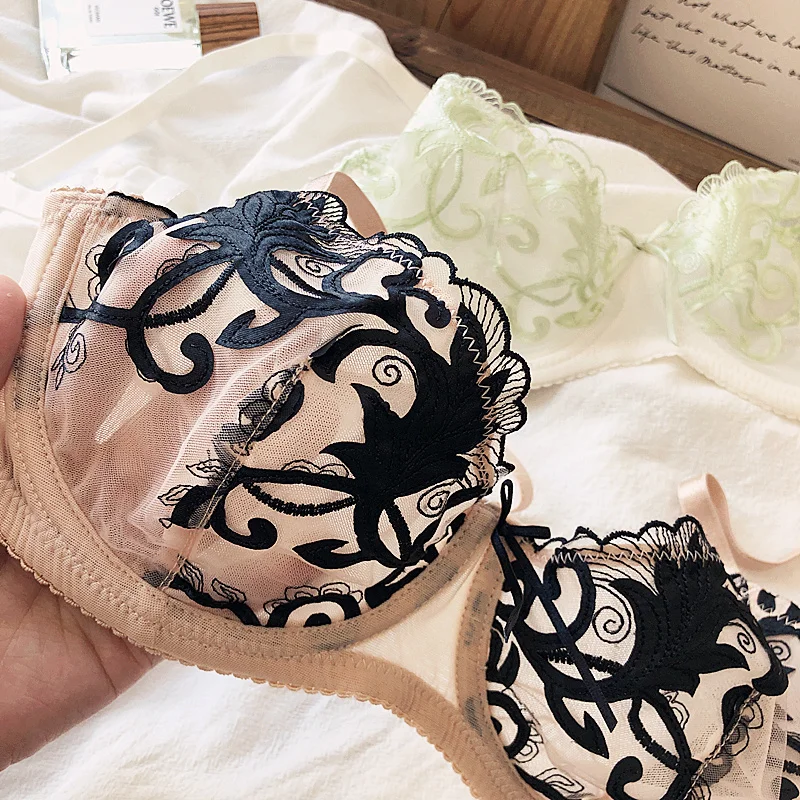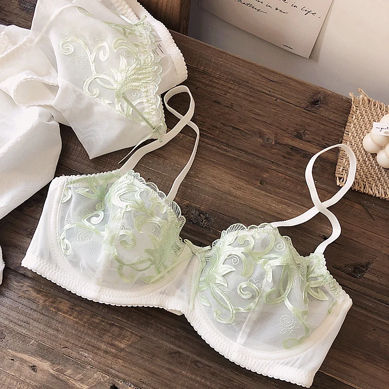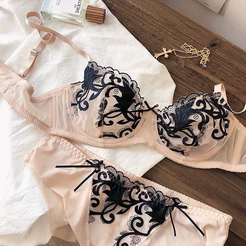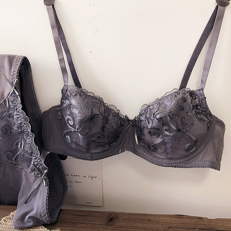 Ultra-thin sexy perspective lingerie with underpants set lace with steel ring gathered underwear set embroidery transparent bras