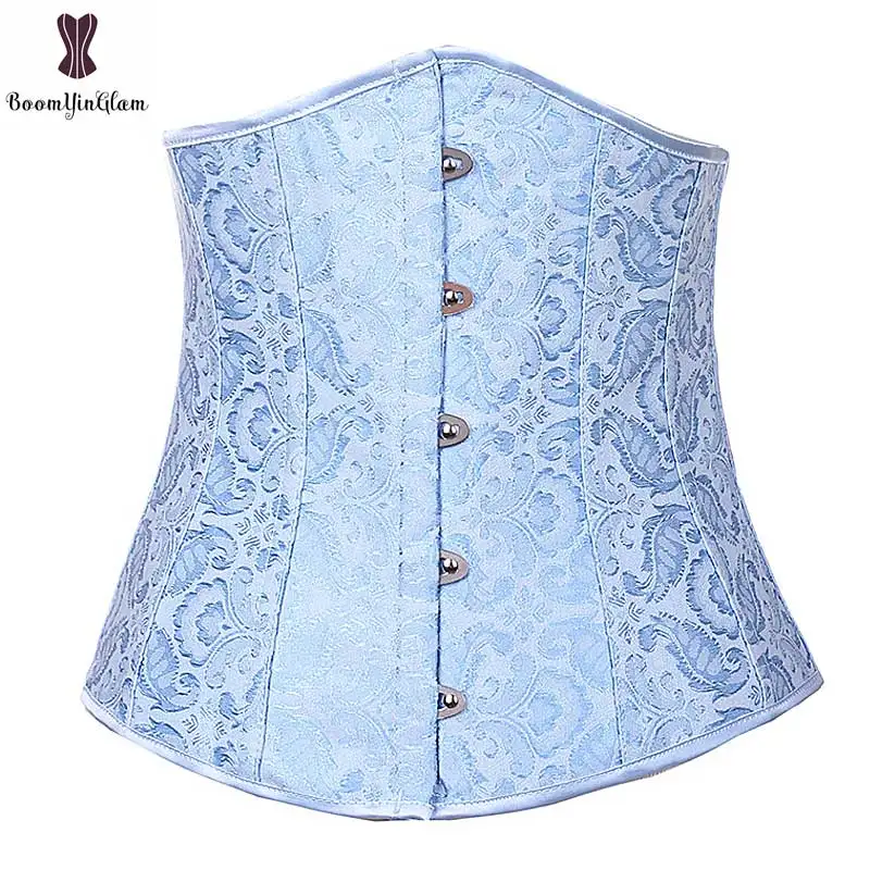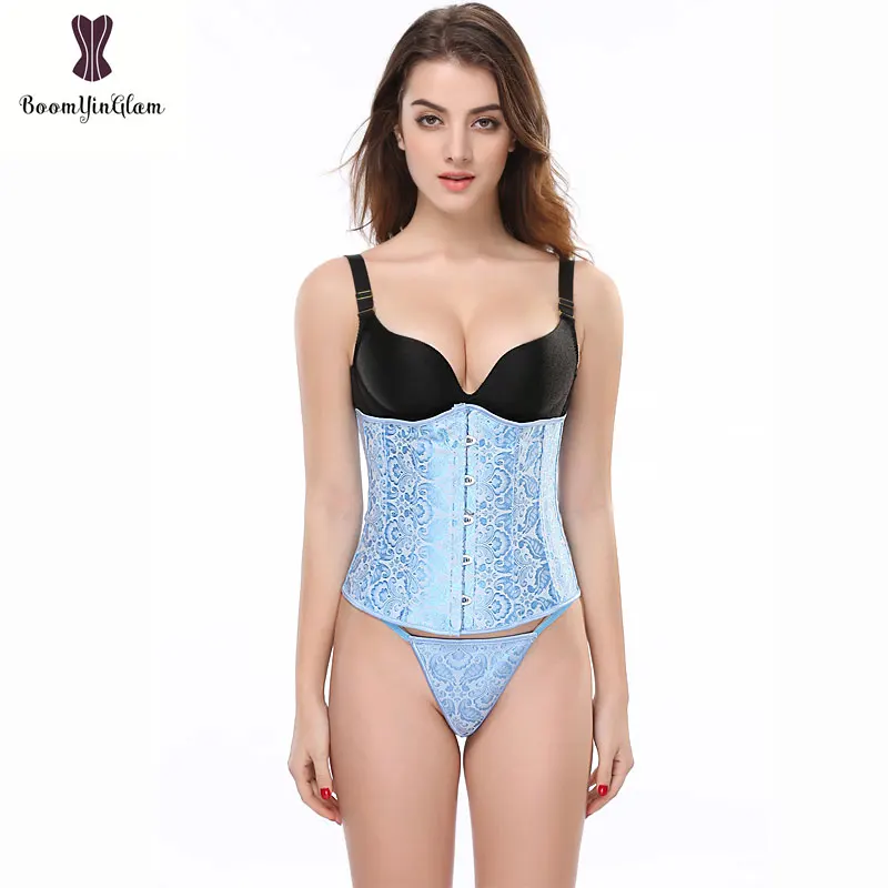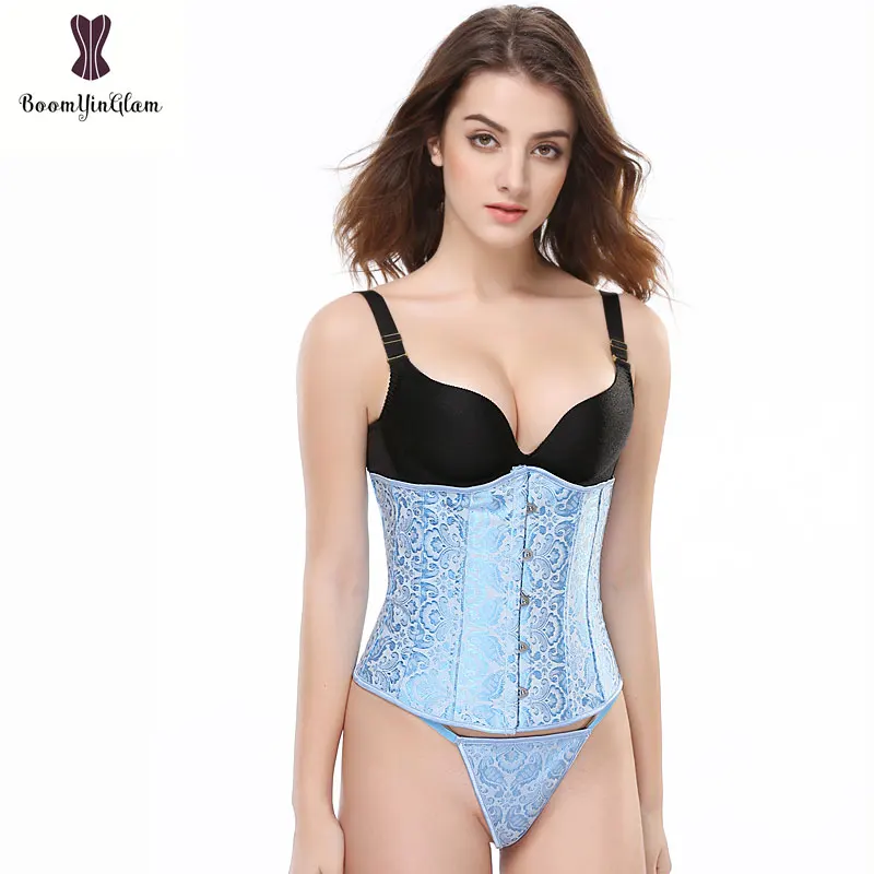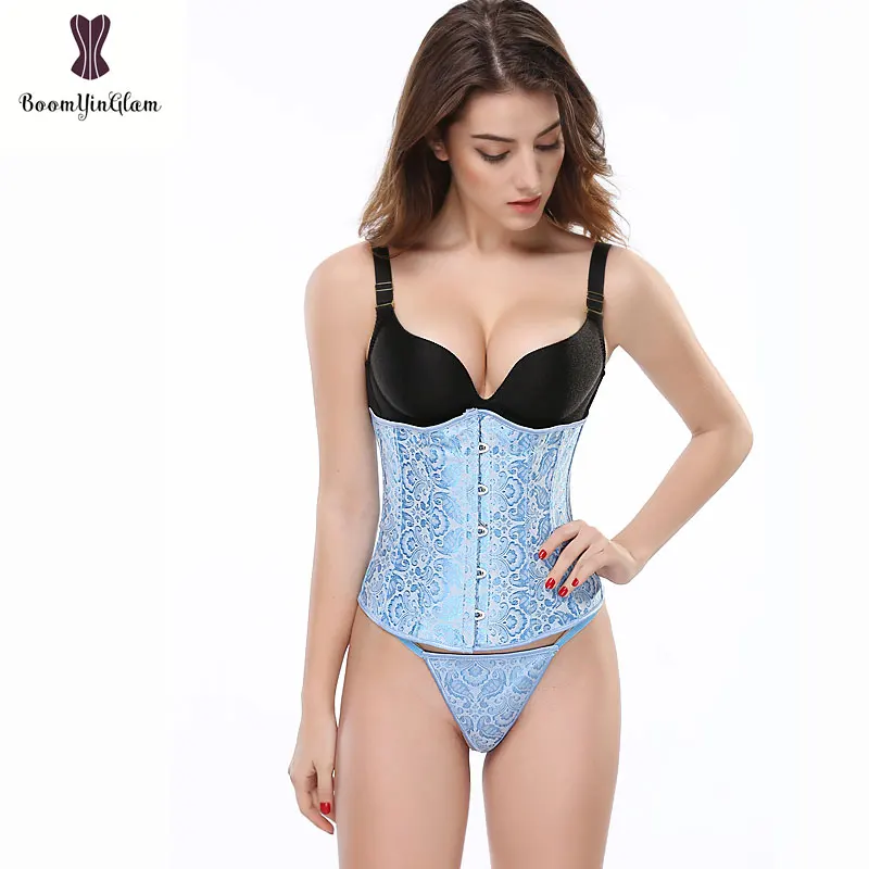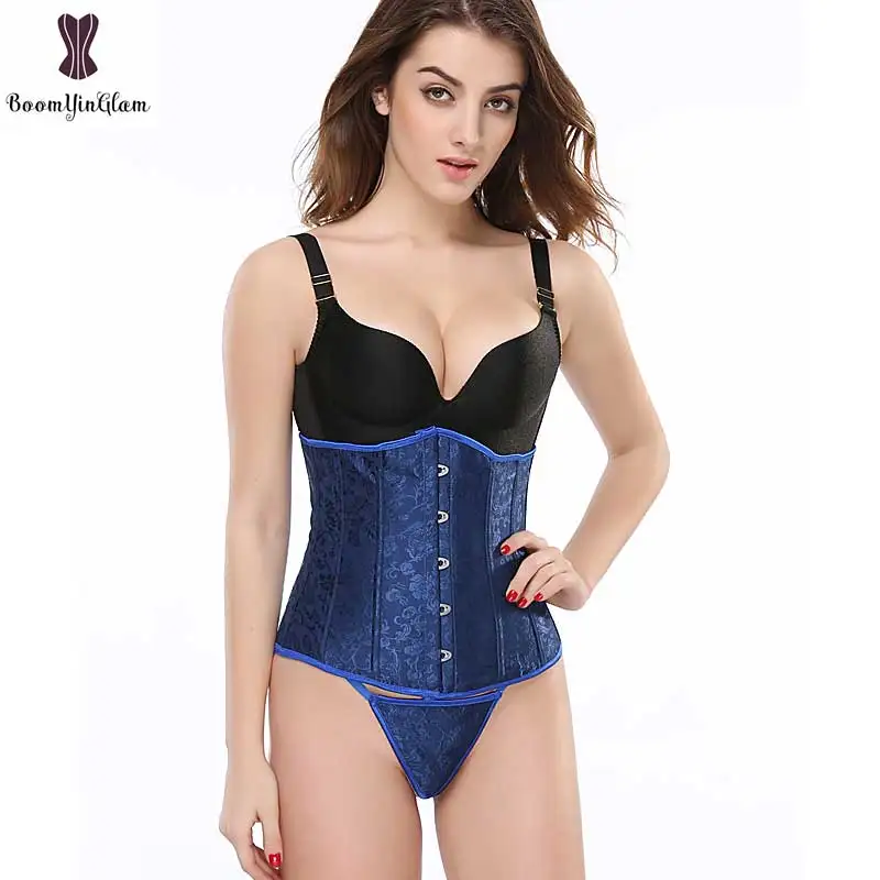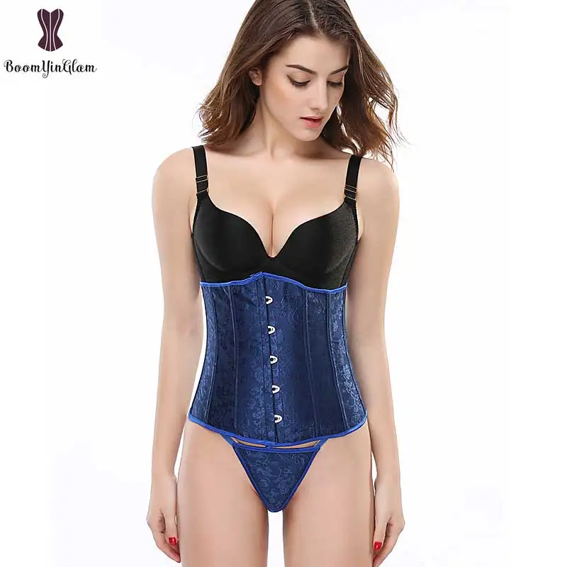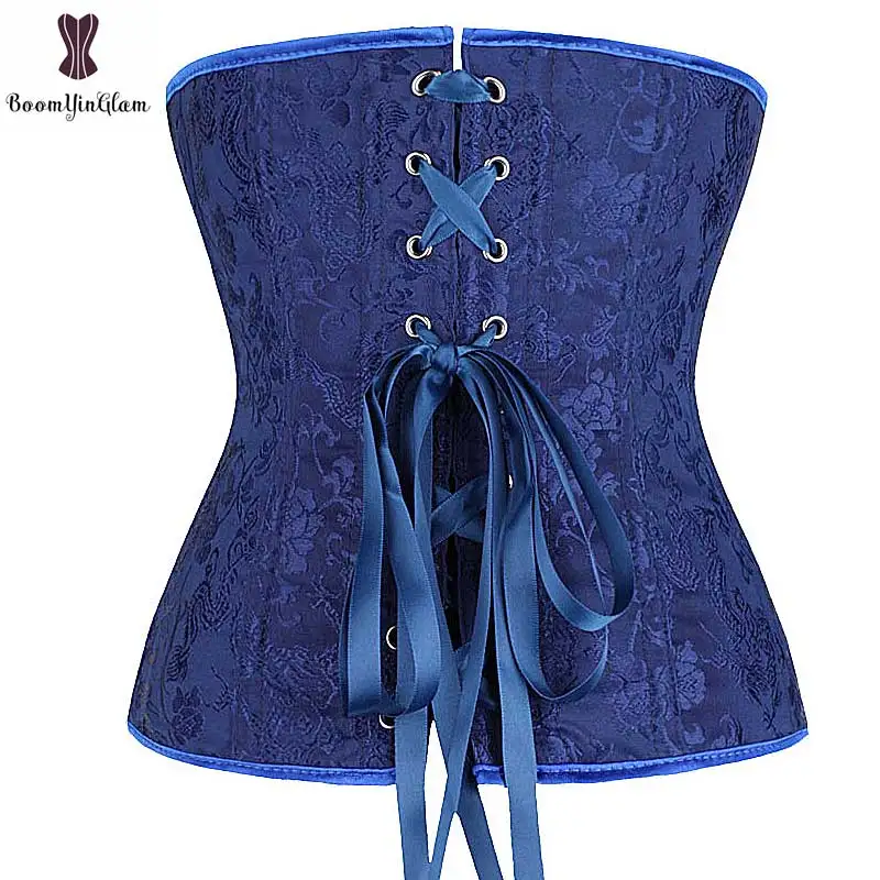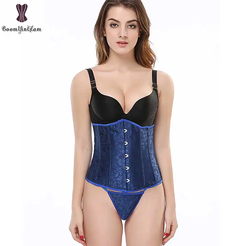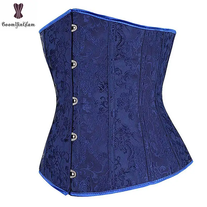 Underbust Jacquard Corset Top Dark Blue Floral Fish Boned Corselet Outwear Sexy Women Bustier For Everyday Daily Waist Slimming