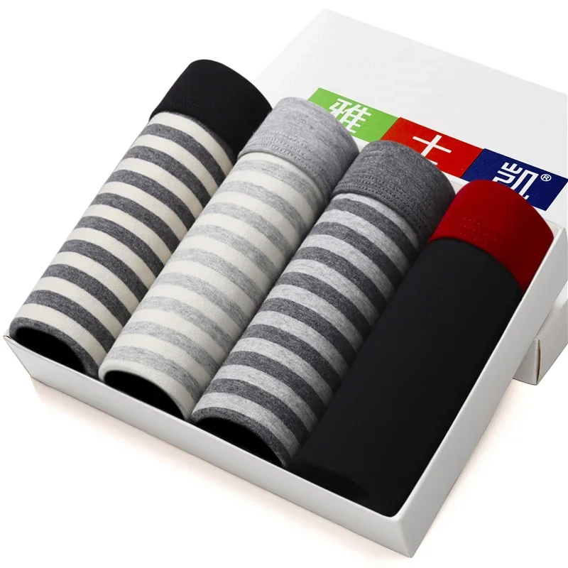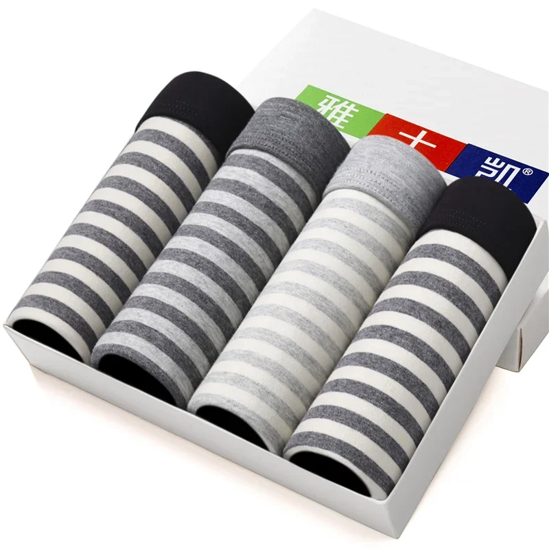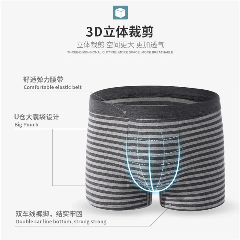 Underwear Men Boxer Cotton Stripe Panties Men Sexy Plus Size Boxer Boxershorts U Pouch Youth Male Underpants Casual Soft 4XL 5XL
