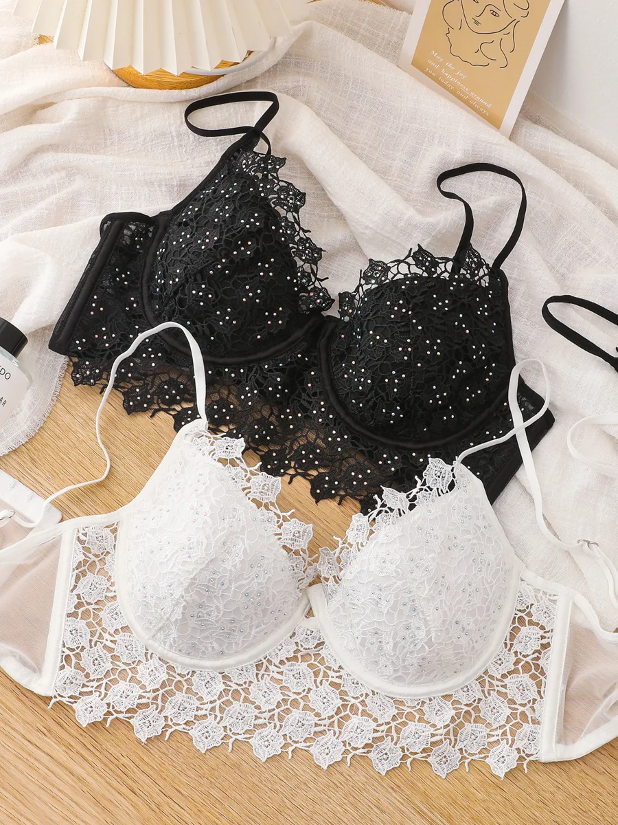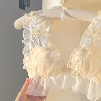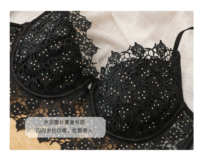 Underwear women’s big breasts show small thin shoulder straps bra set T-shaped briefs ladies lingerie