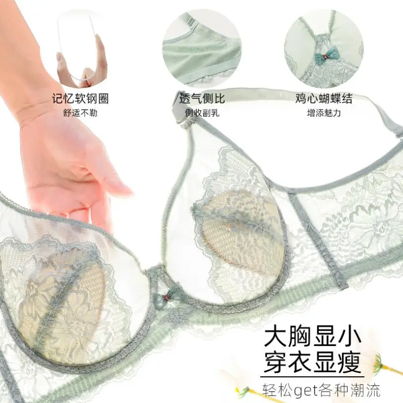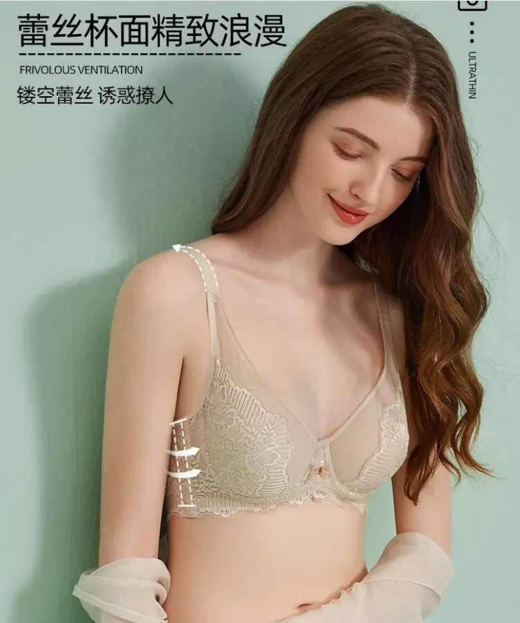 Underwear Women’s Thin Large Chest Bra Ultra Thin Bra Steel Ring Large Size Bustier Full Cup Collection Breast Milk p644