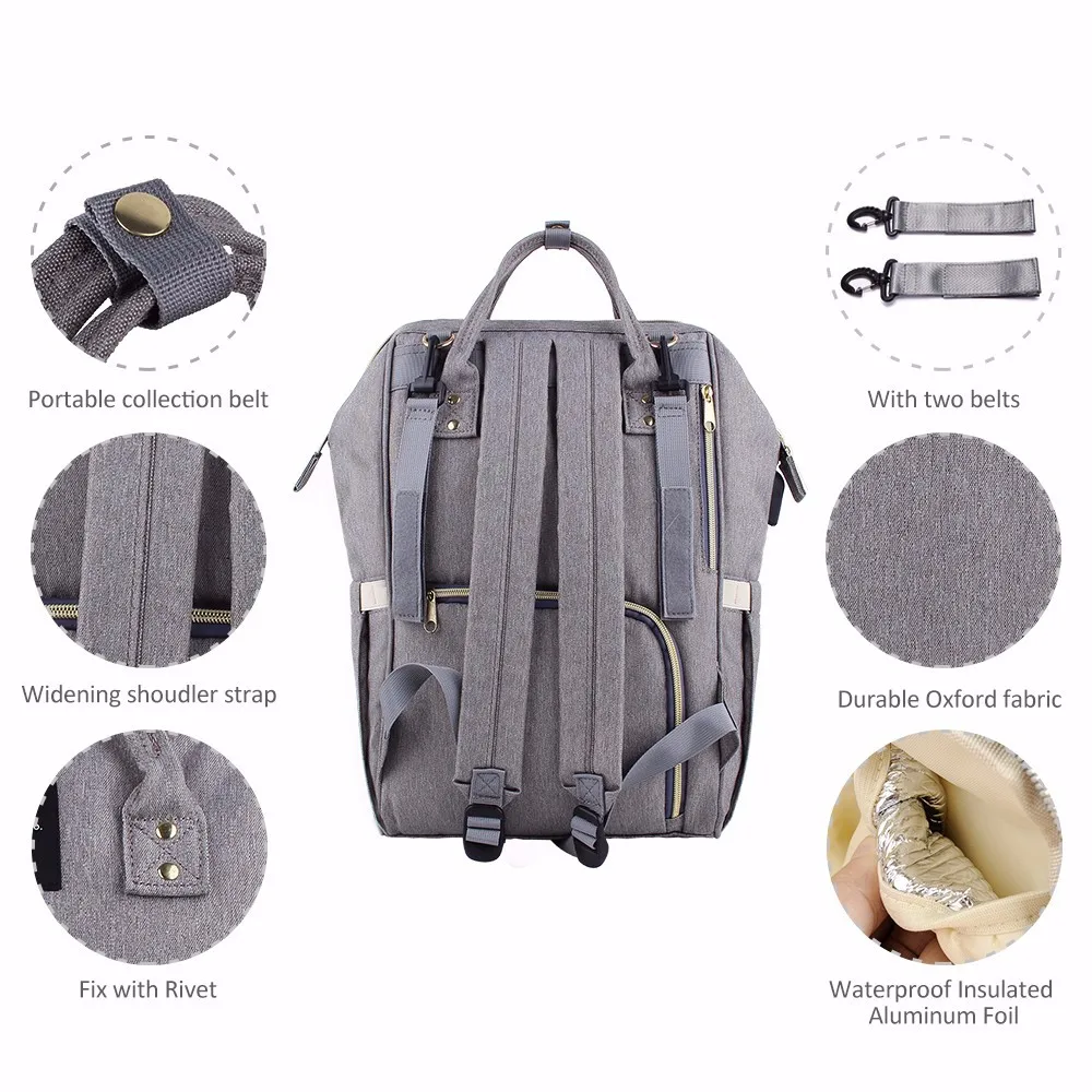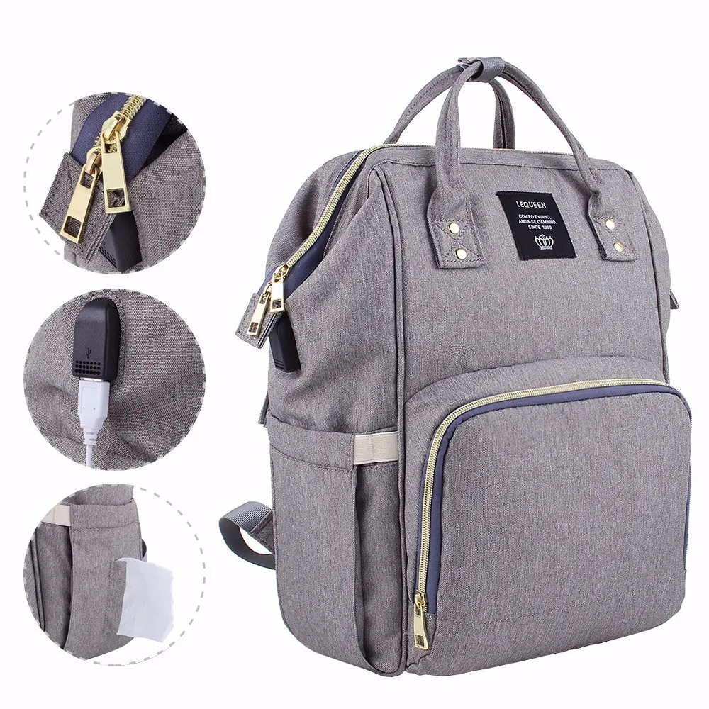 USB Diaper Bags Large Nappy Bag Upgrade Fashion Travel Backpack Waterproof Maternity Mummy Bags with Hook and bottle bag