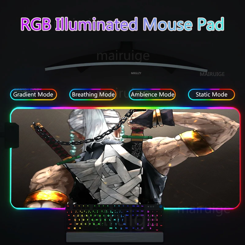 Uzui Tengen RGB Led Mouse Pad Daki Gaming Accessories Gamer Mouse Mat Keyboard Desk Mats Demon Slayer XXL Carpet Large MousePad