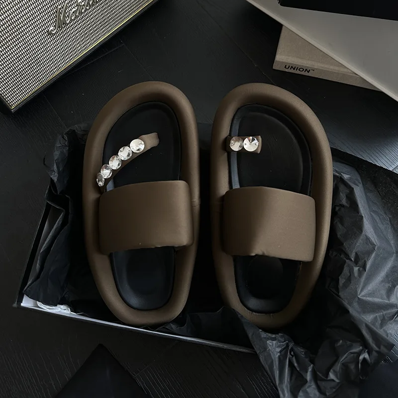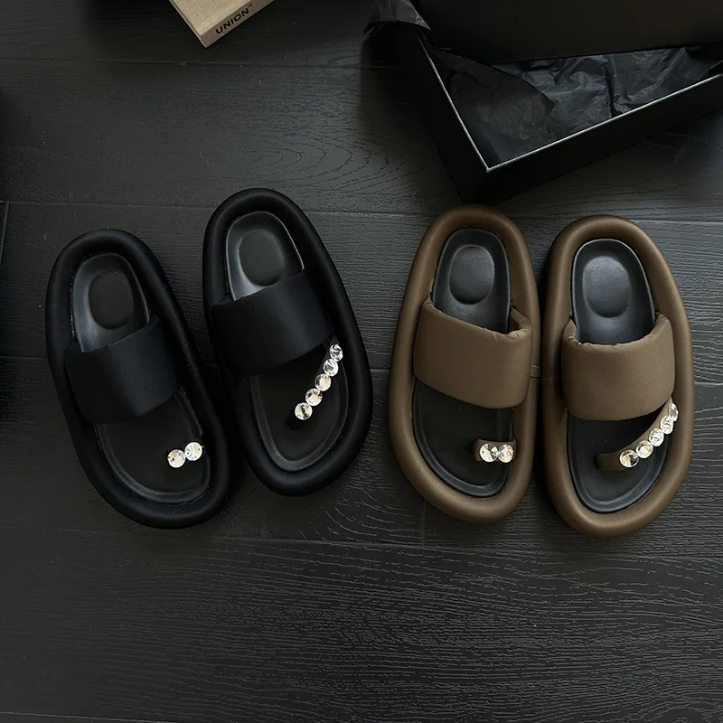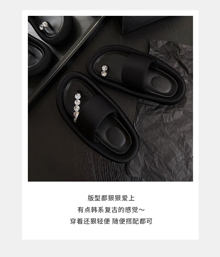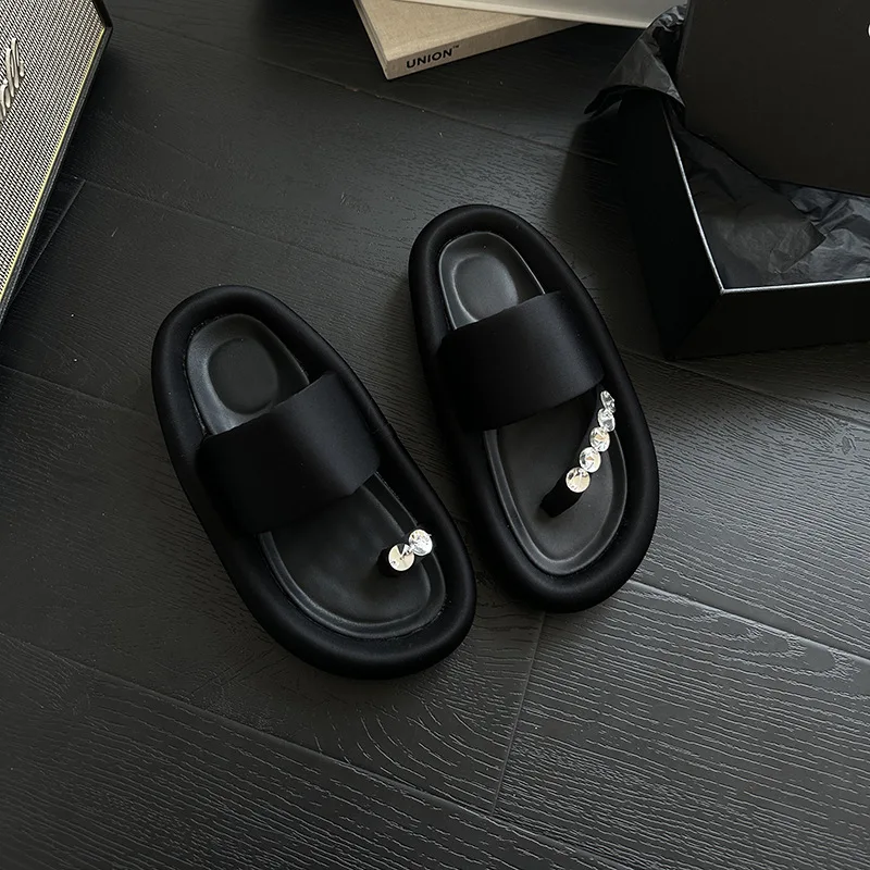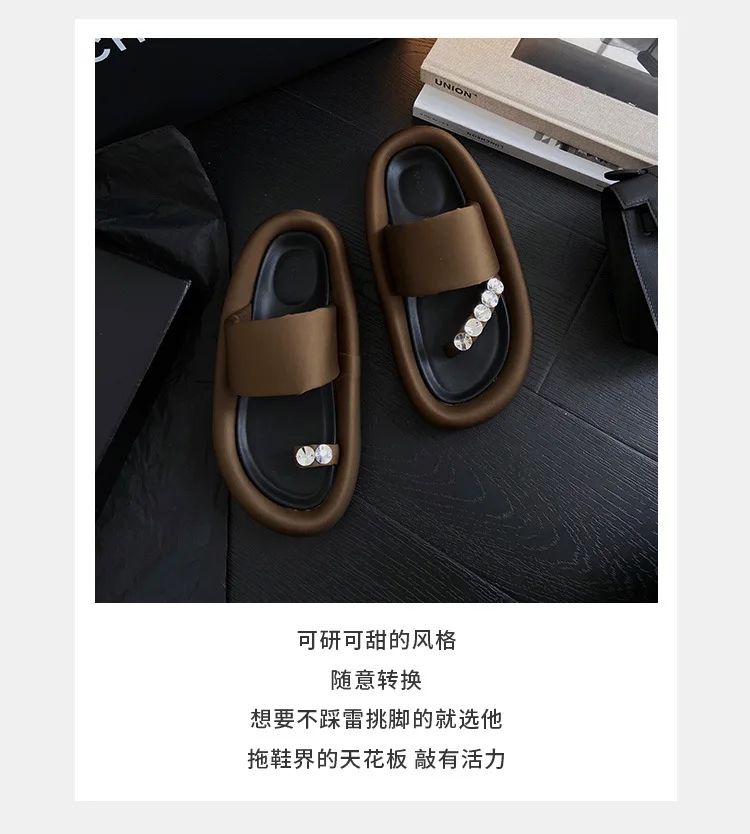 VERO EVA Korean Versatile Rhinestone Clamping Toe Fashion Women’s Slide 2023 Spring/Summer New Irregular Mandarin Duck Slippers