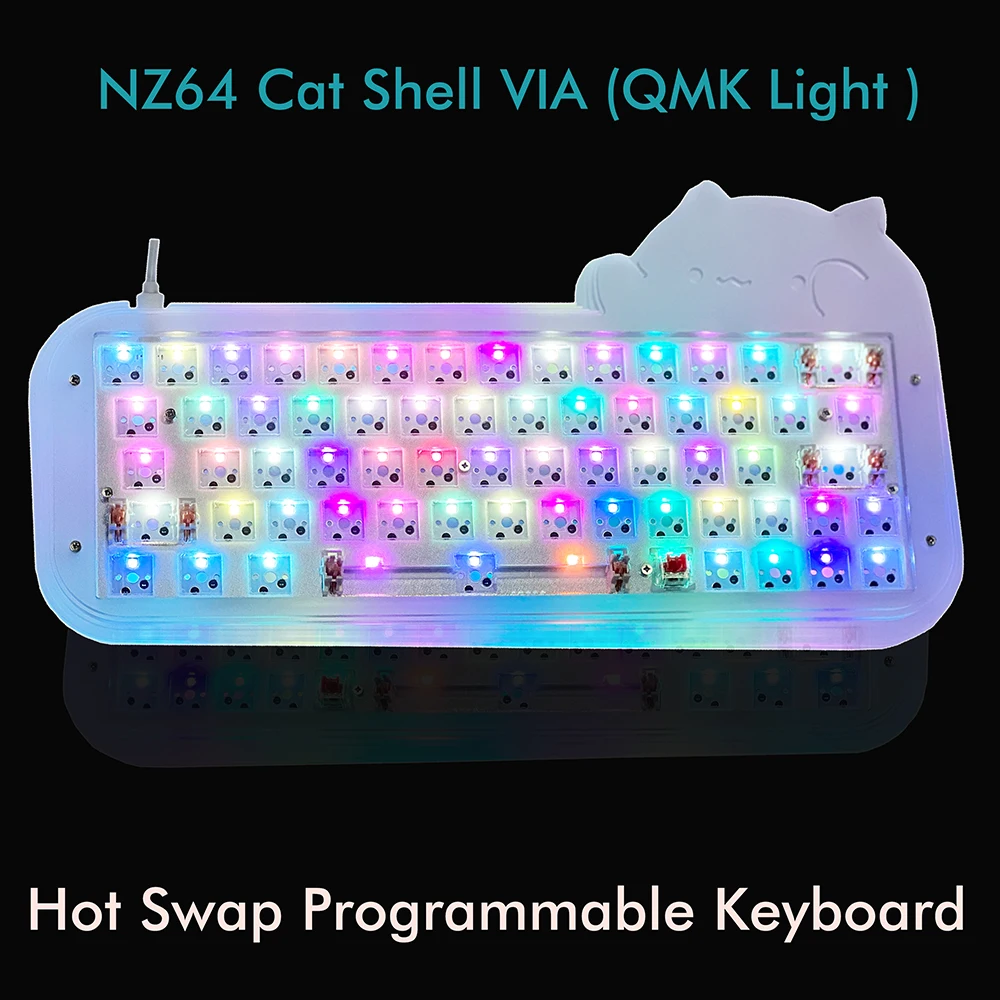 VIA Keyboard RGB Macro Gaming Mechanical Programming Keyboard Hot swap Cute Cat Shell NZ64 60% VIA Keyboard Gateron Cherry