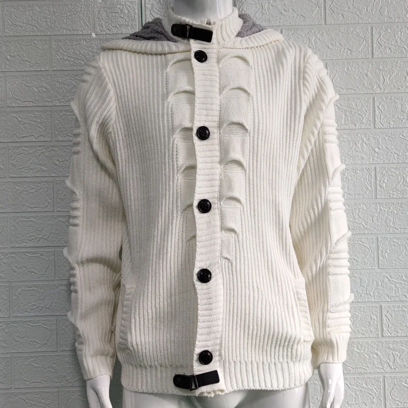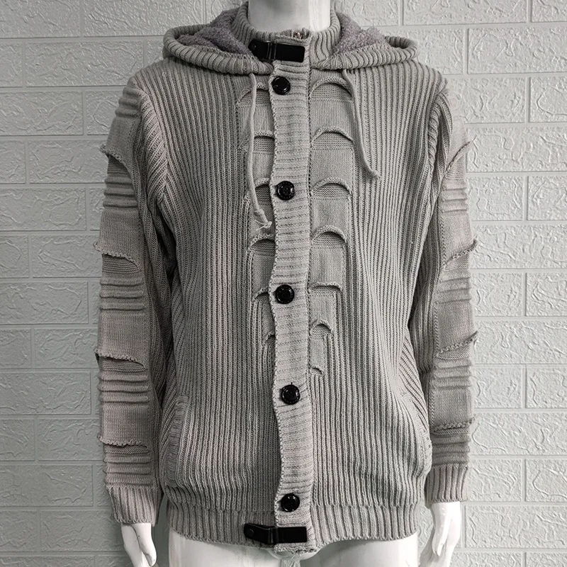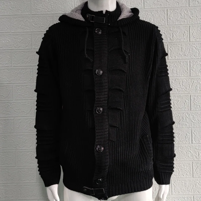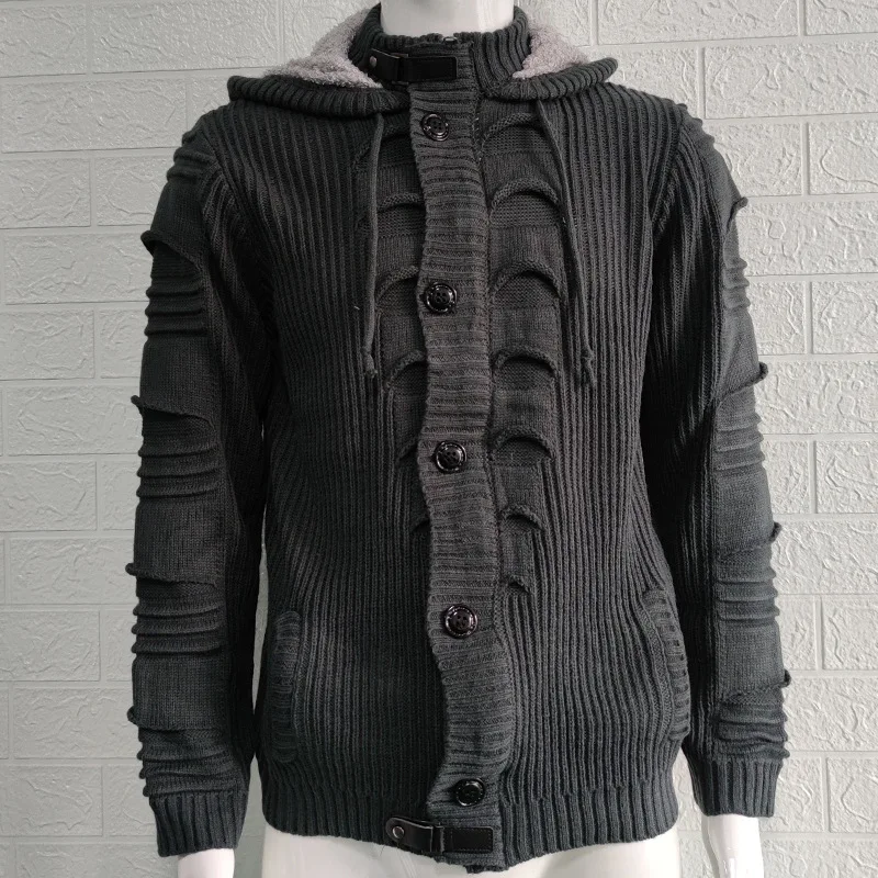 Vintage Cardigan Men Casual Single Breasted Solid Color Hooded Sweatercoat Mens Knitted Hooded Cardigans Winter Fashion Sweaters